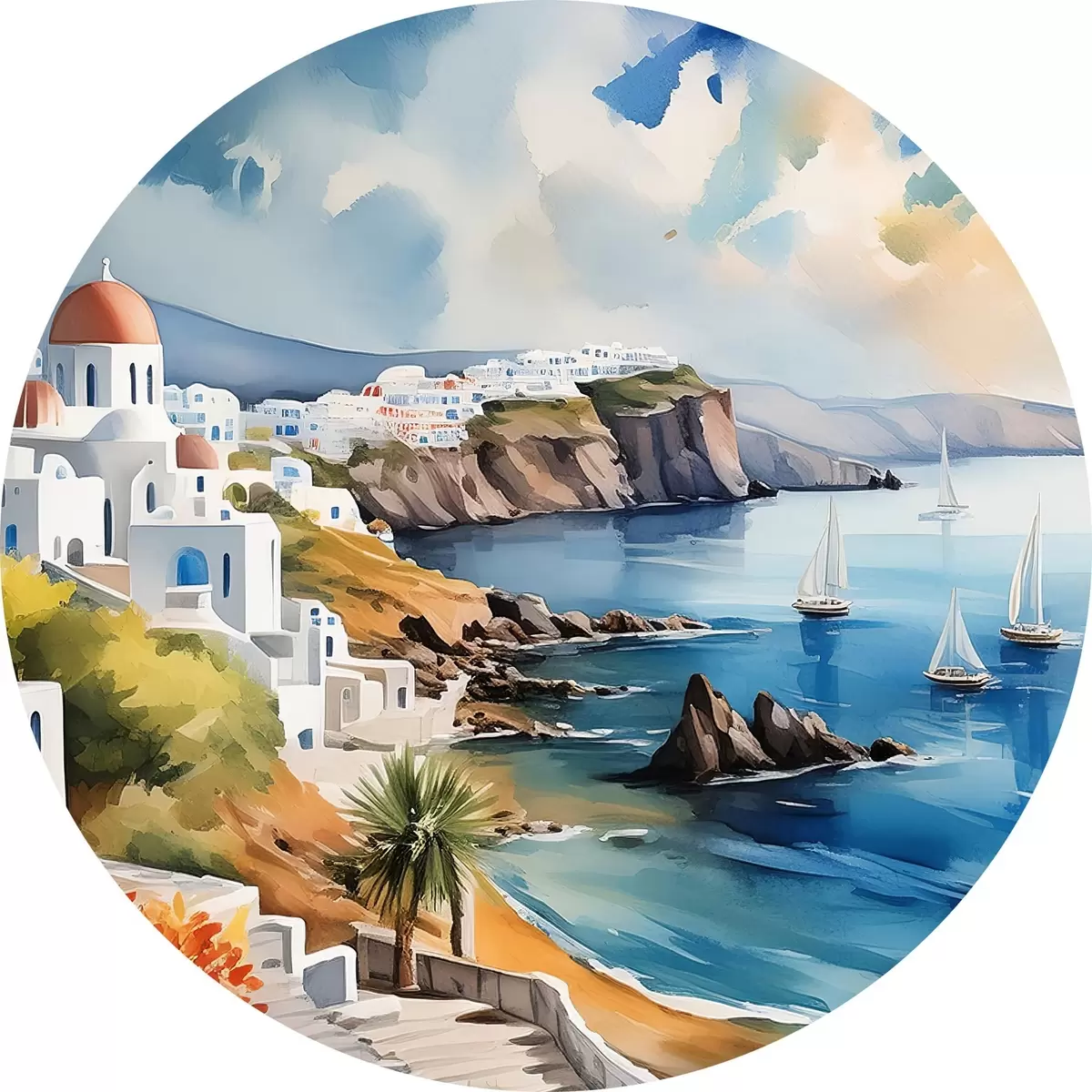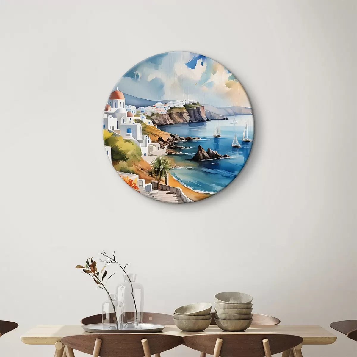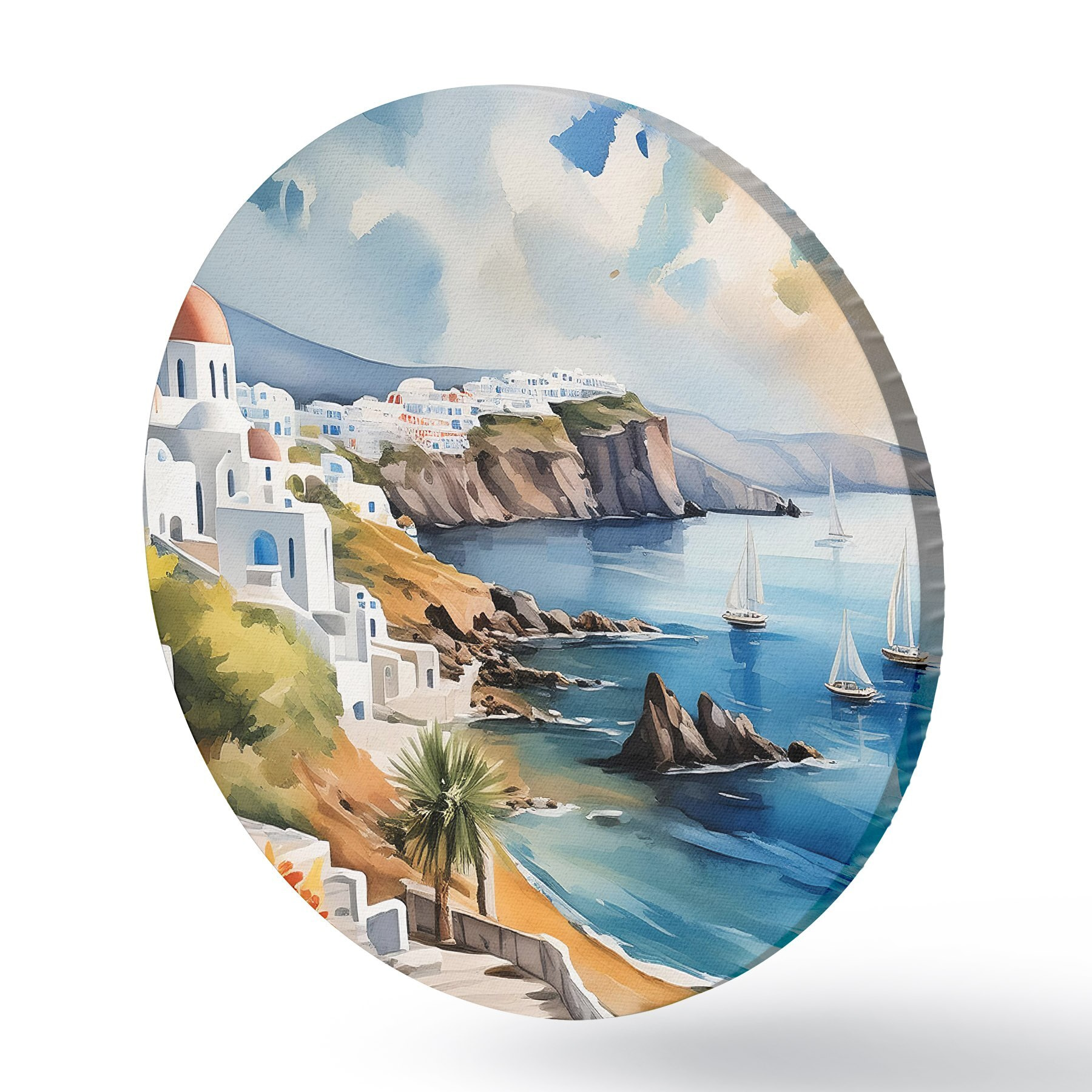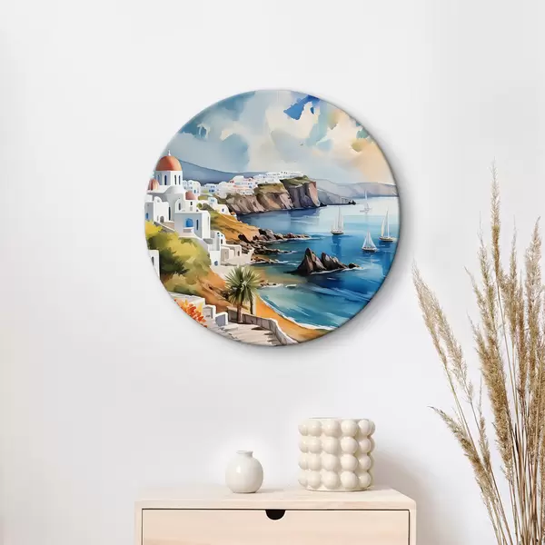 Runde Gemälde Blick auf die Stadt Santorini r39304