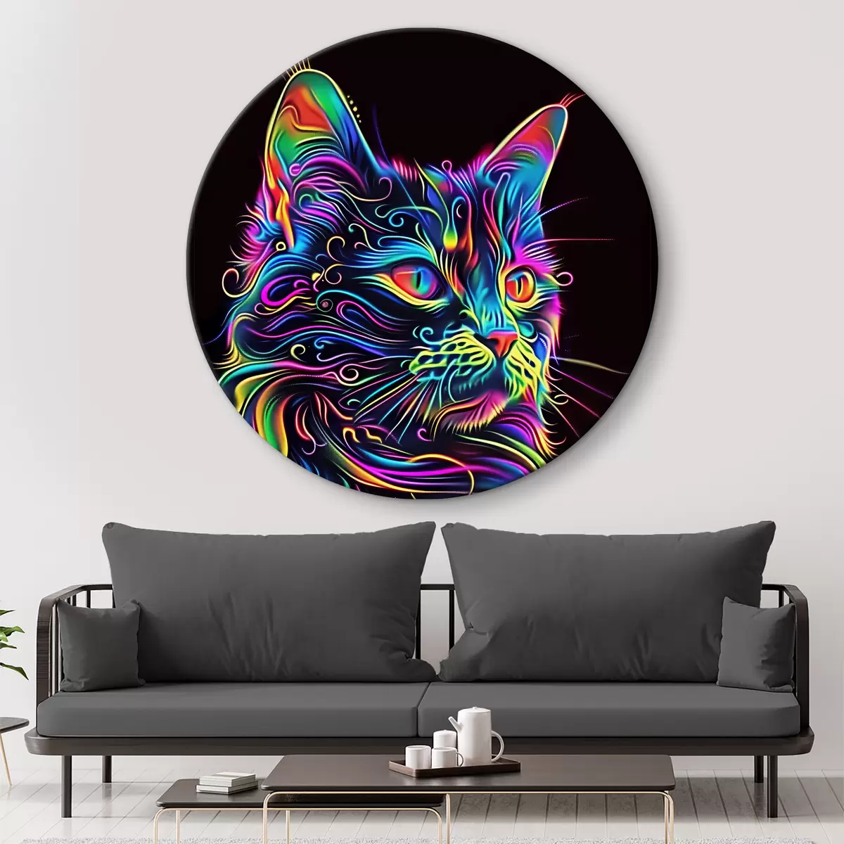 Runde Gemälde Bunte Katze r39311