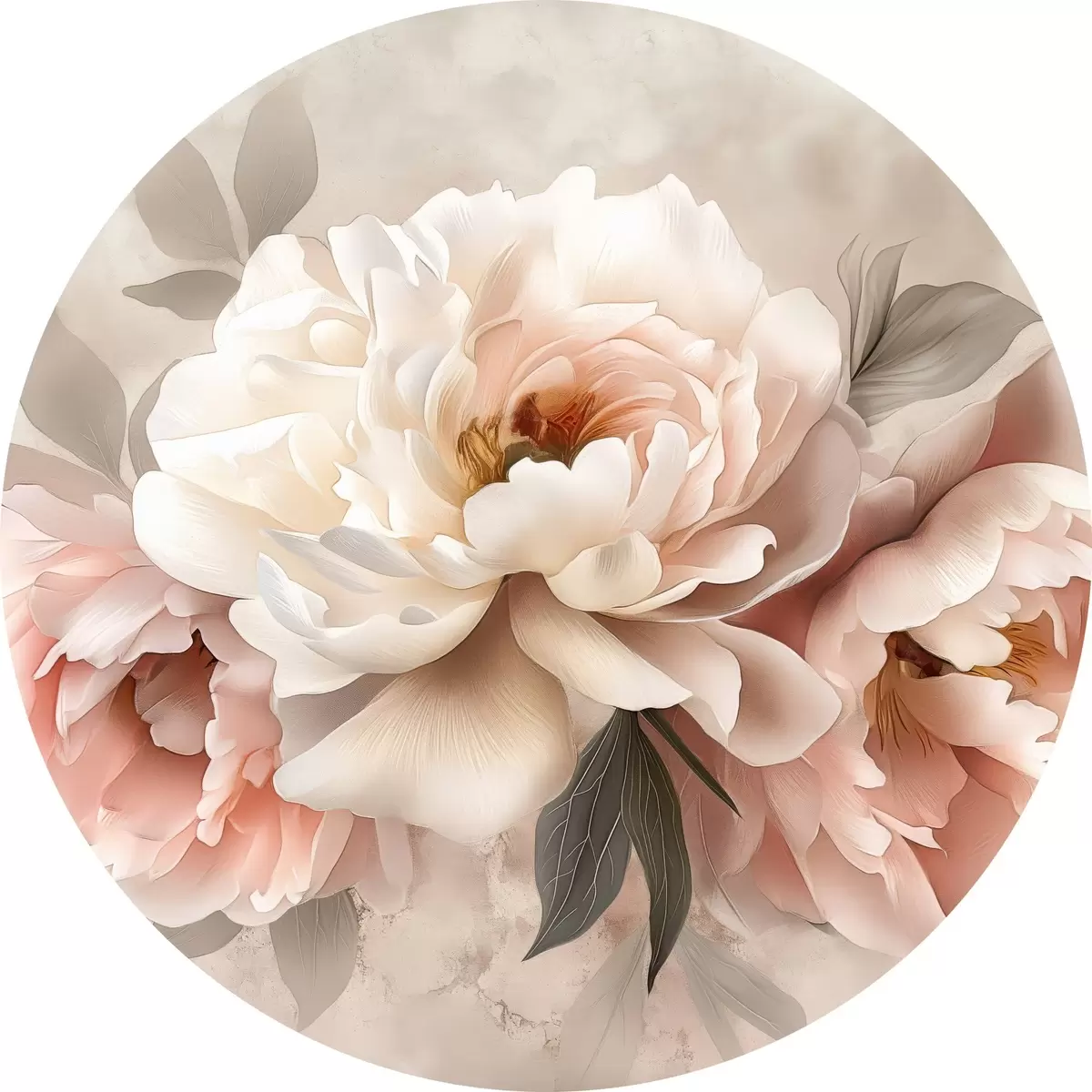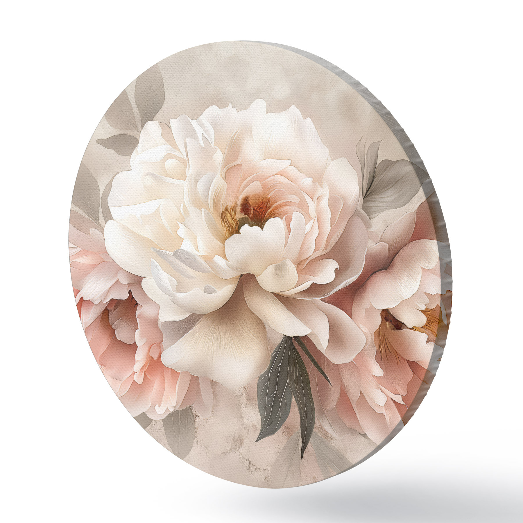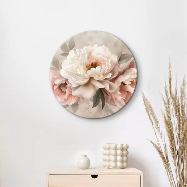 Runde Gemälde abstrakter Strauß Pfingstrosen in Rosatönen r39324