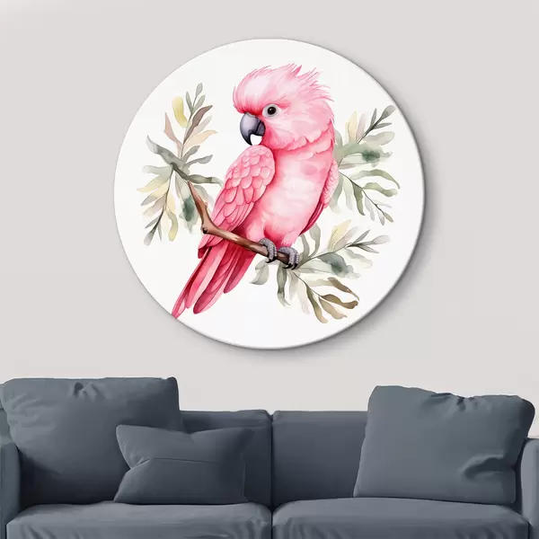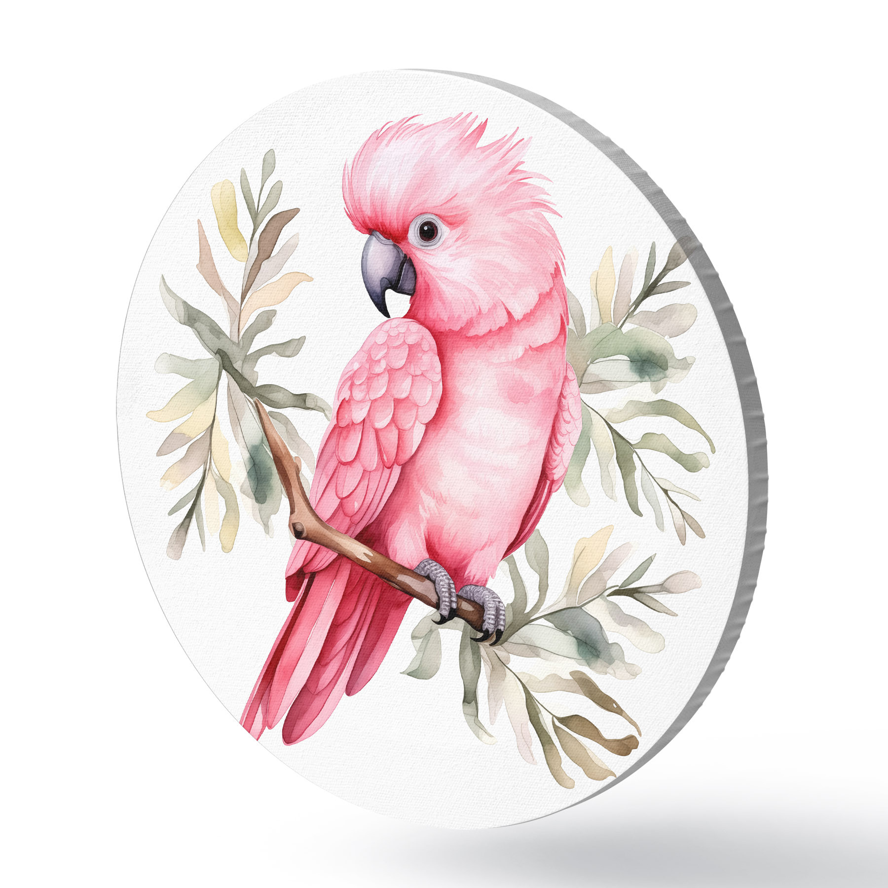 Runde Gemälde Rosa Kakadu Papagei sitzt auf einem Zweig Aquarell r39334