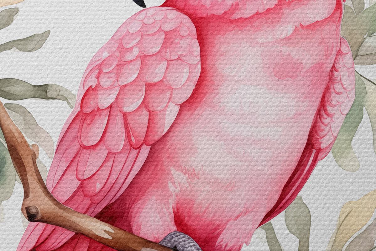 Bild Rosa Kakadu Papagei sitzt auf einem Zweig Aquarell Nr r39334