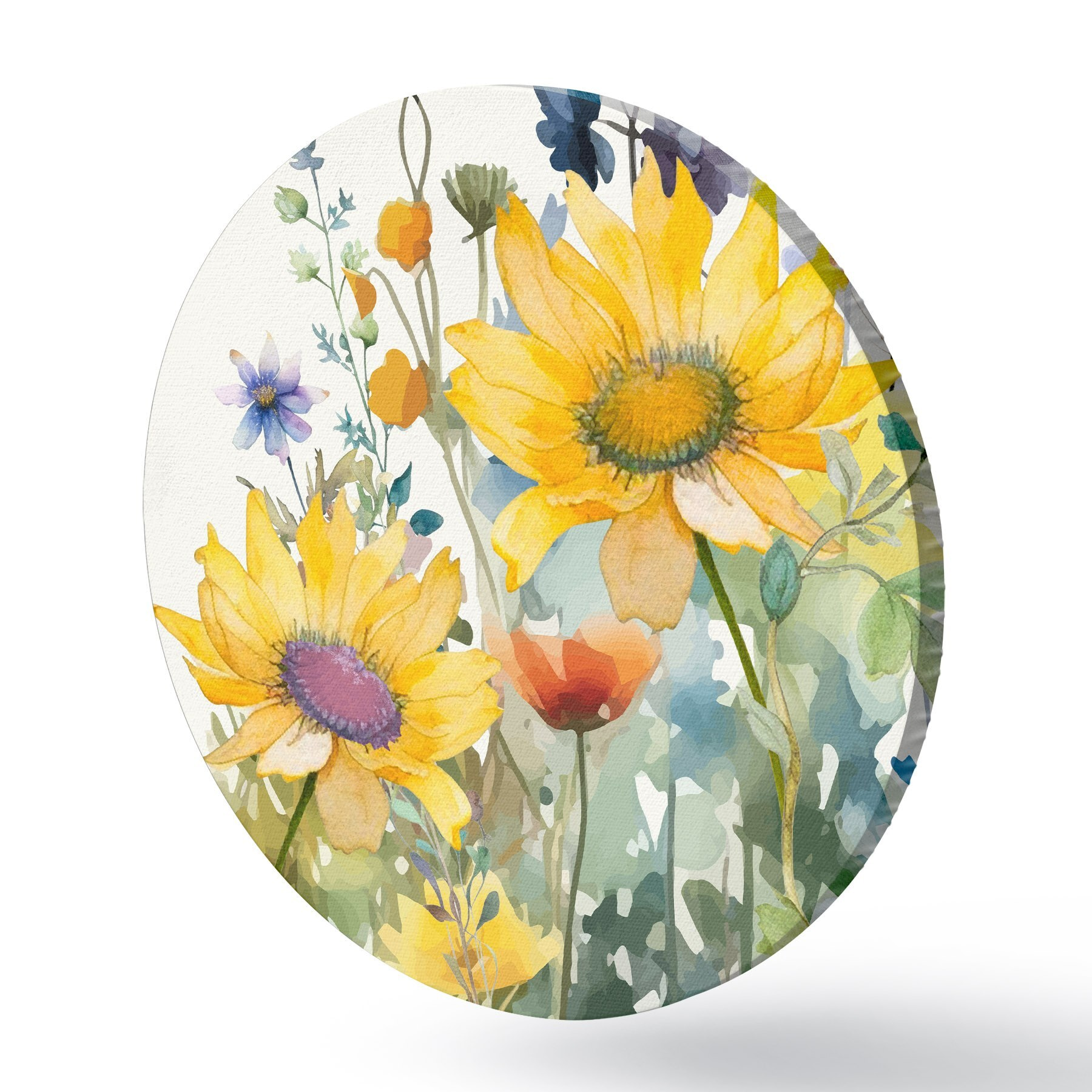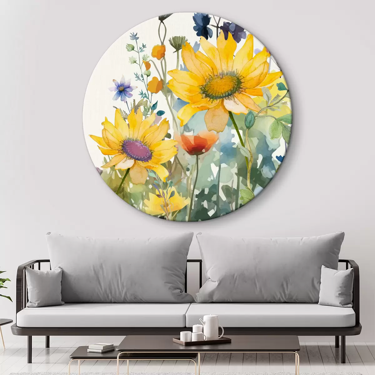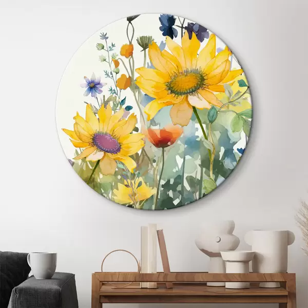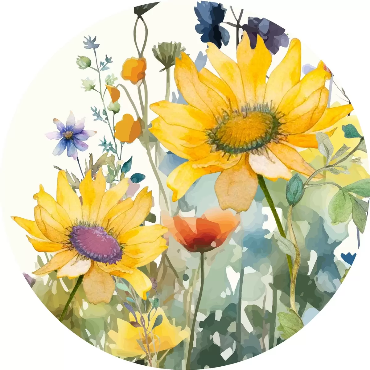 Runde Gemälde Bunte Aquarell-Wildblumen r39338