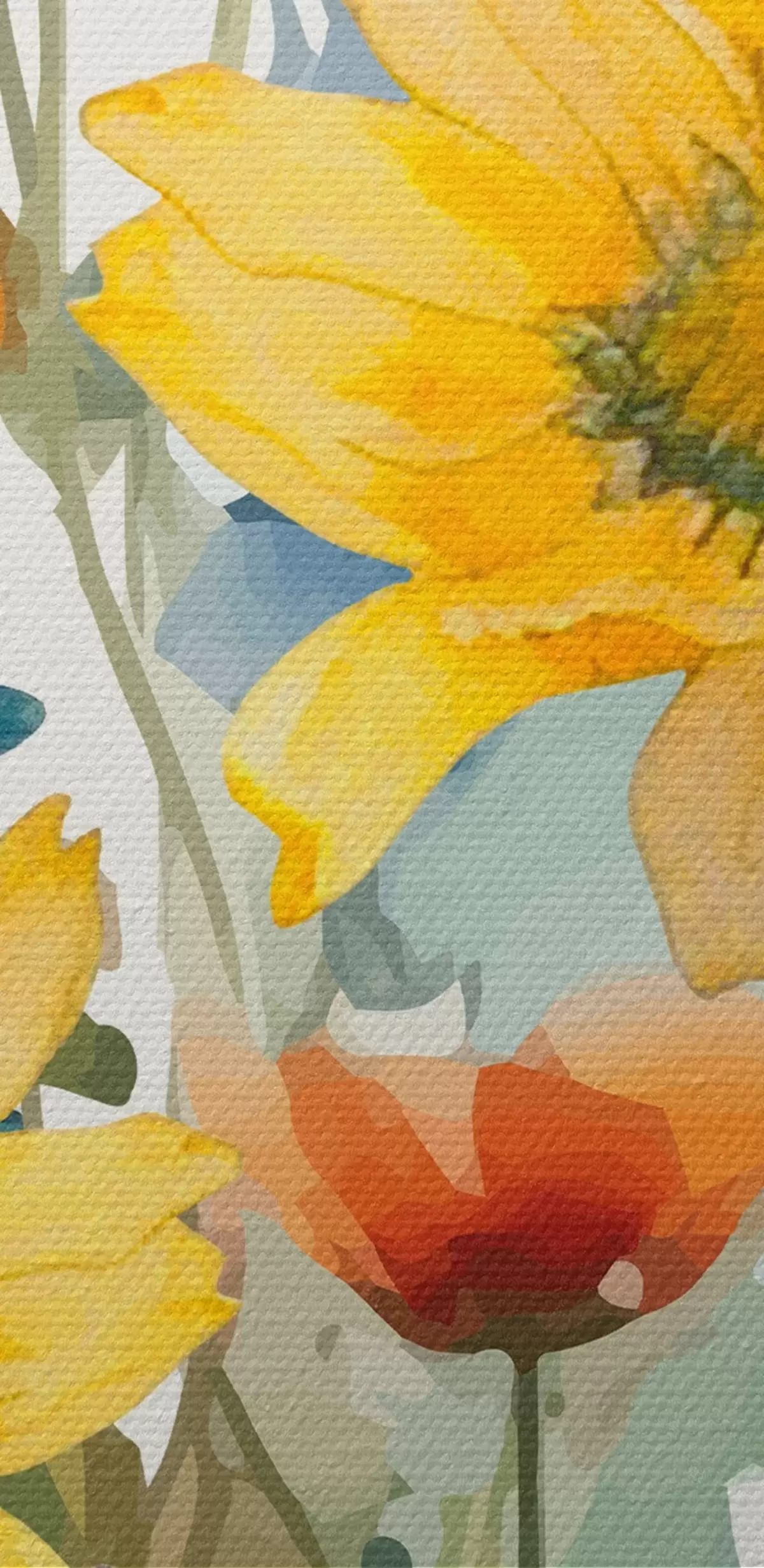 Drei Materialtypen stehen zur Verfügung: Economic Canvas - ein dichtes und haltbares Material für den Digitaldruck, identisch mit Malerleinwand, wasserfeste Oberfläche, realistische Wiedergabe von Details, mittelkörniges Material. Premium Canvas - die Textur ähnelt der einer Malerleinwand (verwobene kleine Fäden). Weiche, detaillierte Wiedergabe des Bildes auf einer matten Oberfläche. Eco-Premium - hochwertiges Gewebe aus 100% Baumwolle. Dank der natürlichen Baumwollfasern ist das Material langlebig und verschleißfest. Hervorragende Farbwiedergabe und Detailtreue.