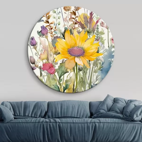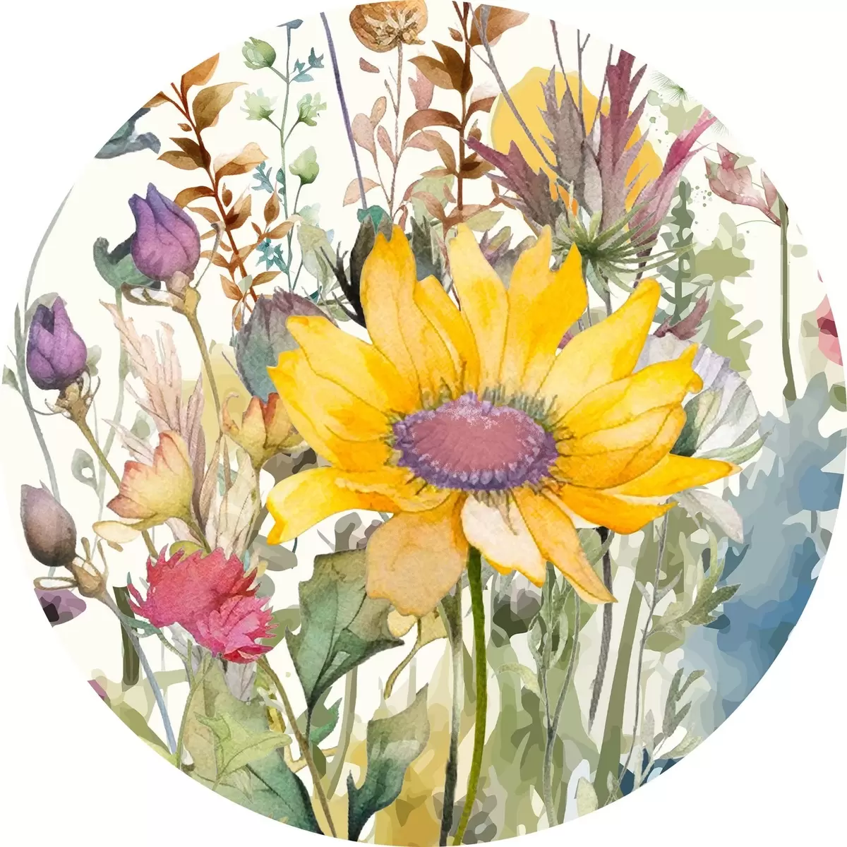 Runde Gemälde Aquarellierte Wildblumen r39339