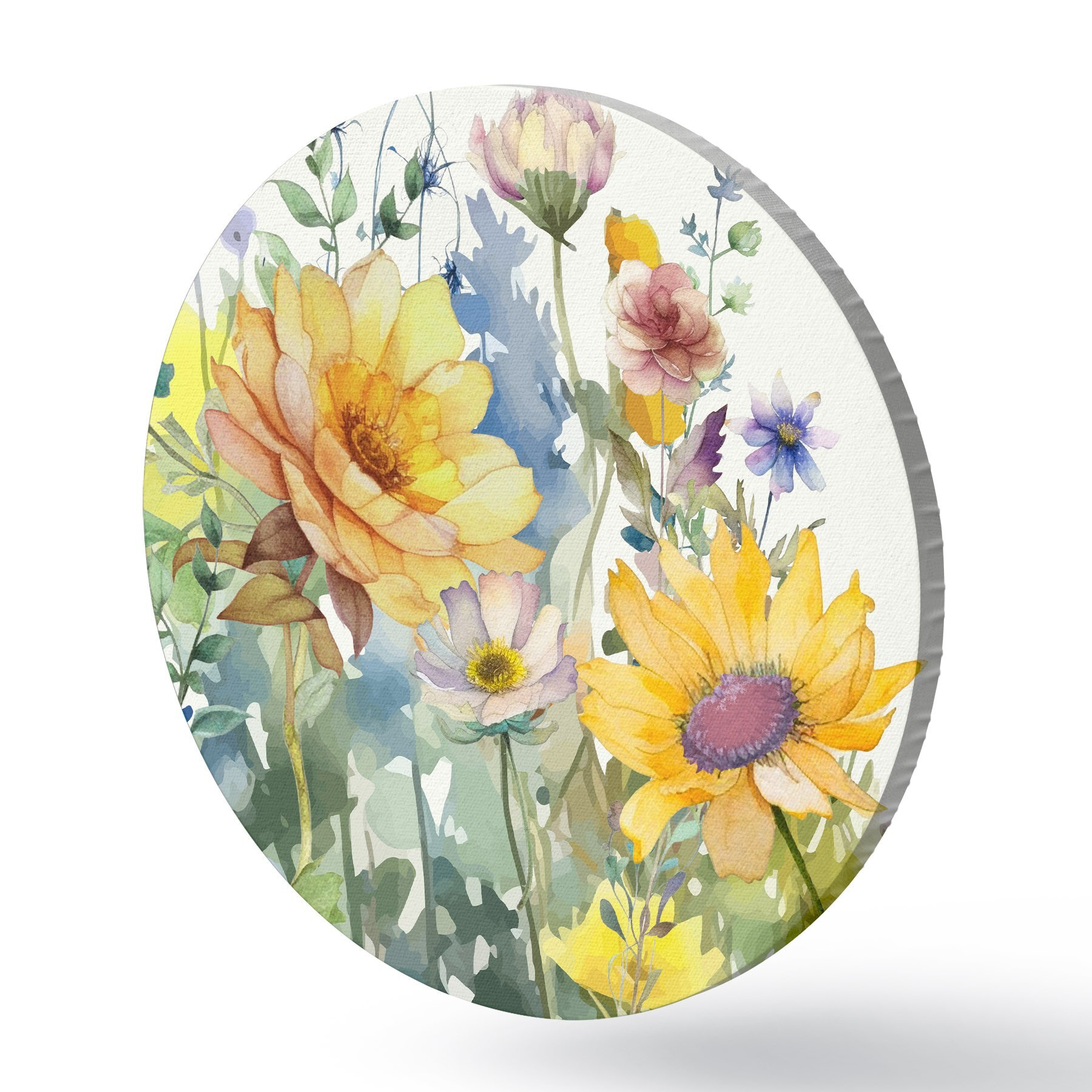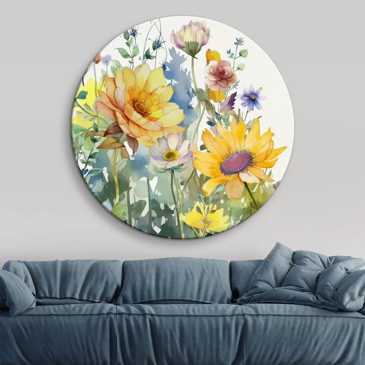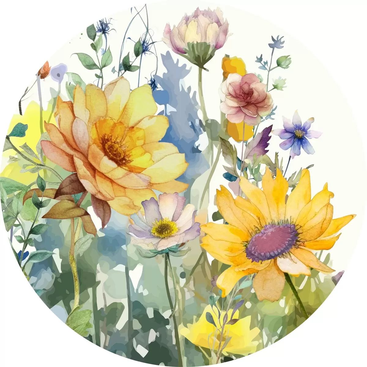 Runde Gemälde Sommer-Aquarell-Wildblumen r39340