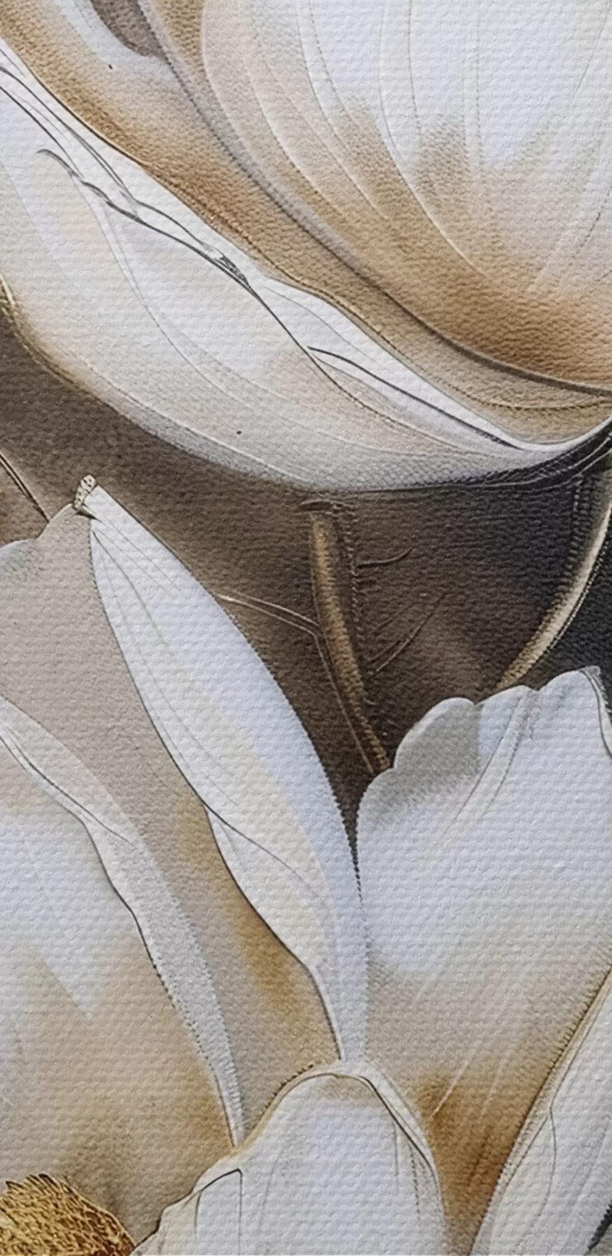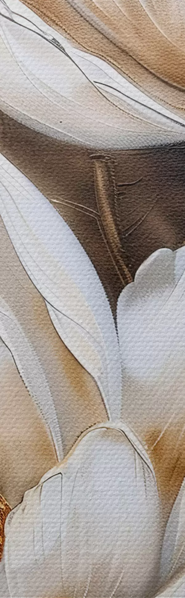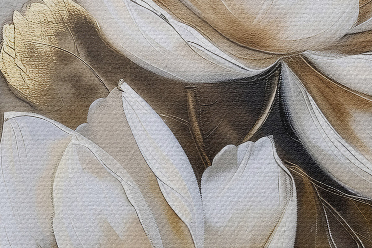 Drei Materialtypen stehen zur Verfügung: Economic Canvas - ein dichtes und haltbares Material für den Digitaldruck, identisch mit Malerleinwand, wasserfeste Oberfläche, realistische Wiedergabe von Details, mittelkörniges Material. Premium Canvas - die Textur ähnelt der einer Malerleinwand (verwobene kleine Fäden). Weiche, detaillierte Wiedergabe des Bildes auf einer matten Oberfläche. Eco-Premium - hochwertiges Gewebe aus 100% Baumwolle. Dank der natürlichen Baumwollfasern ist das Material langlebig und verschleißfest. Hervorragende Farbwiedergabe und Detailtreue.