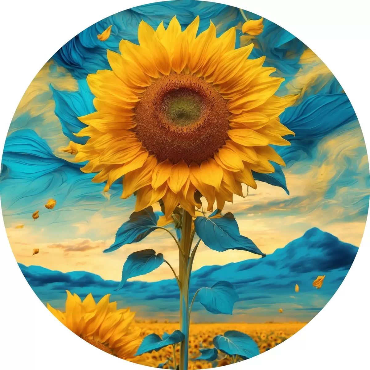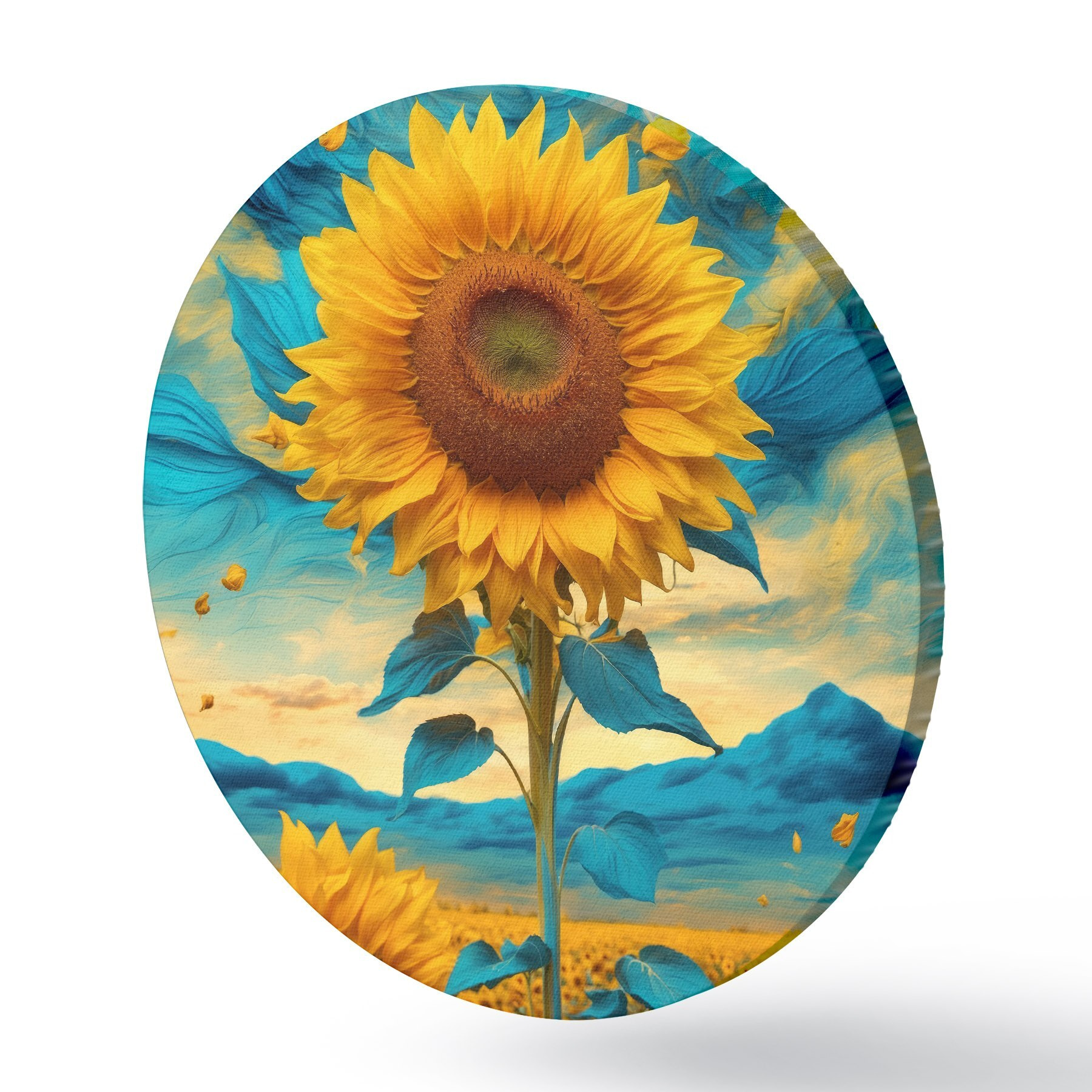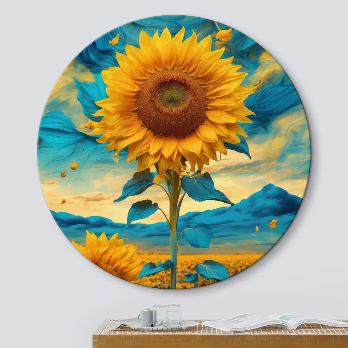 Runde Gemälde Feld von Sonnenblumen über abstrakten Himmel r39367