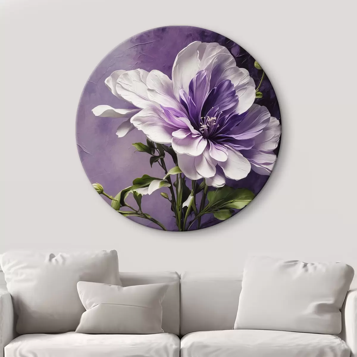 Runde Gemälde Lila Blumen auf lila Hintergrund r39368