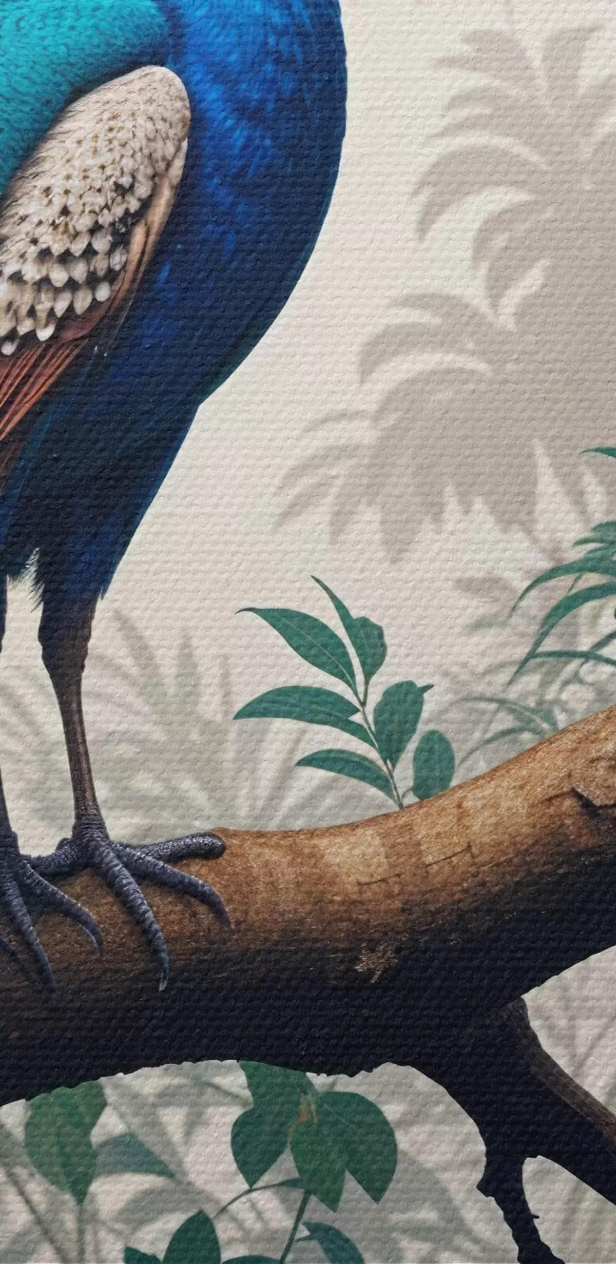 Bild Ein leuchtend blauer Pfau, der auf einem Ast in einem üppigen tropischen Wald thront Nr r39401