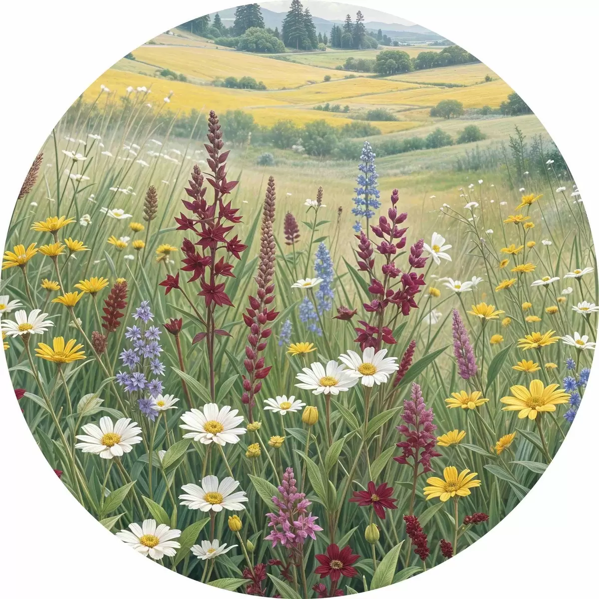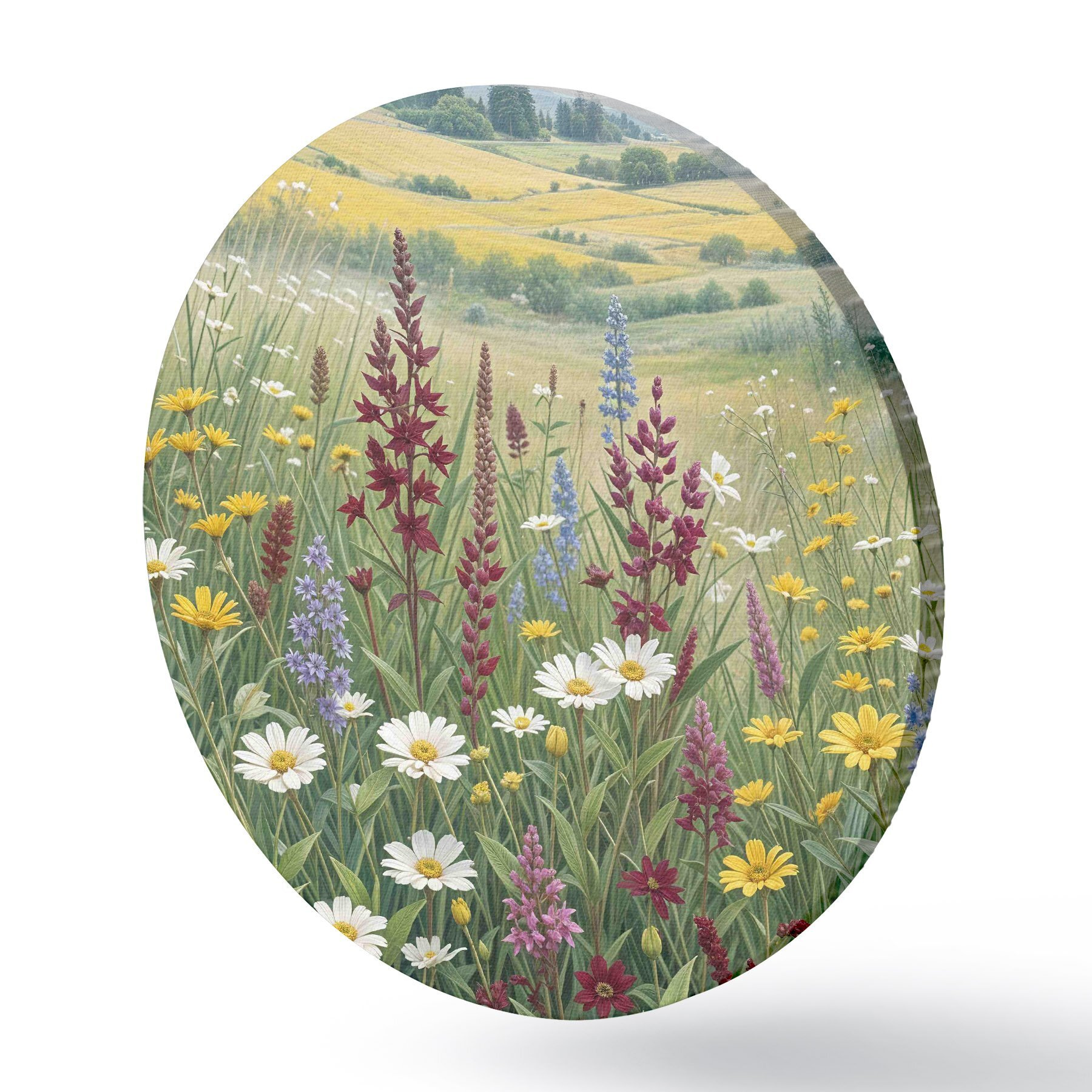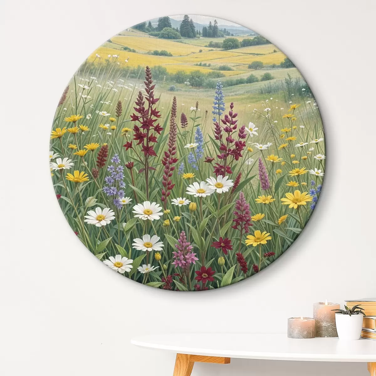 Runde Gemälde Eine üppige, bunte Wiese mit einer Vielzahl von Wildblumen r39407