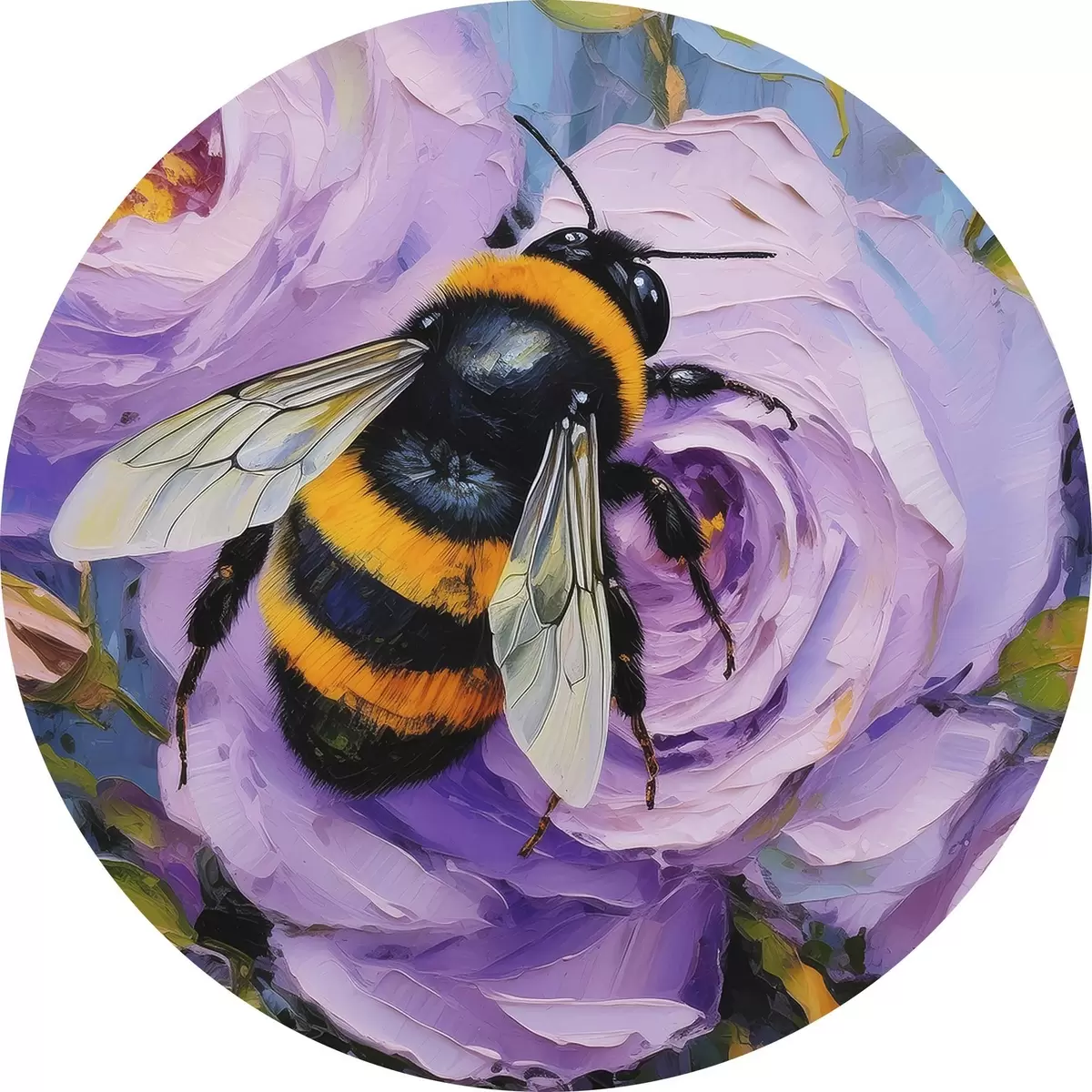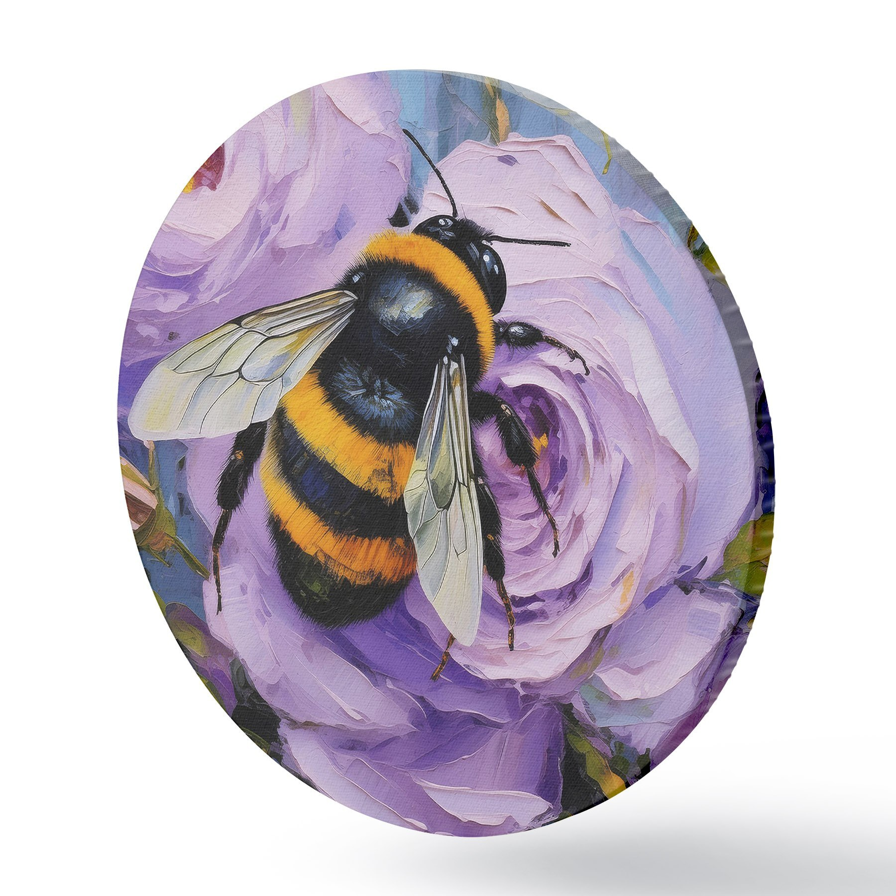 Runde Gemälde Biene auf den rosa Pfingstrosen, Sommerblumen, Ölgemälde, lebendige Pinselstriche r39410