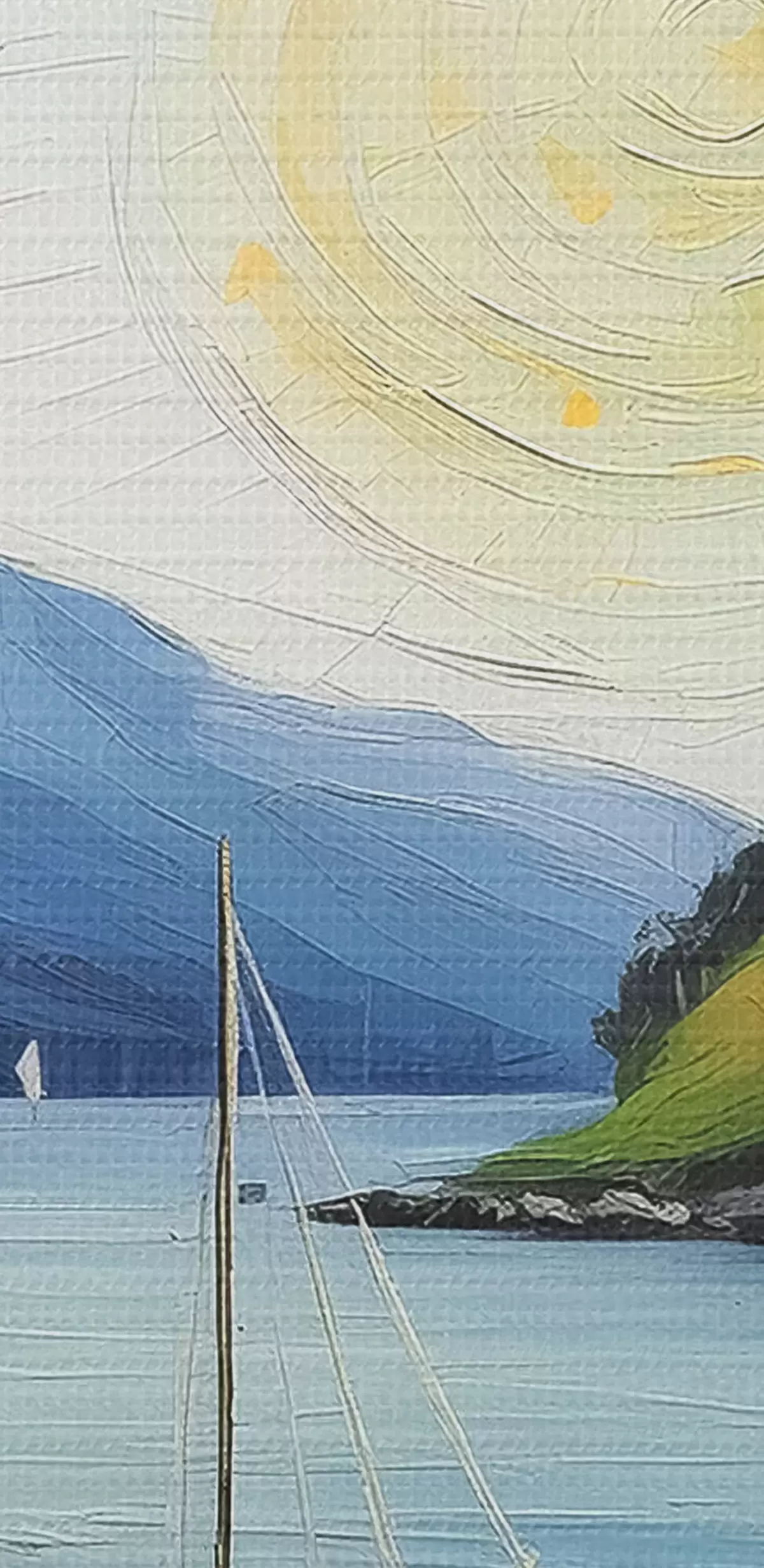 Das Gemälde kann sofort nach Erhalt aufgehängt werden. Das Gemälde wird auf einen 2 cm breiten Holzkeilrahmen aufgespannt.