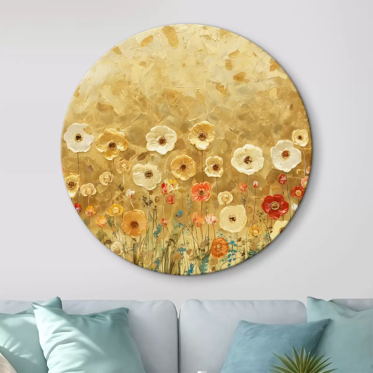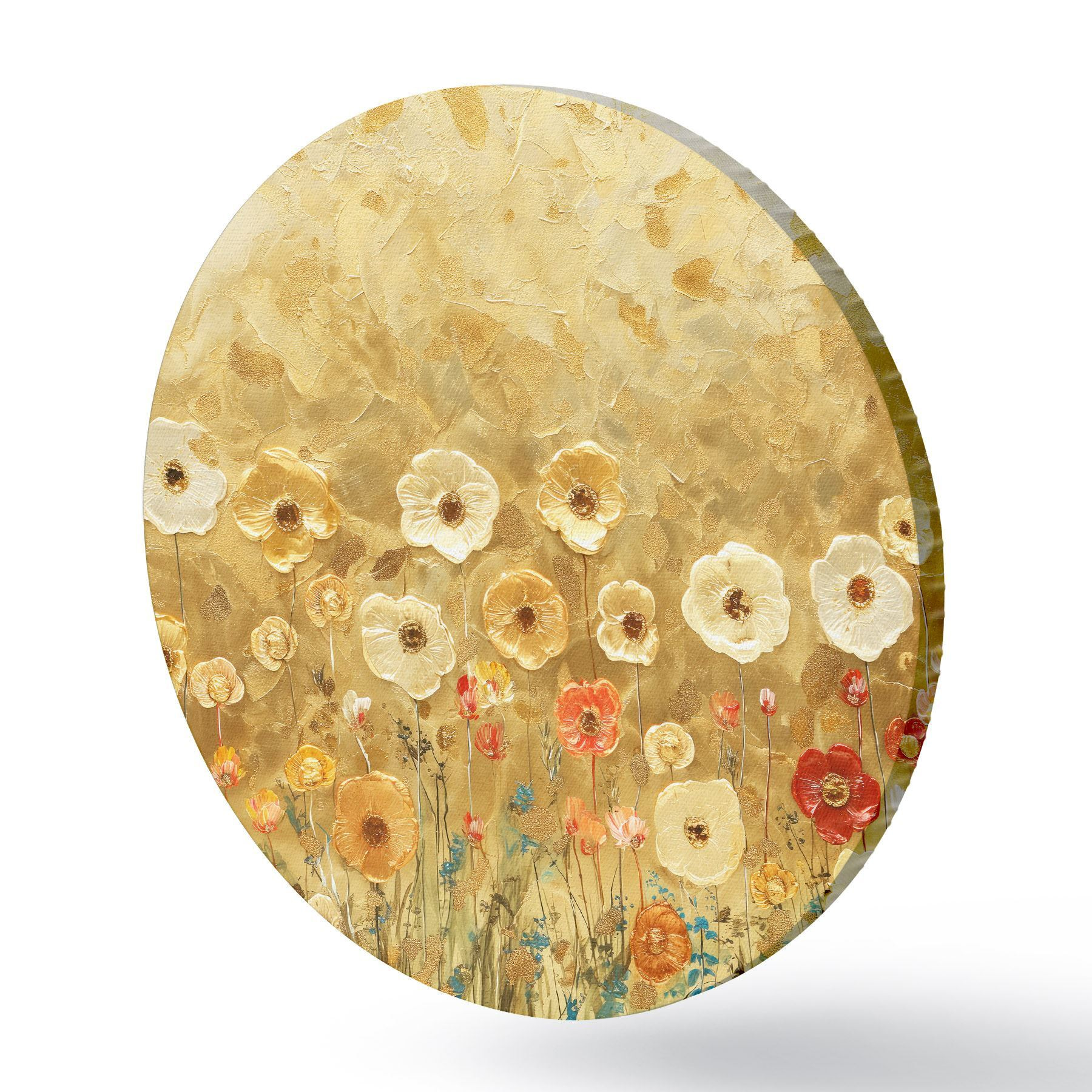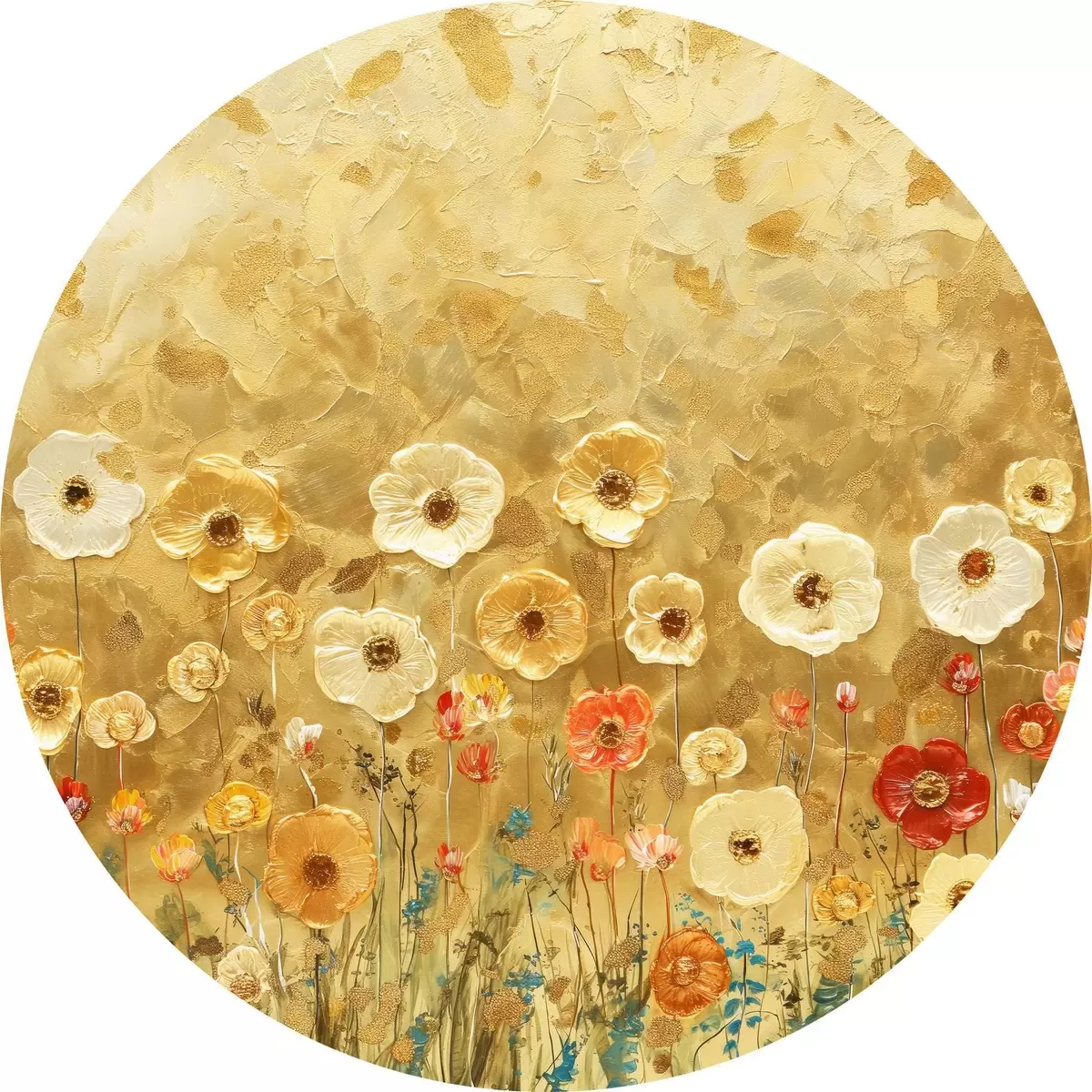 Runde Gemälde wiese im Klimt-Stil: zarte pastellfarbene Blumen mit geschmolzener Textur r39464