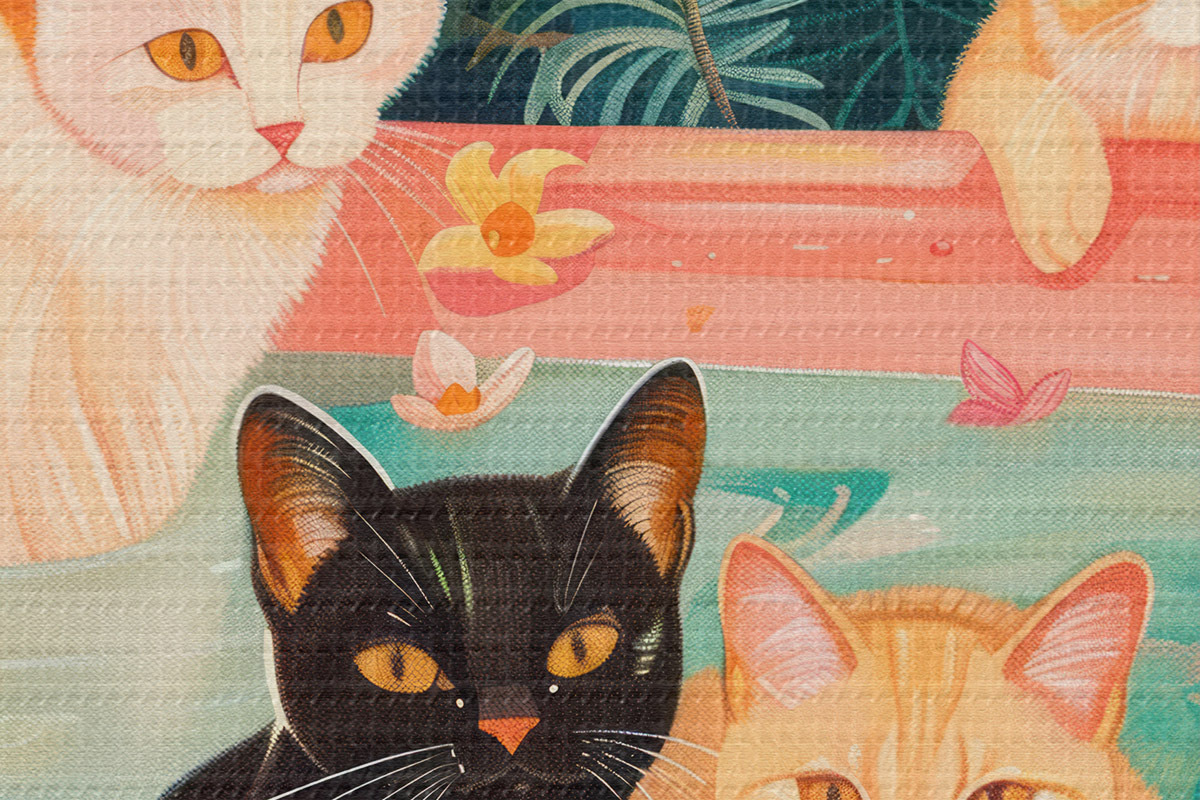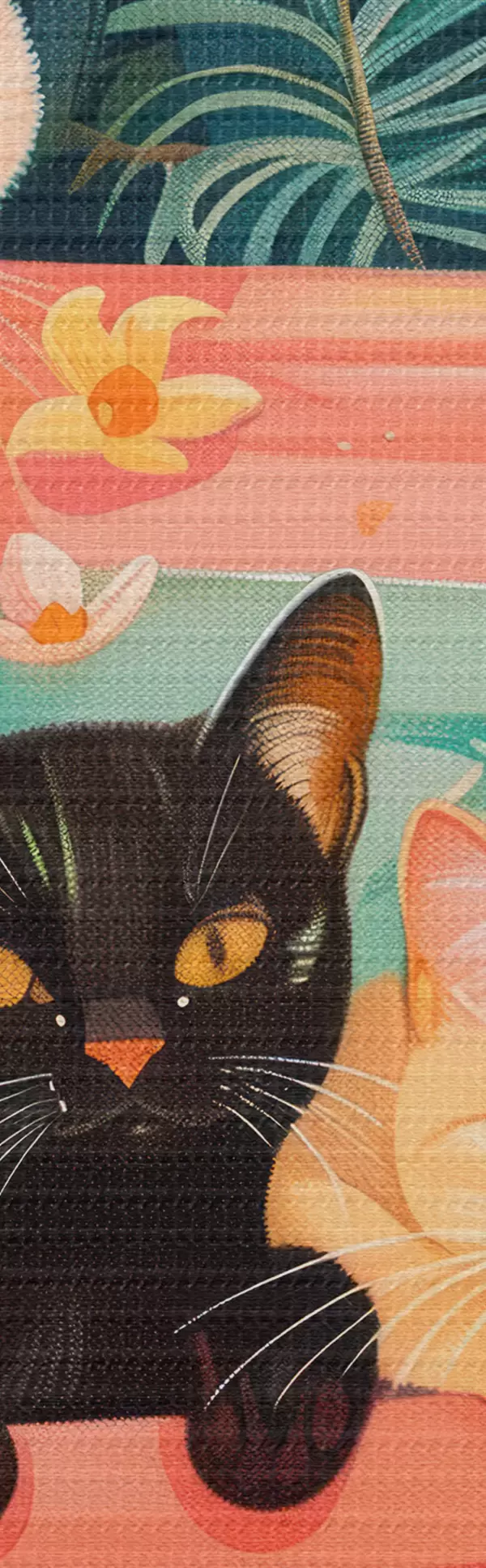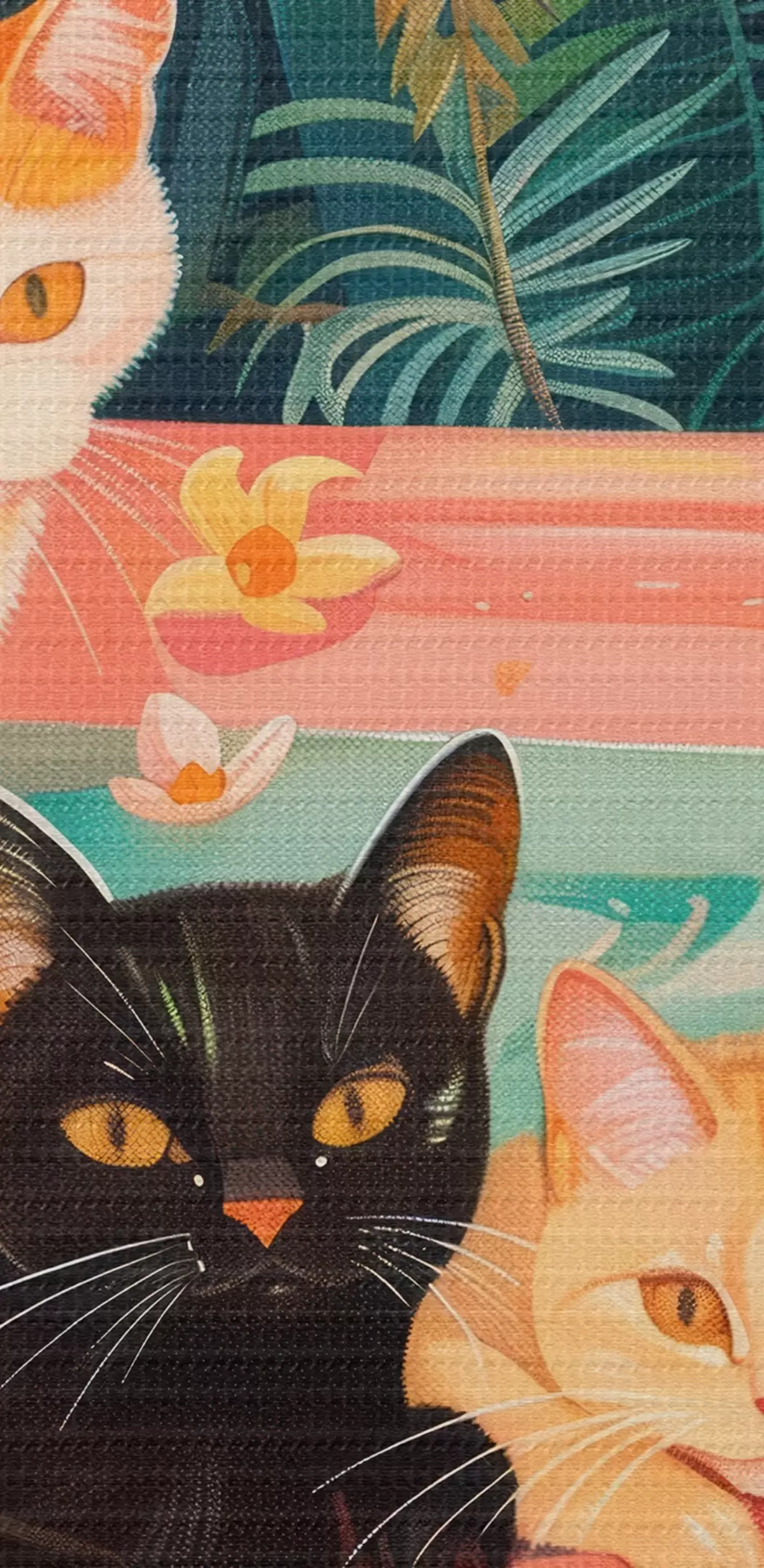 Bild Katzen in einem rosa Bad mit grünen Blättern, Dschungelatmosphäre Nr r39465