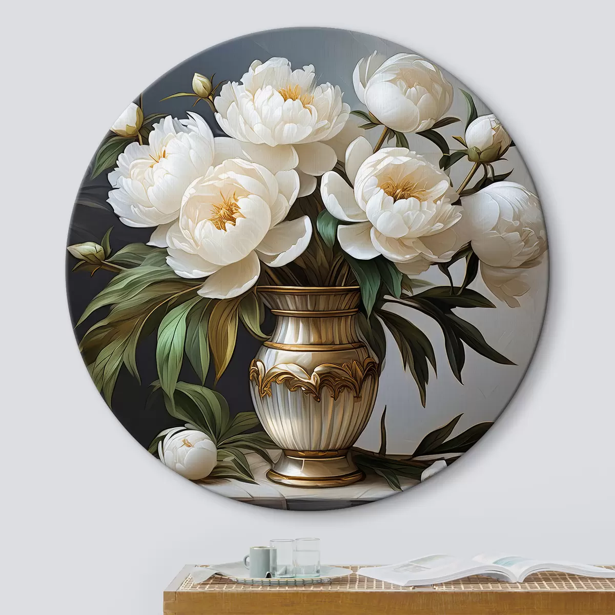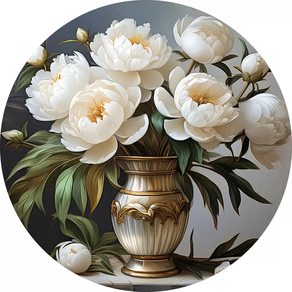 Runde Gemälde Ein Strauß weißer Pfingstrosen r39475