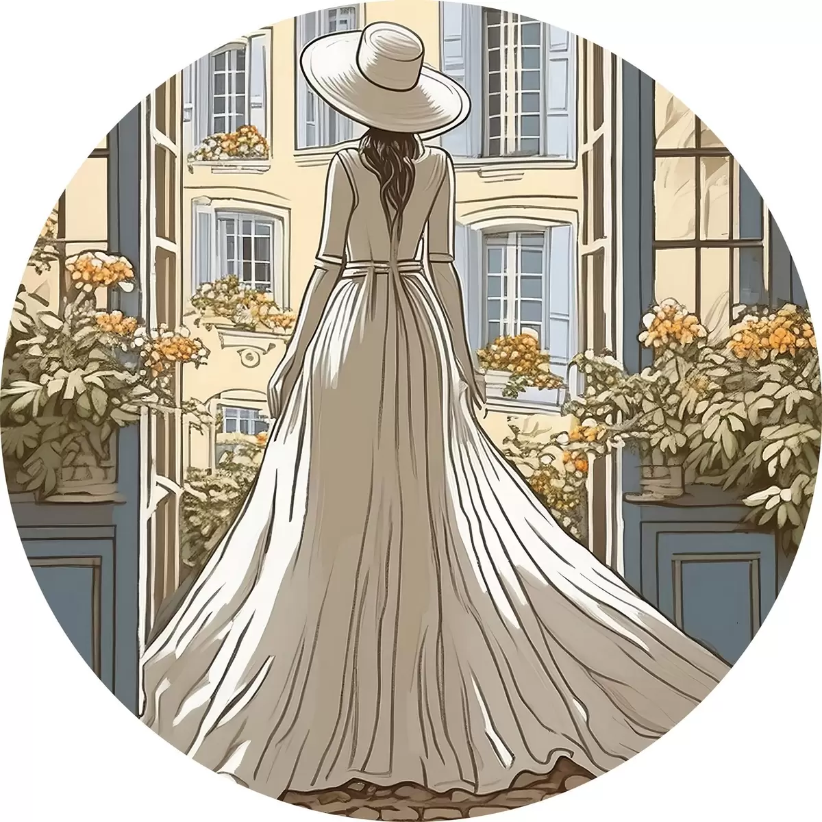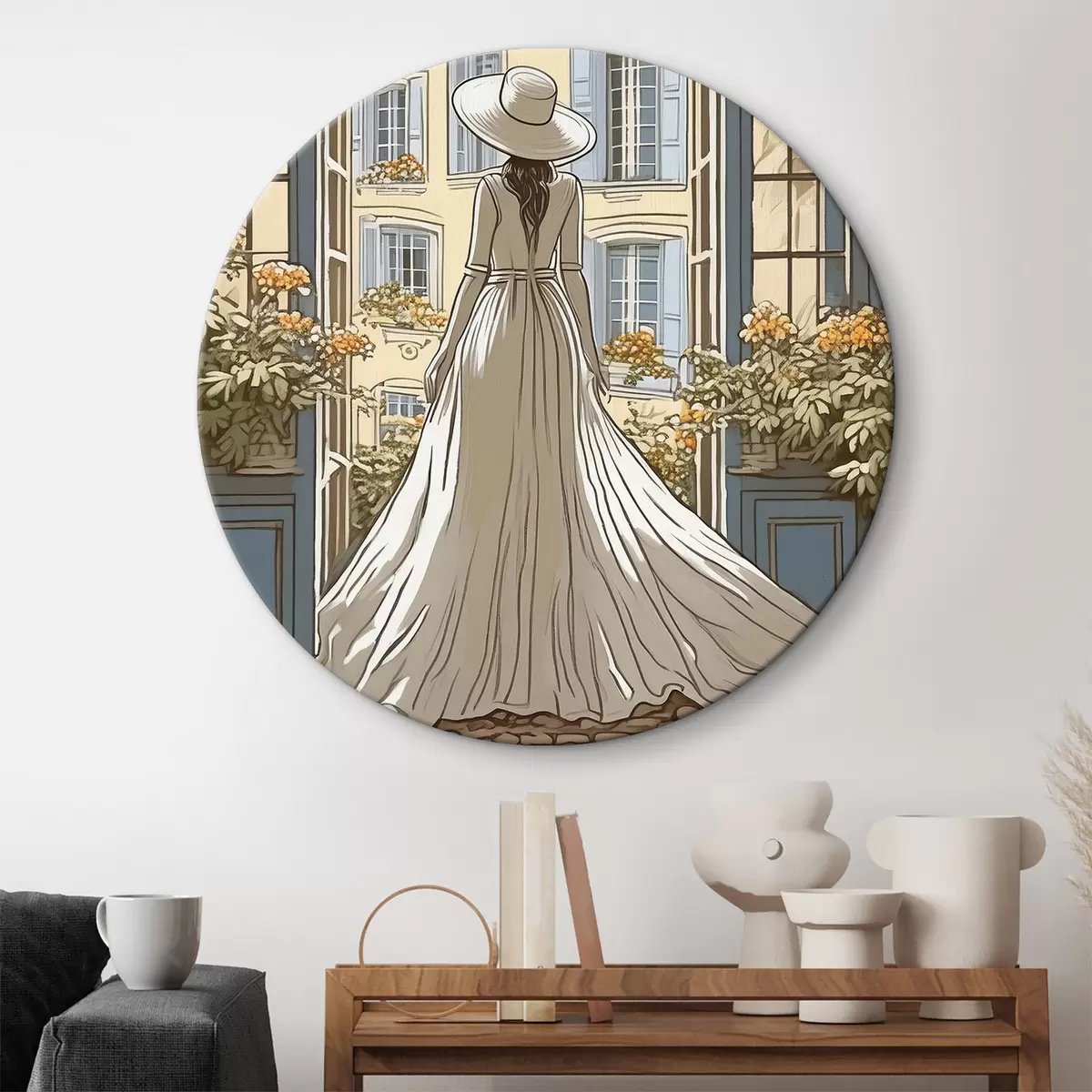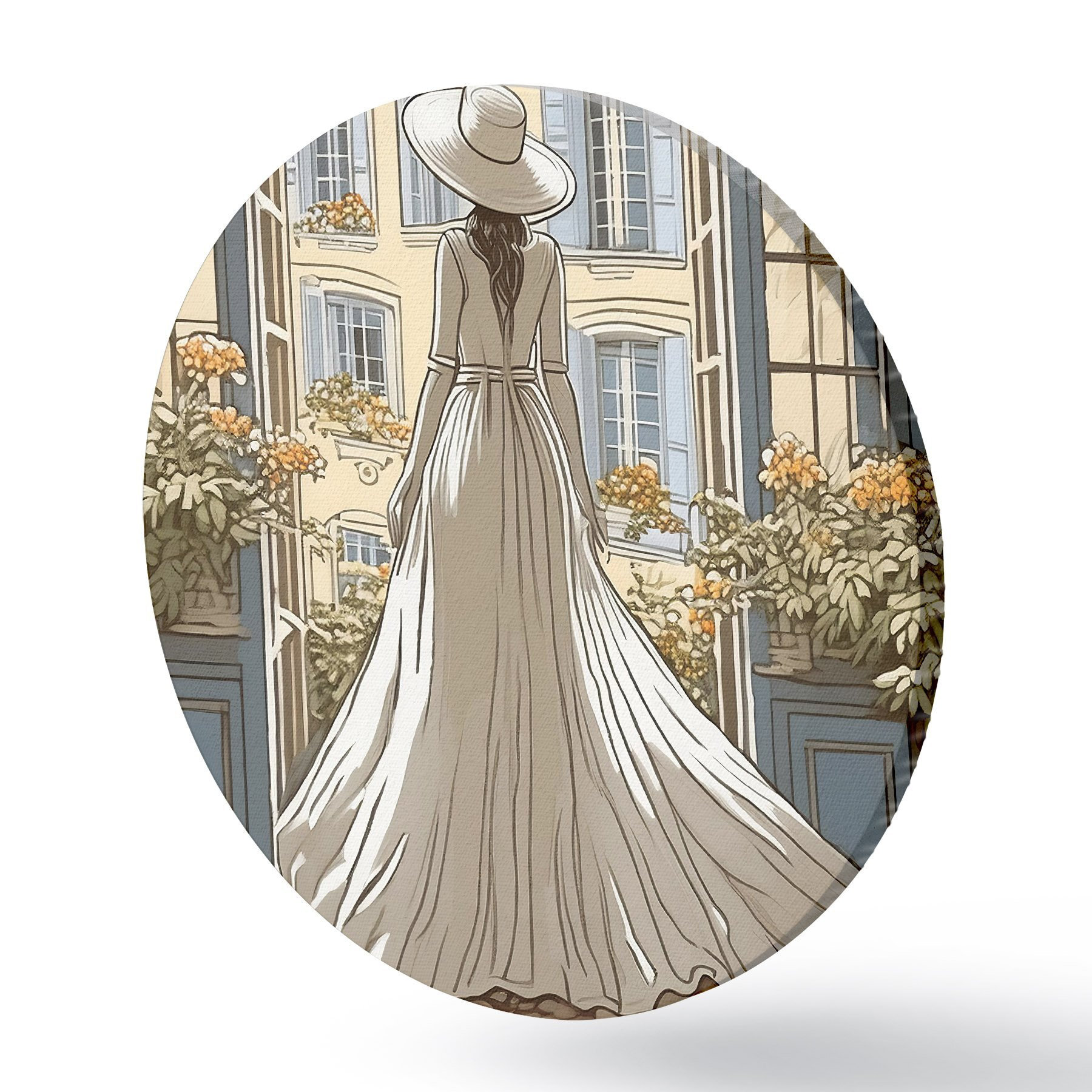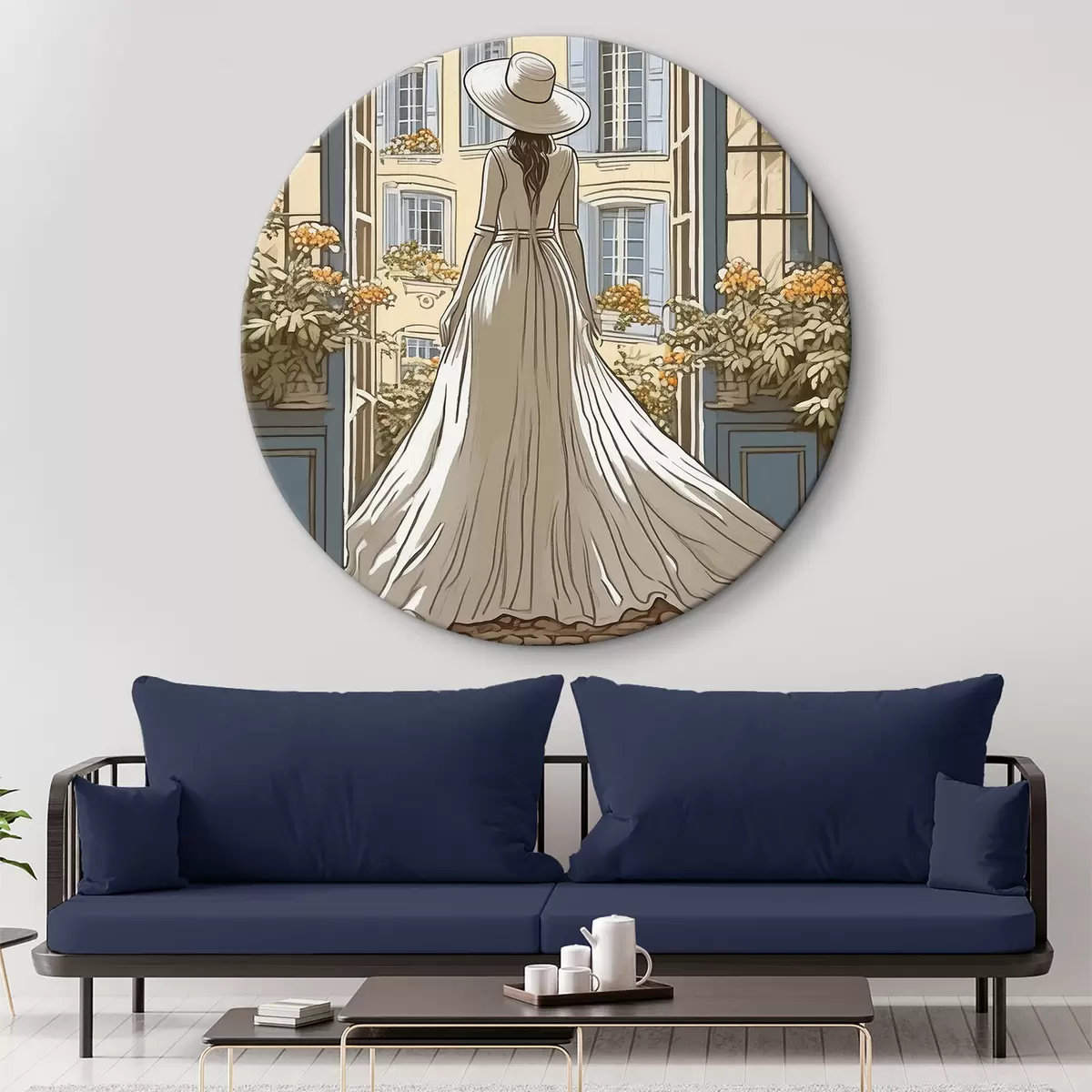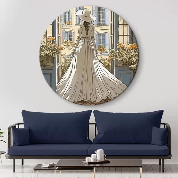 Runde Gemälde Silhouette eines Mädchens in einem weißen Kleid am Fenster r39479