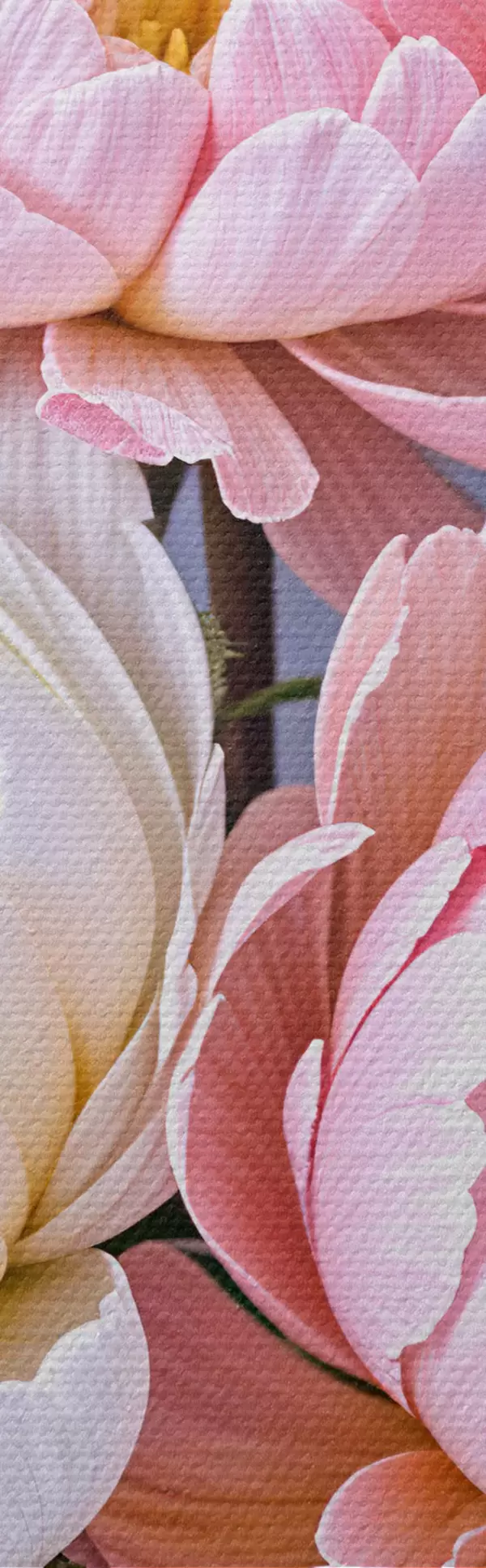 Drei Materialtypen stehen zur Verfügung: Economic Canvas - ein dichtes und haltbares Material für den Digitaldruck, identisch mit Malerleinwand, wasserfeste Oberfläche, realistische Wiedergabe von Details, mittelkörniges Material. Premium Canvas - die Textur ähnelt der einer Malerleinwand (verwobene kleine Fäden). Weiche, detaillierte Wiedergabe des Bildes auf einer matten Oberfläche. Eco-Premium - hochwertiges Gewebe aus 100% Baumwolle. Dank der natürlichen Baumwollfasern ist das Material langlebig und verschleißfest. Hervorragende Farbwiedergabe und Detailtreue.