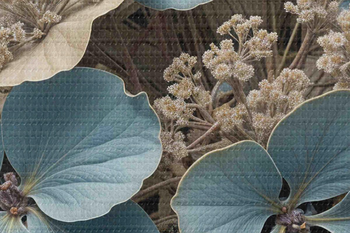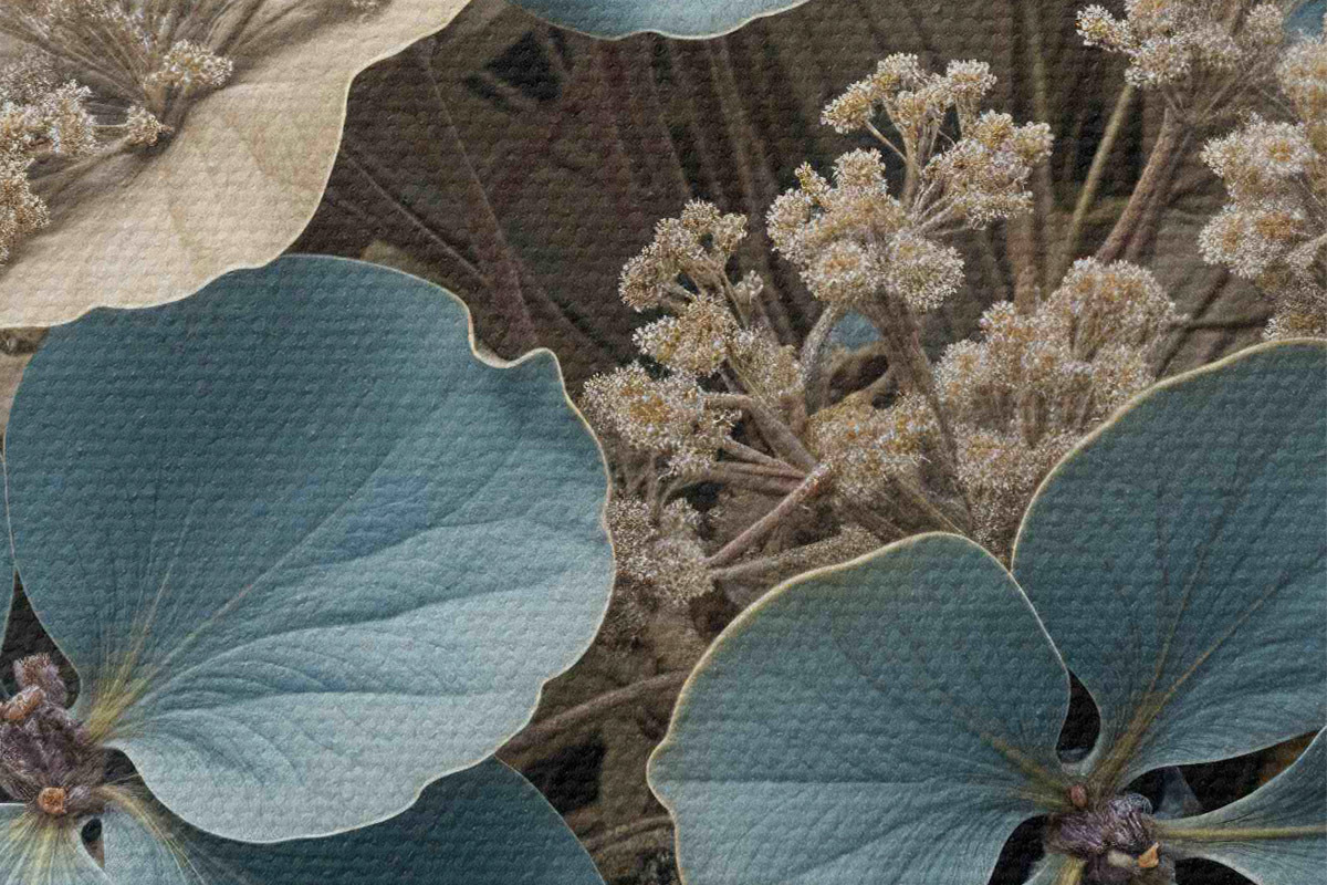Bild Nahaufnahme von blauen und weißen Blumen mit weichen, verschwommenen Blütenblättern auf einem braunen Hintergrund Nr r39517