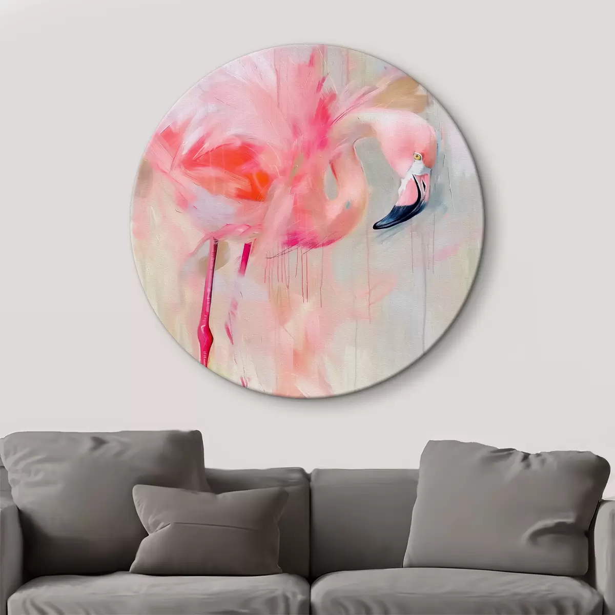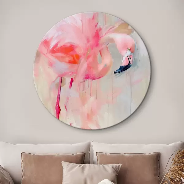 Runde Gemälde Rosa Flamingo-Vogel r39541