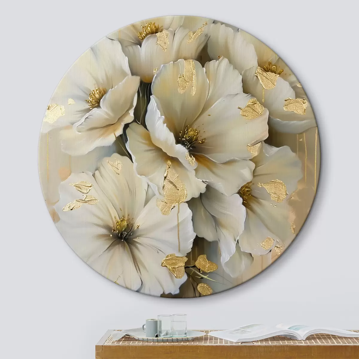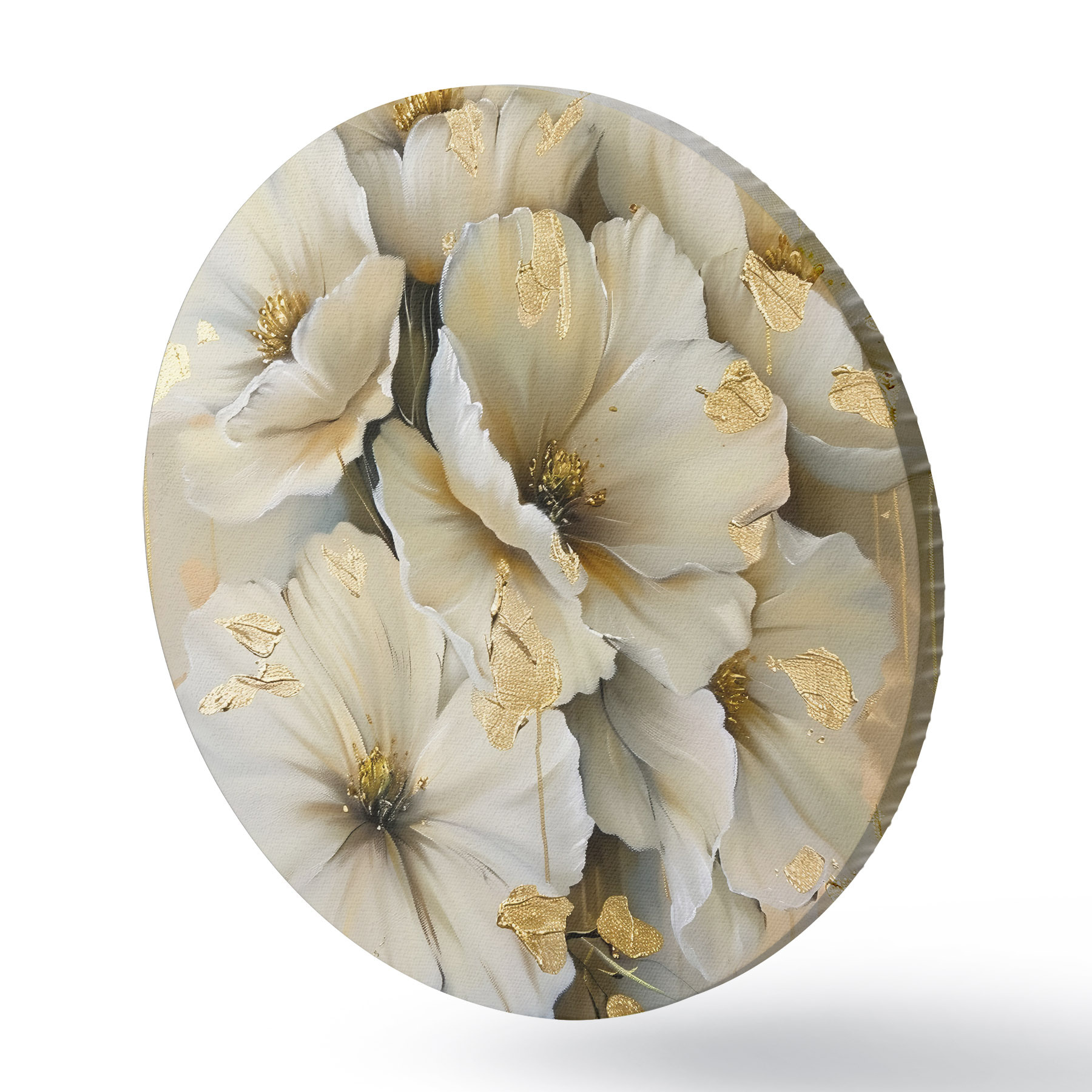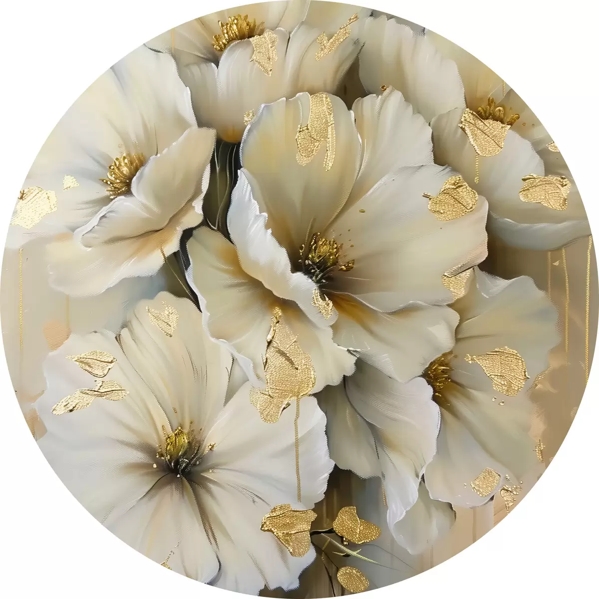Runde Gemälde weiße Blumen r39555