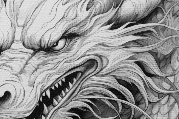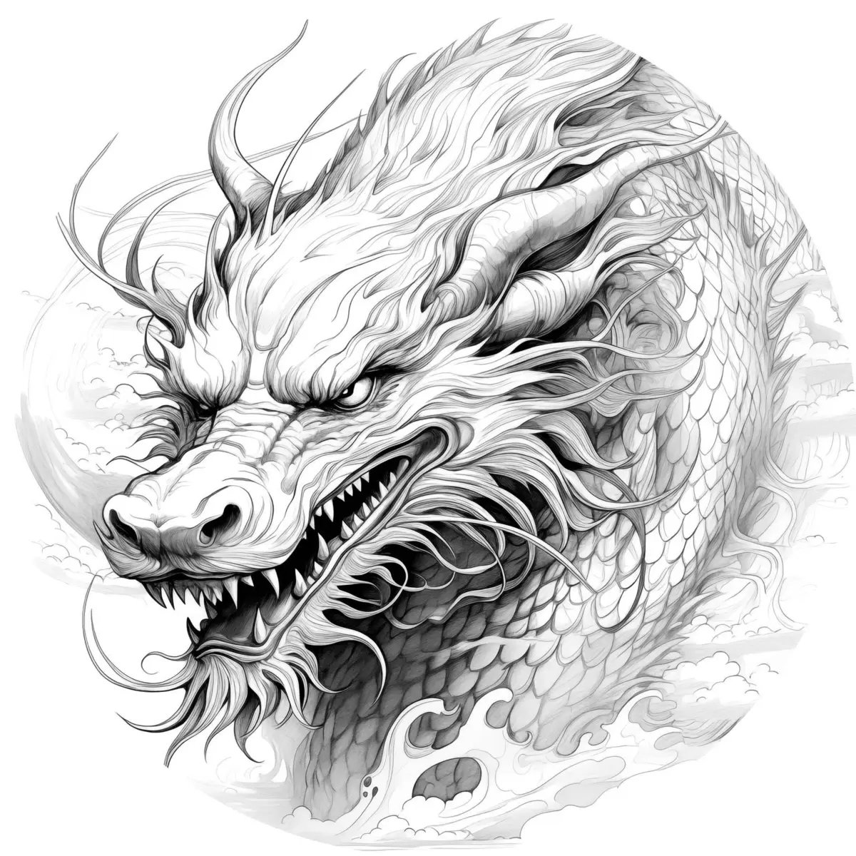 Bild Monochrome Strichzeichnung eines Drachens im chinesischen Stil Nr r39563