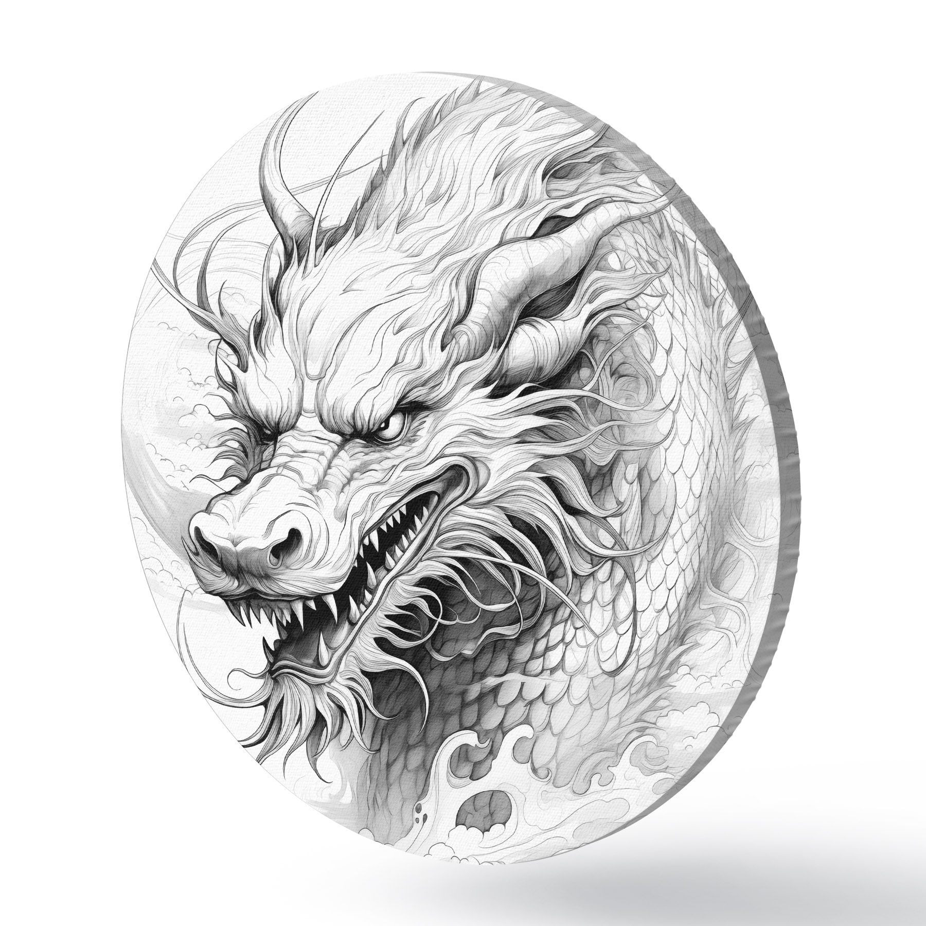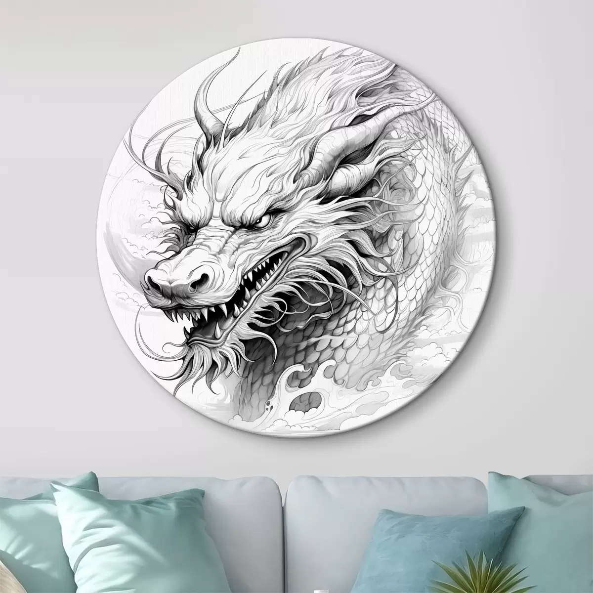 Runde Gemälde Monochrome Strichzeichnung eines Drachens im chinesischen Stil r39563