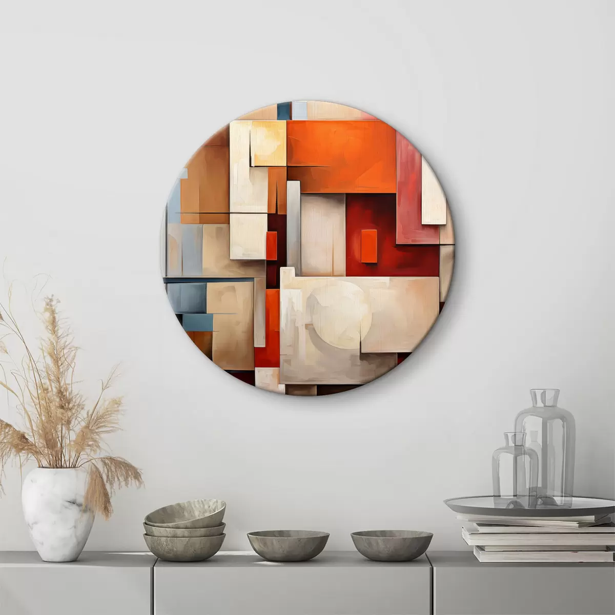 Runde Gemälde Abstraktion im Kubismus-Stil, Ölgemälde, rote, blaue, weiße Farben r39571
