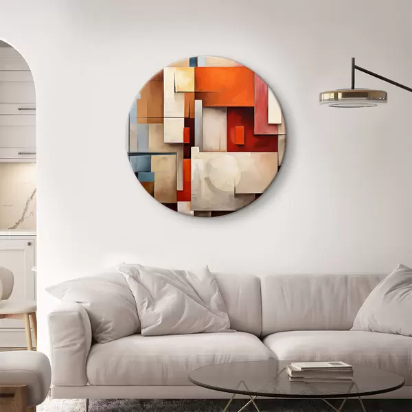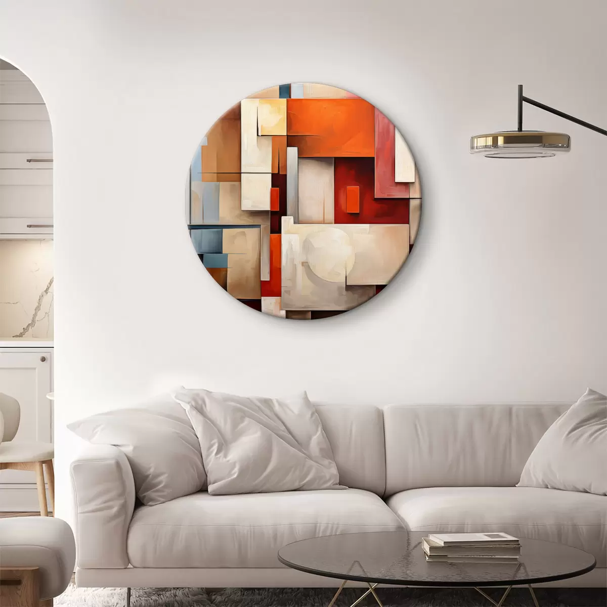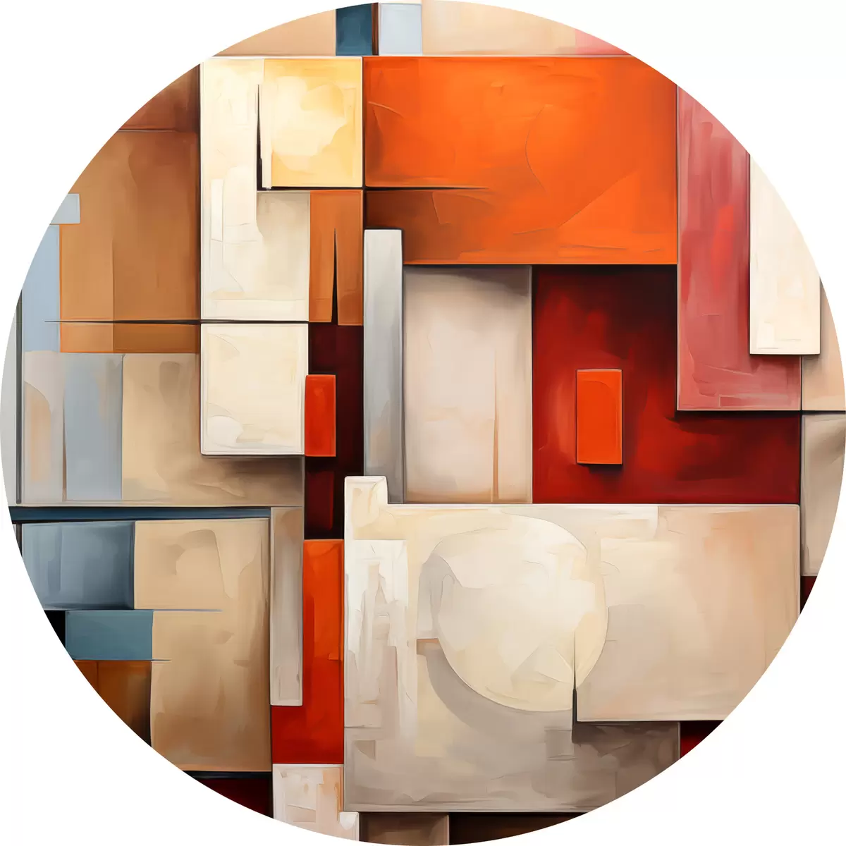 Runde Gemälde Abstraktion im Kubismus-Stil, Ölgemälde, rote, blaue, weiße Farben r39571