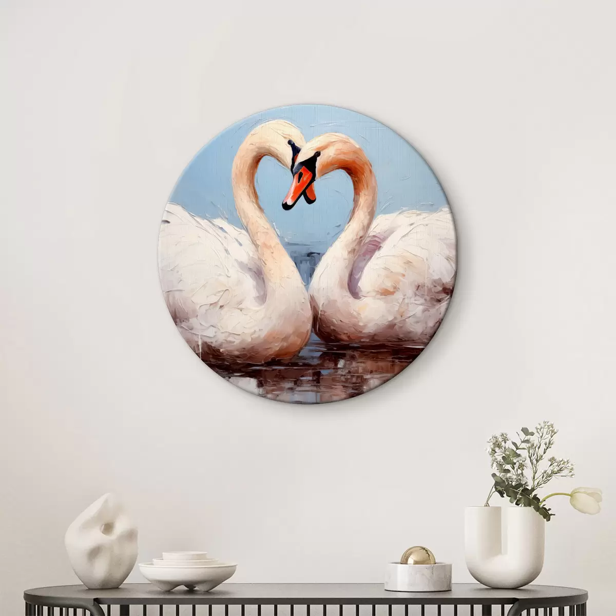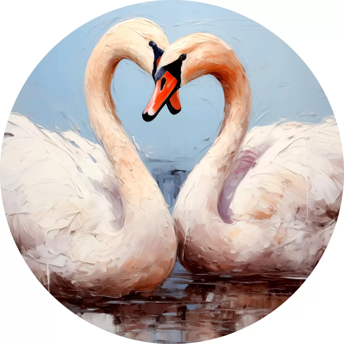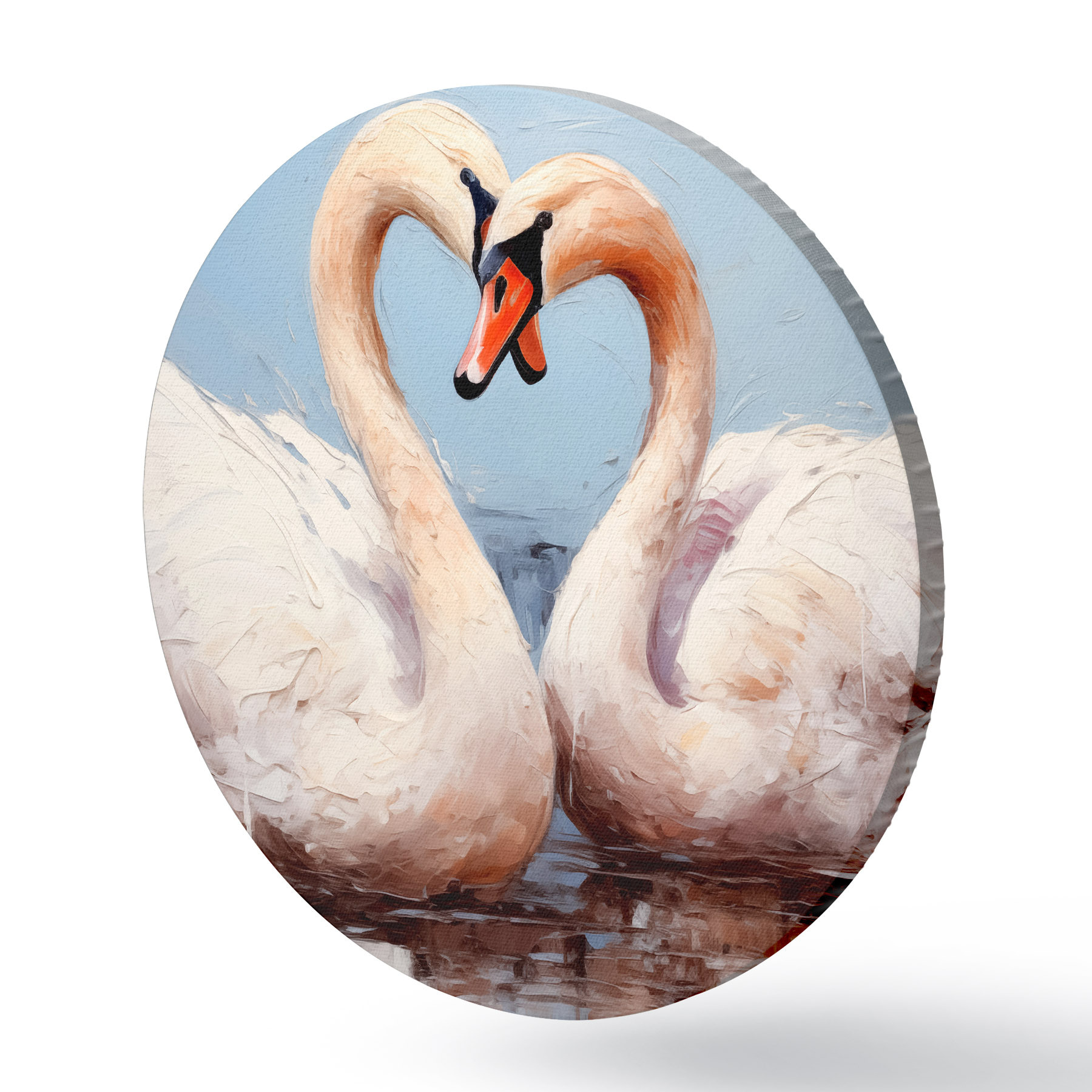 Runde Gemälde Paar weiße Schwäne auf einem Teich, Ölgemälde r39572