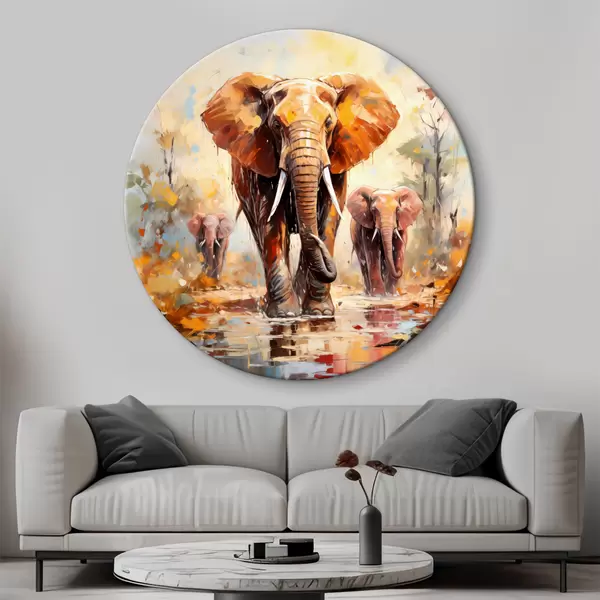 Runde Gemälde Eine Herde Elefanten in der Savanne, Ölgemälde, abstrakte Kunst r39573