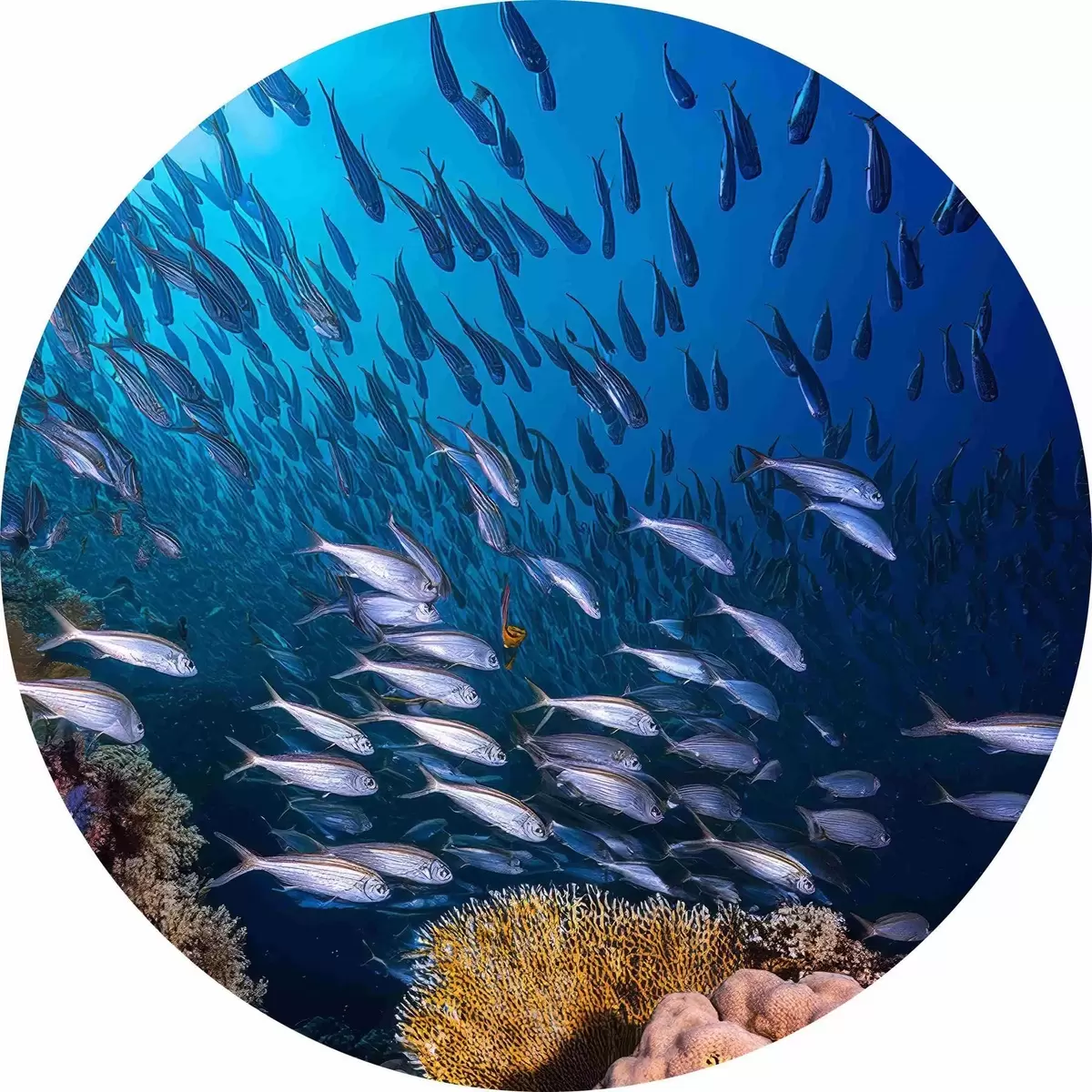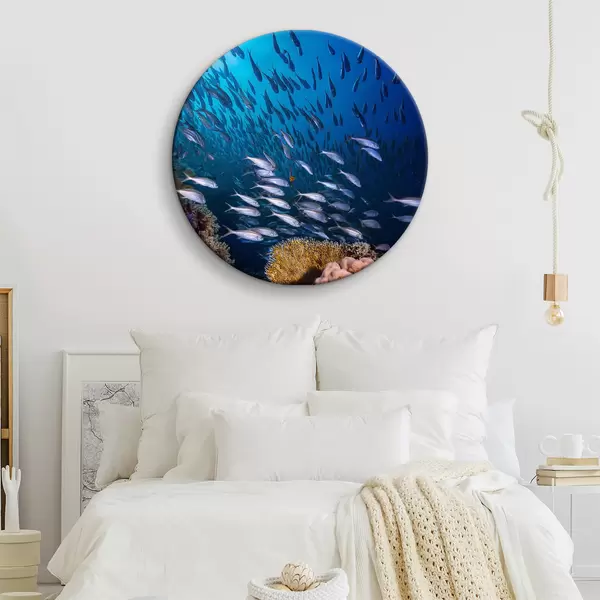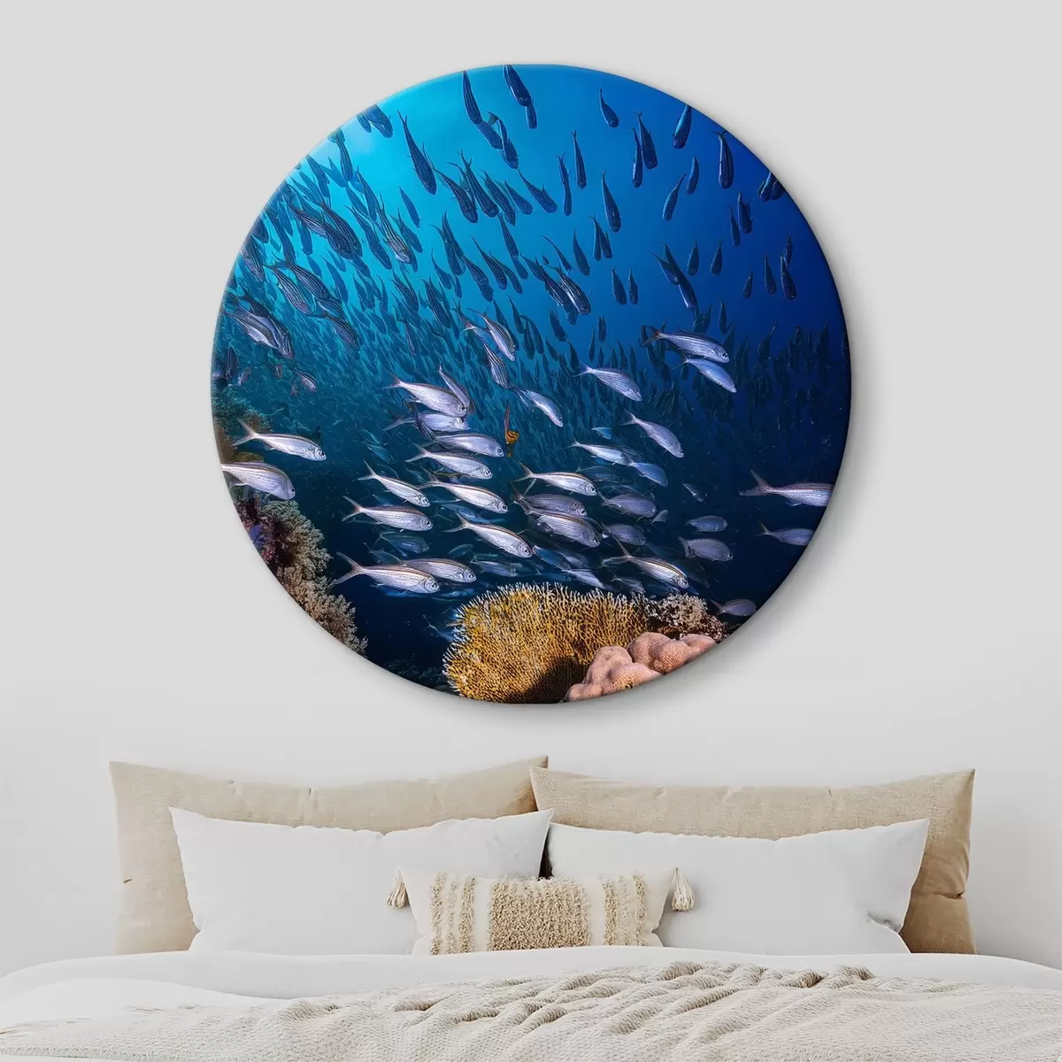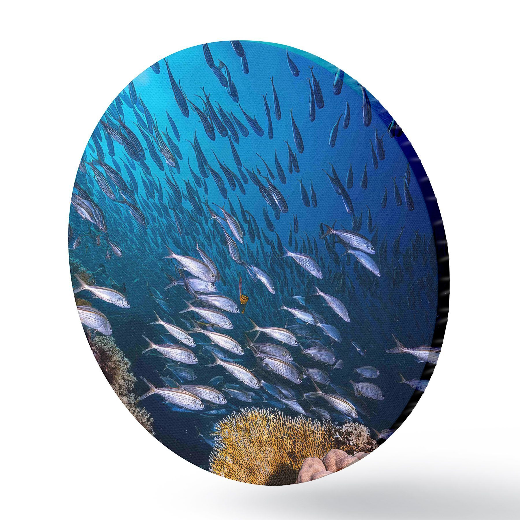 Runde Gemälde viele kleine Fische in der Nähe der Korallen r39625