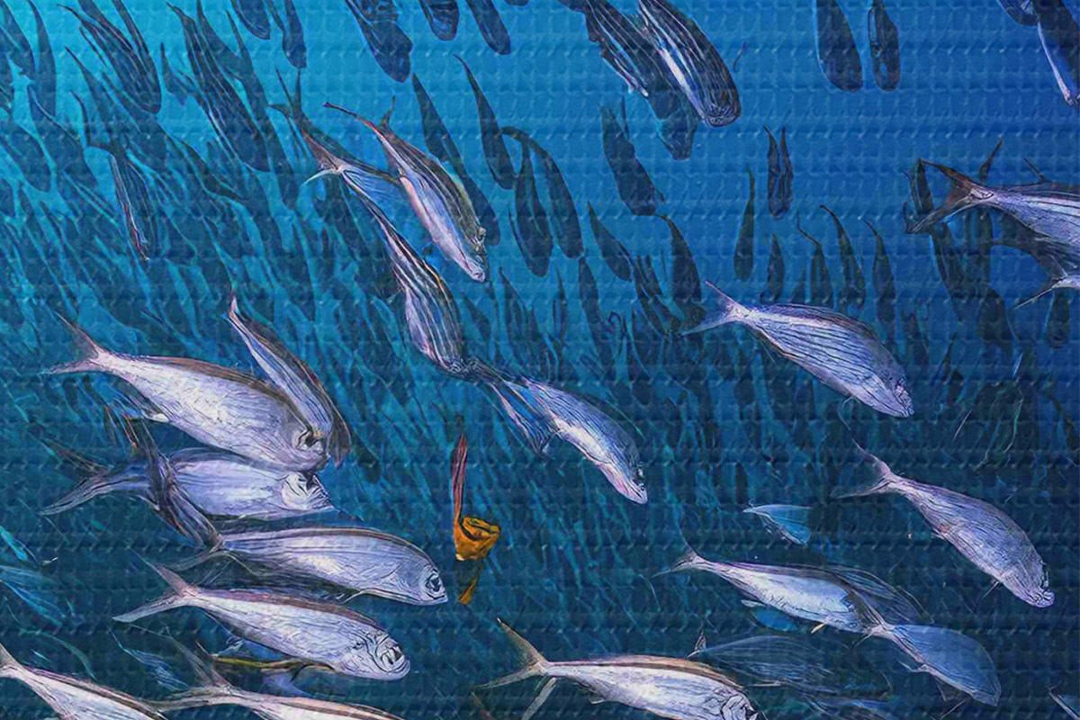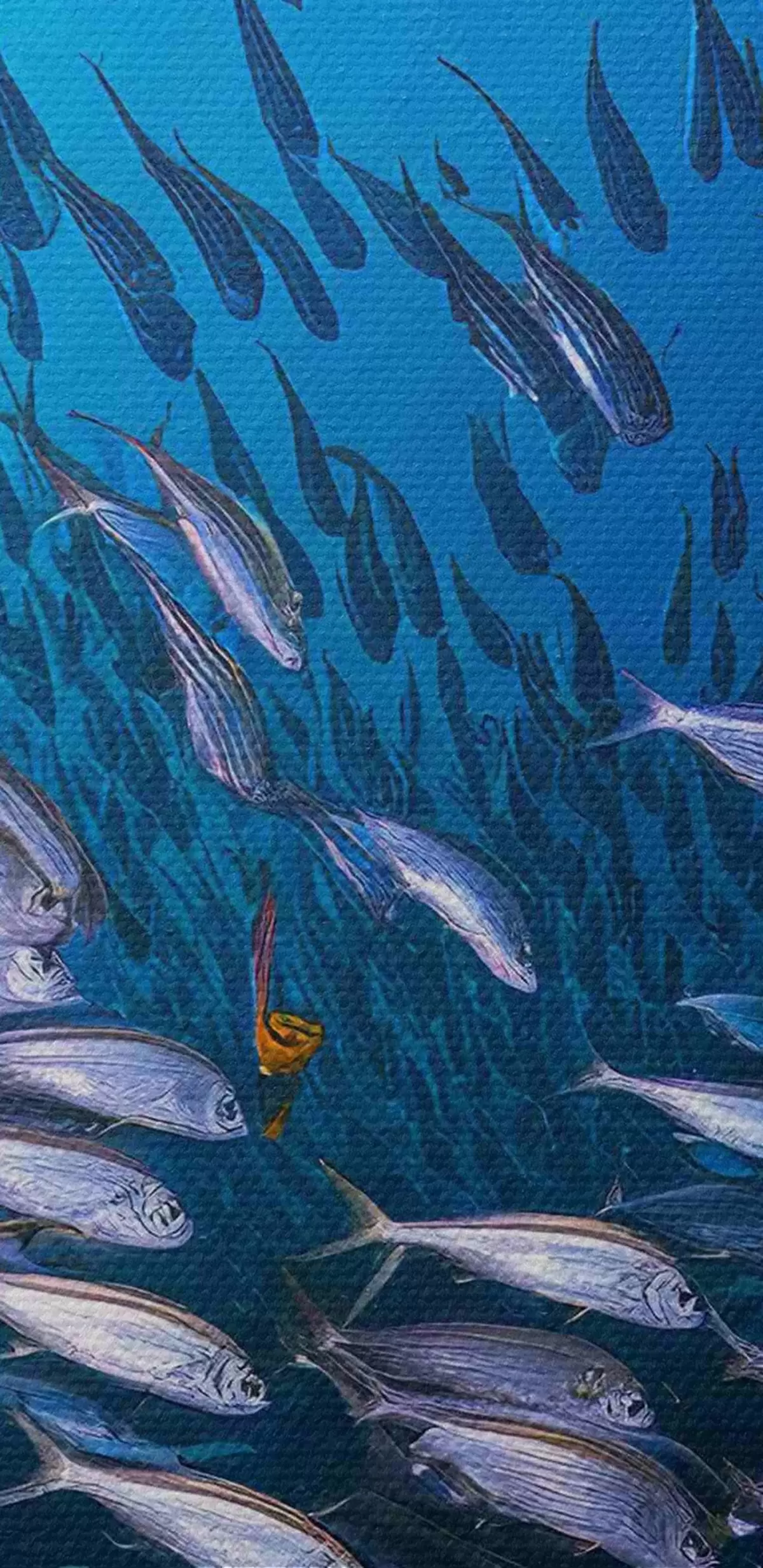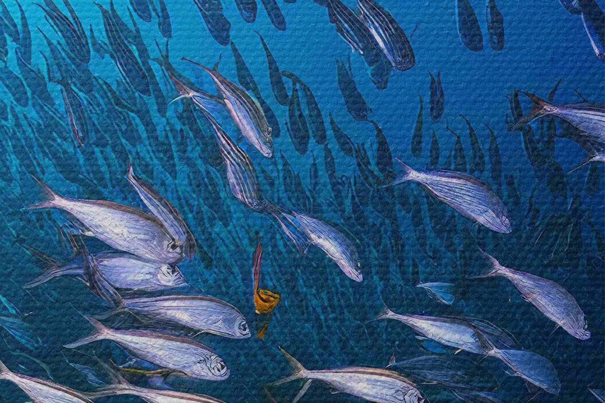 Runde Gemälde viele kleine Fische in der Nähe der Korallen r39625