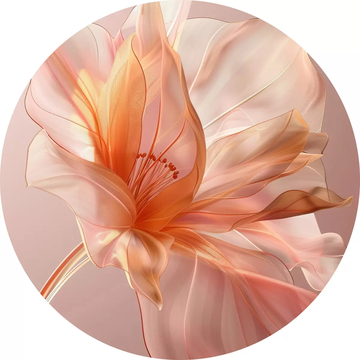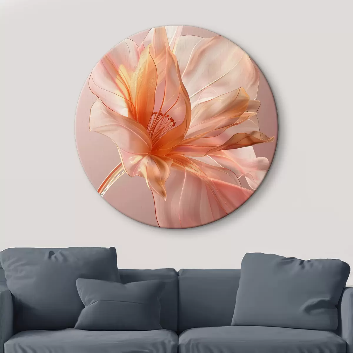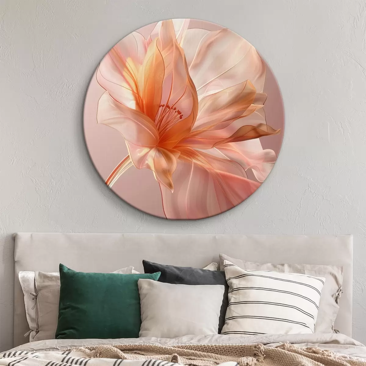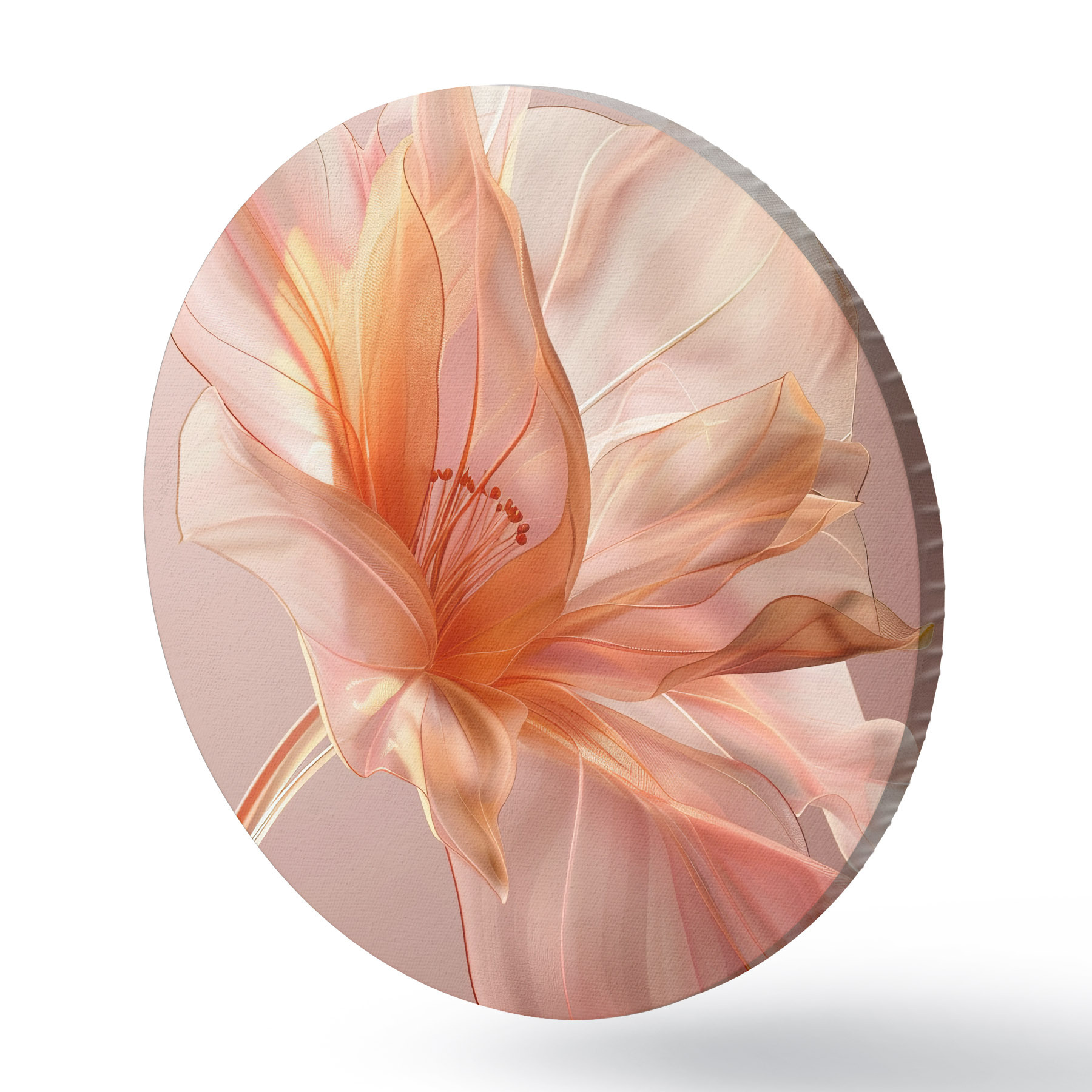 Runde Gemälde Pfirsichfarbenes Blütenblatt auf rosa Hintergrund mit fließenden Linien, Minimalismus und feinen Details r39631