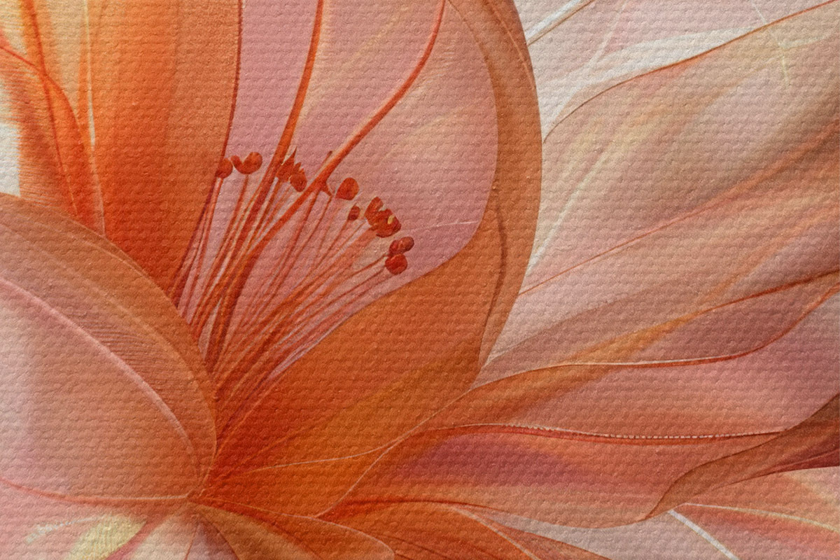 Drei Materialtypen stehen zur Verfügung: Economic Canvas - ein dichtes und haltbares Material für den Digitaldruck, identisch mit Malerleinwand, wasserfeste Oberfläche, realistische Wiedergabe von Details, mittelkörniges Material. Premium Canvas - die Textur ähnelt der einer Malerleinwand (verwobene kleine Fäden). Weiche, detaillierte Wiedergabe des Bildes auf einer matten Oberfläche. Eco-Premium - hochwertiges Gewebe aus 100% Baumwolle. Dank der natürlichen Baumwollfasern ist das Material langlebig und verschleißfest. Hervorragende Farbwiedergabe und Detailtreue.