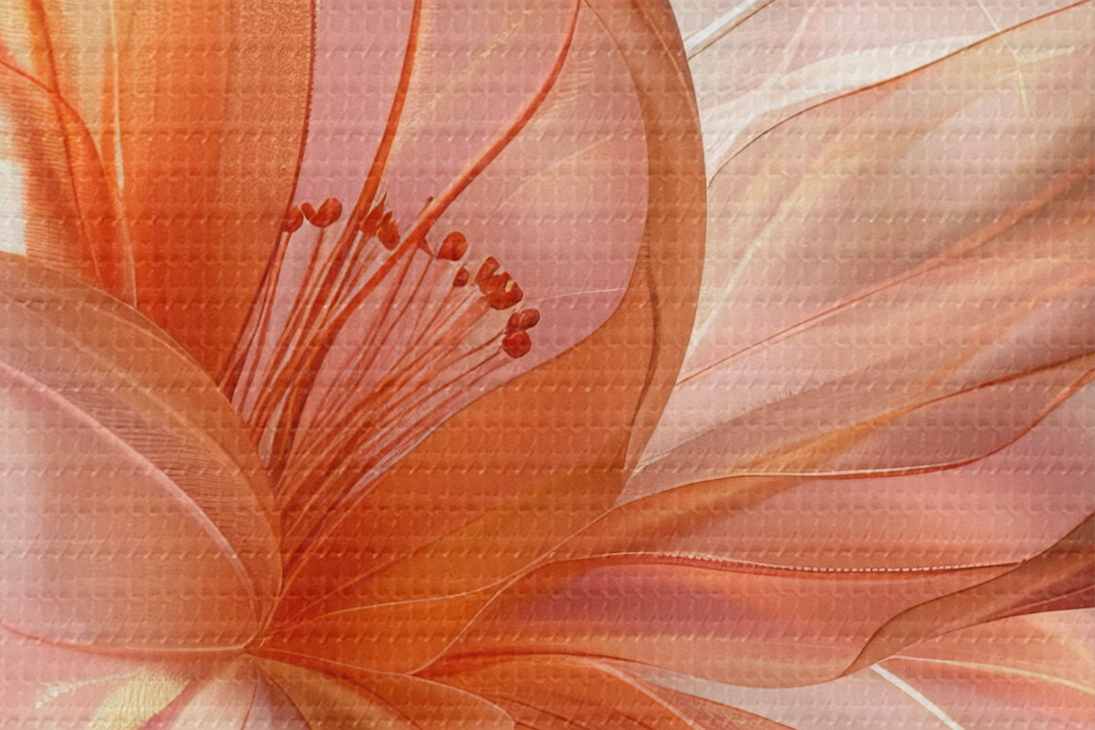 Bild Pfirsichfarbenes Blütenblatt auf rosa Hintergrund mit fließenden Linien, Minimalismus und feinen Details Nr r39631
