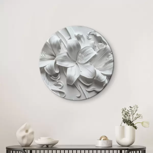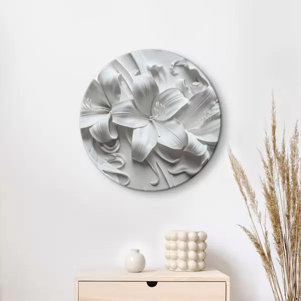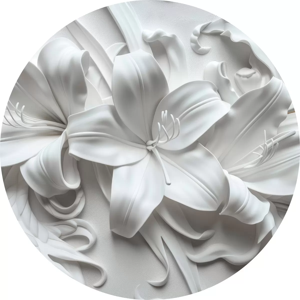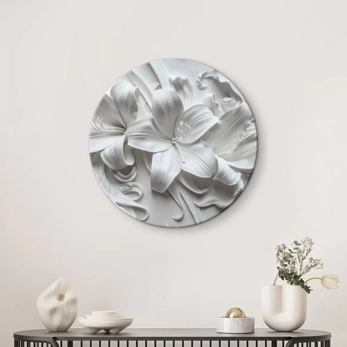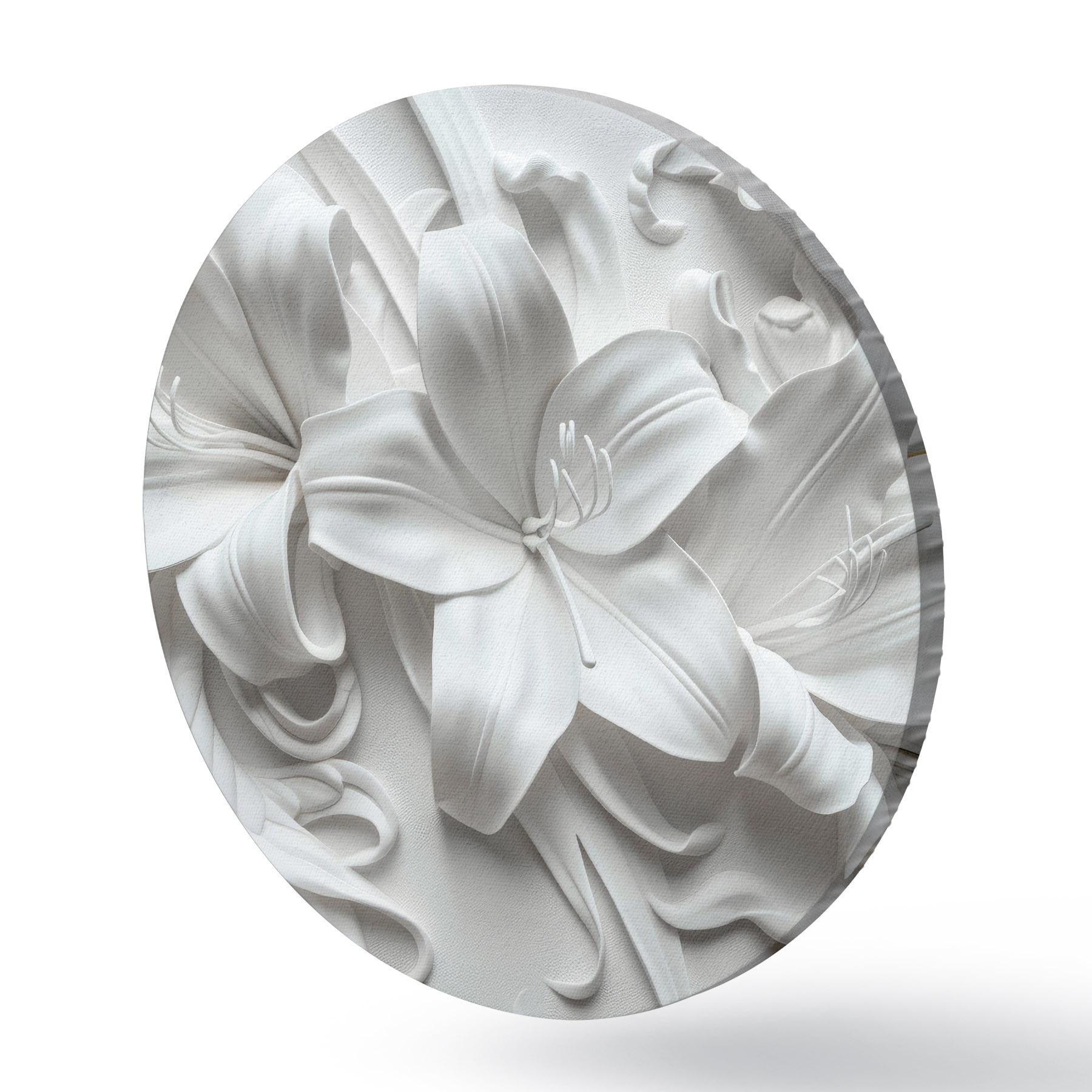 Runde Gemälde Weißes 3D-Relief aus geformten Lilien r39654