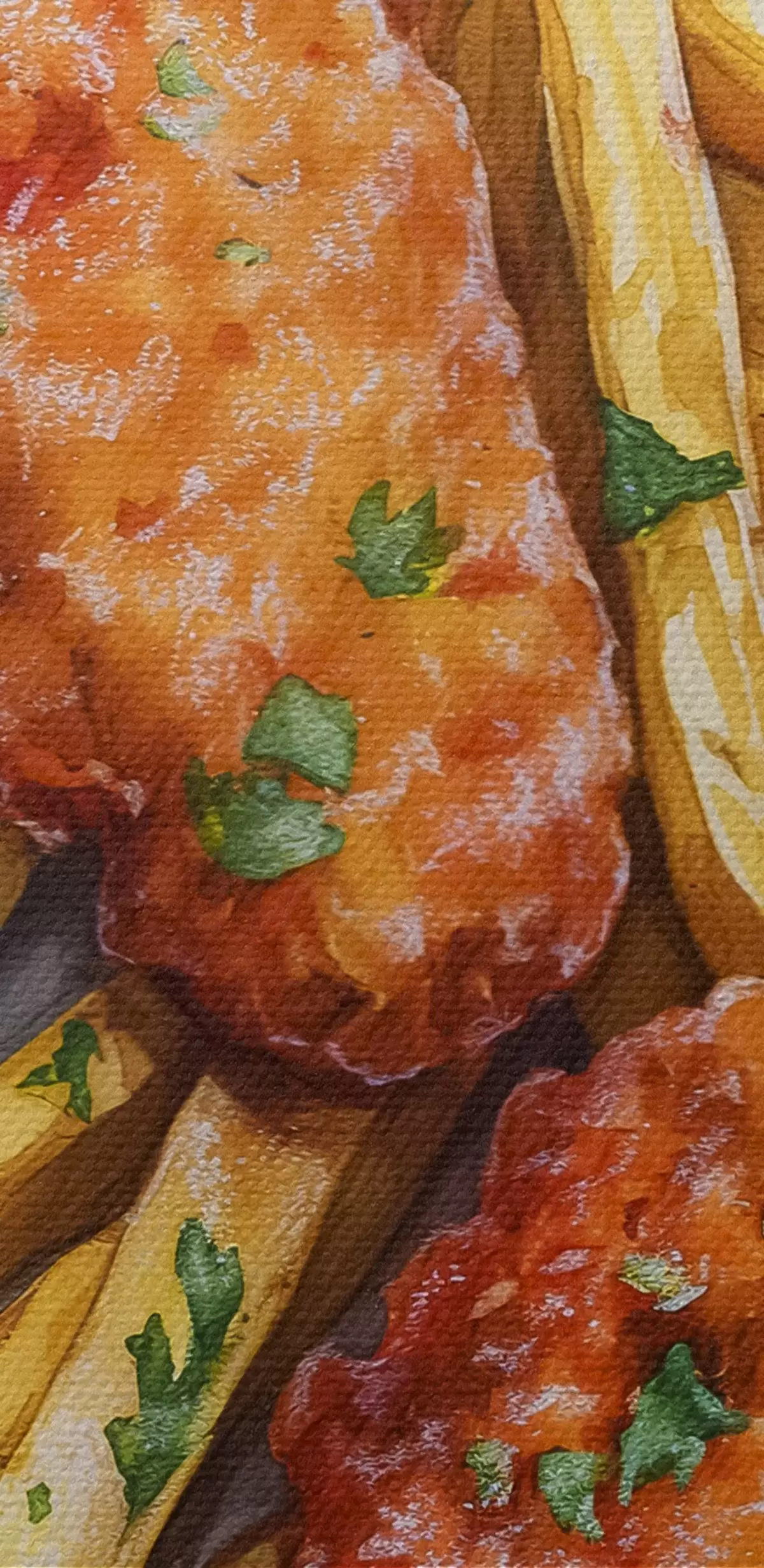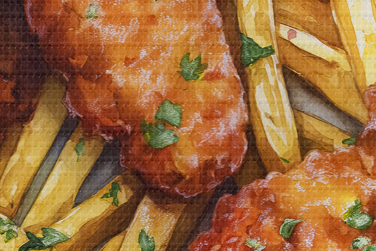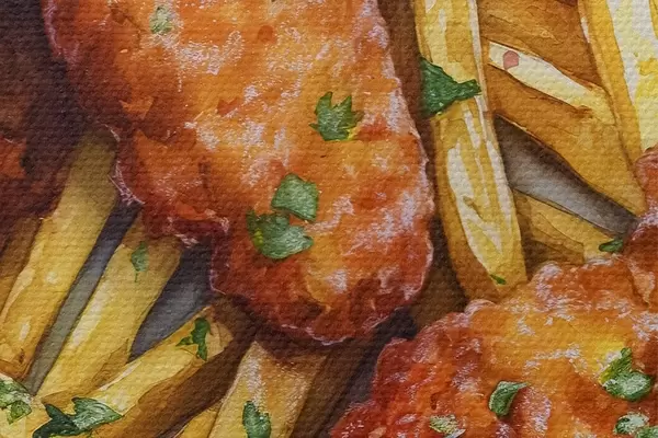 Bild Aquarell-Food-Art, Pommes Frites mit gebratenem Huhn, köstlich Nr r39708