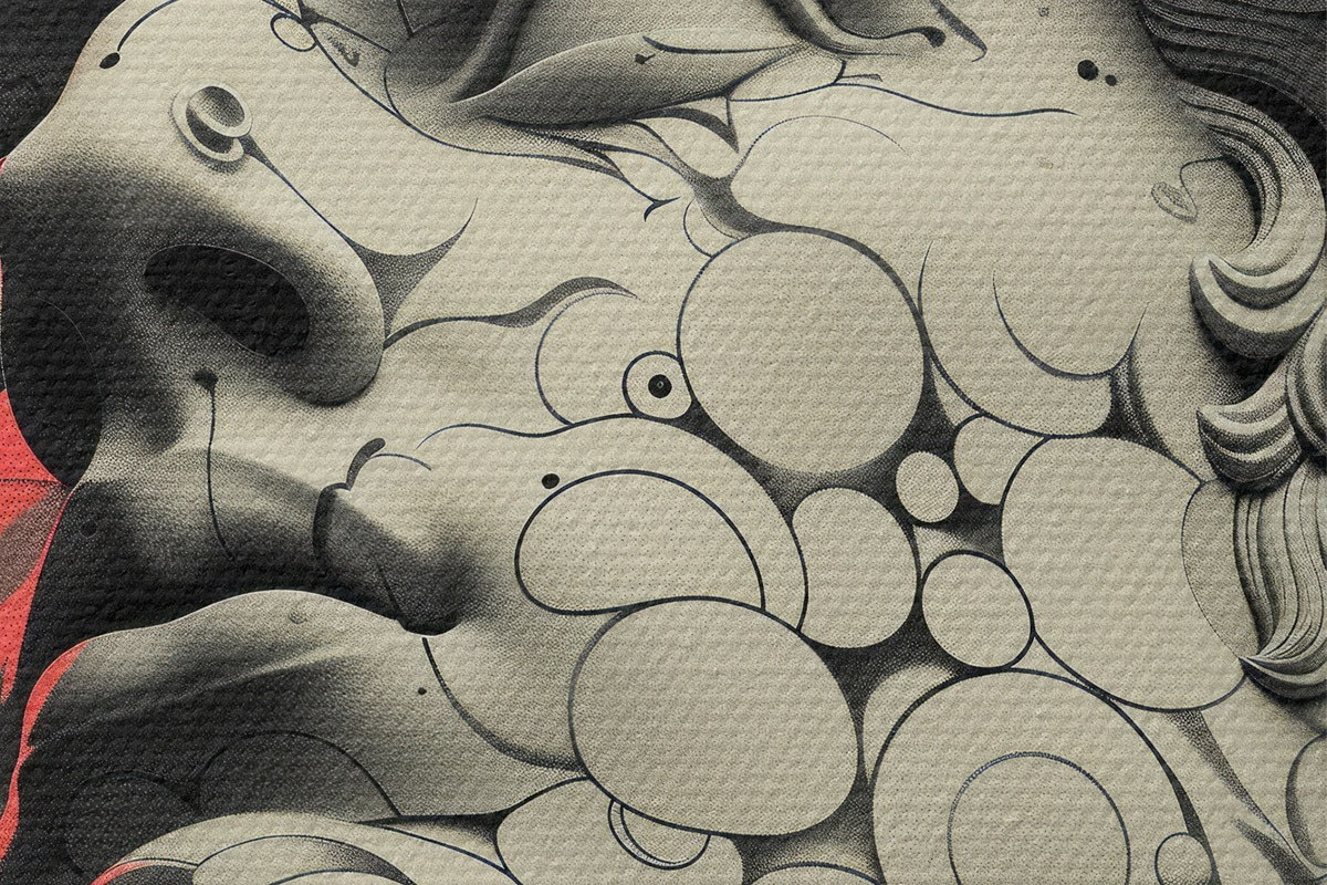 Bild Schwarz-weiße lineare Darstellung des Kopfes des griechischen Gottes Apollo im Pop-Art-Stil Nr r39763