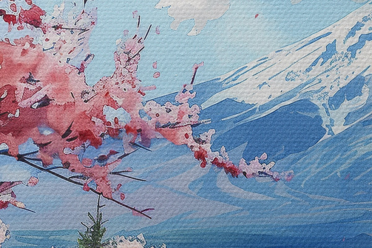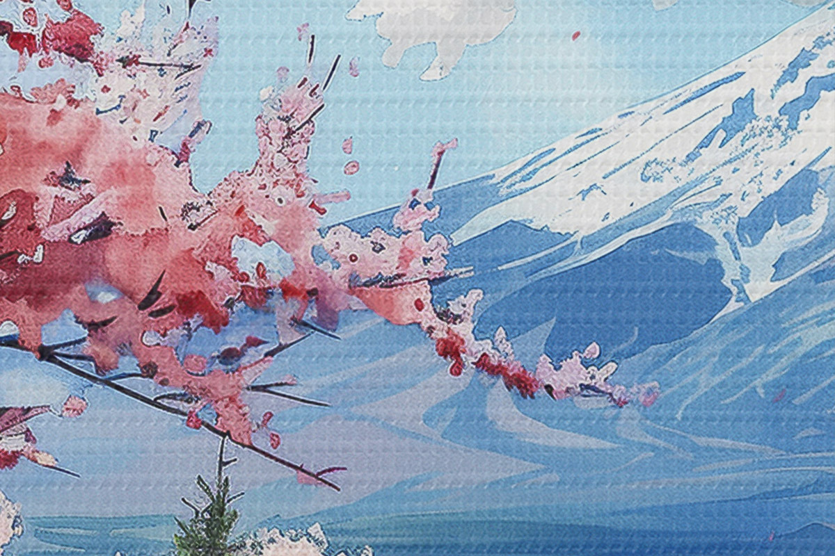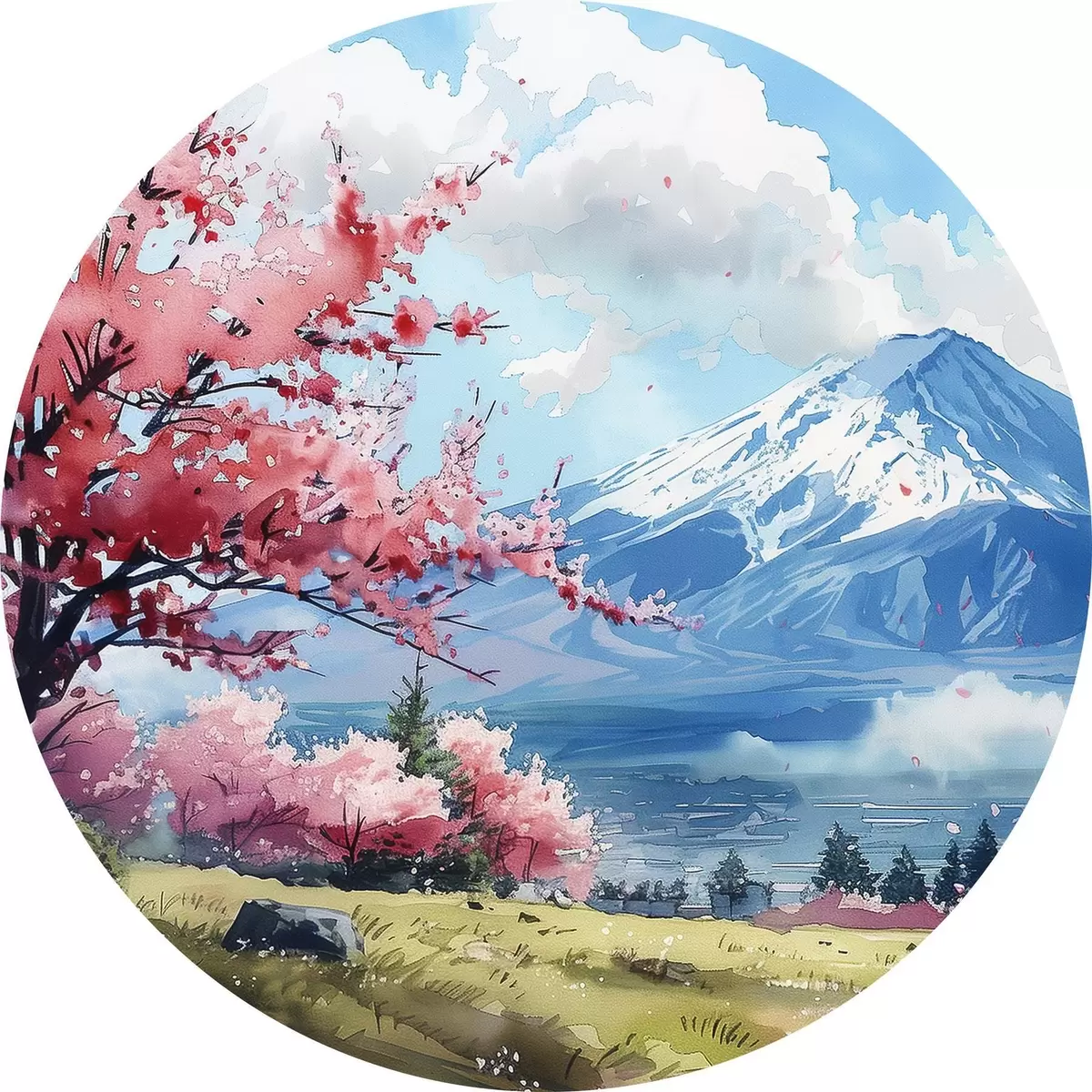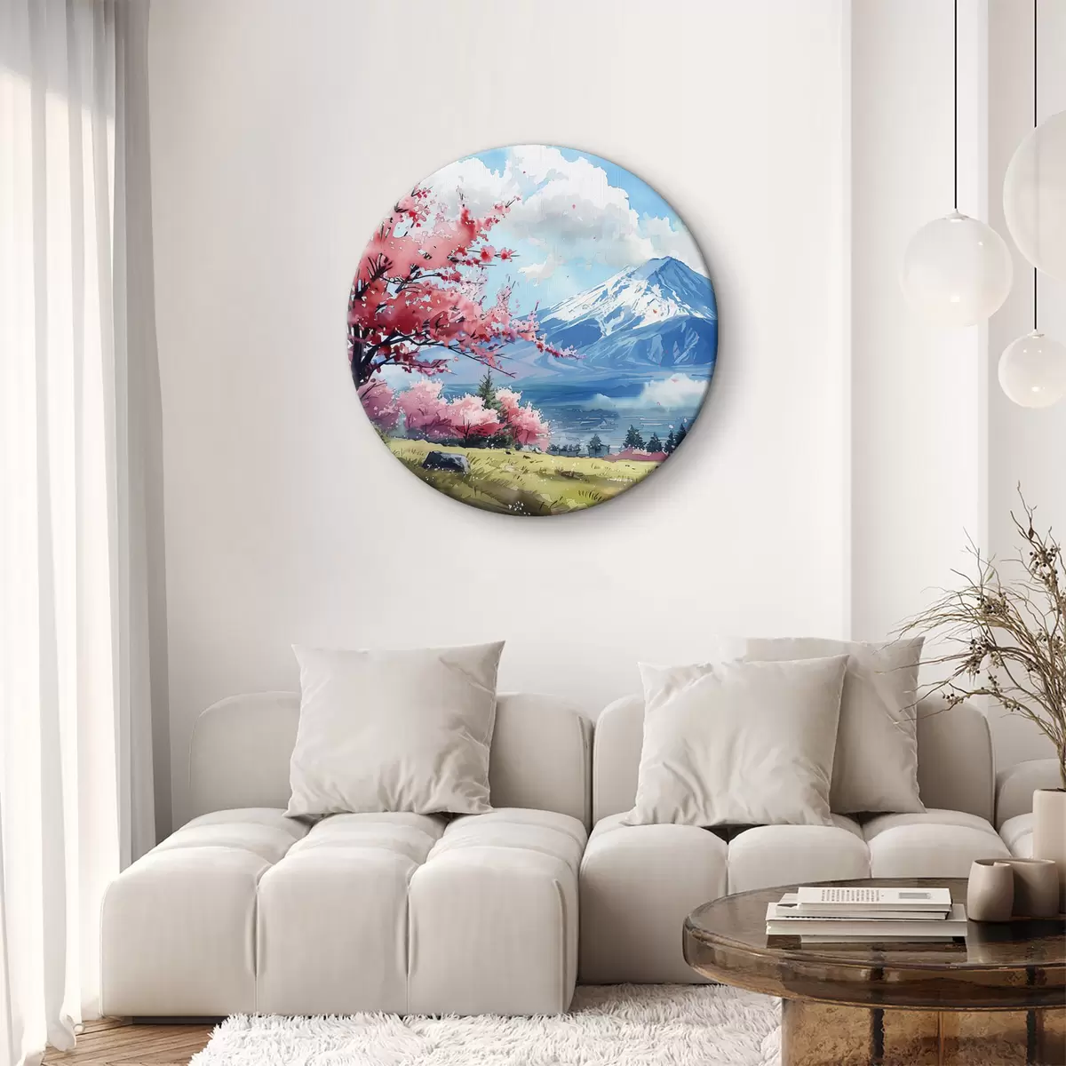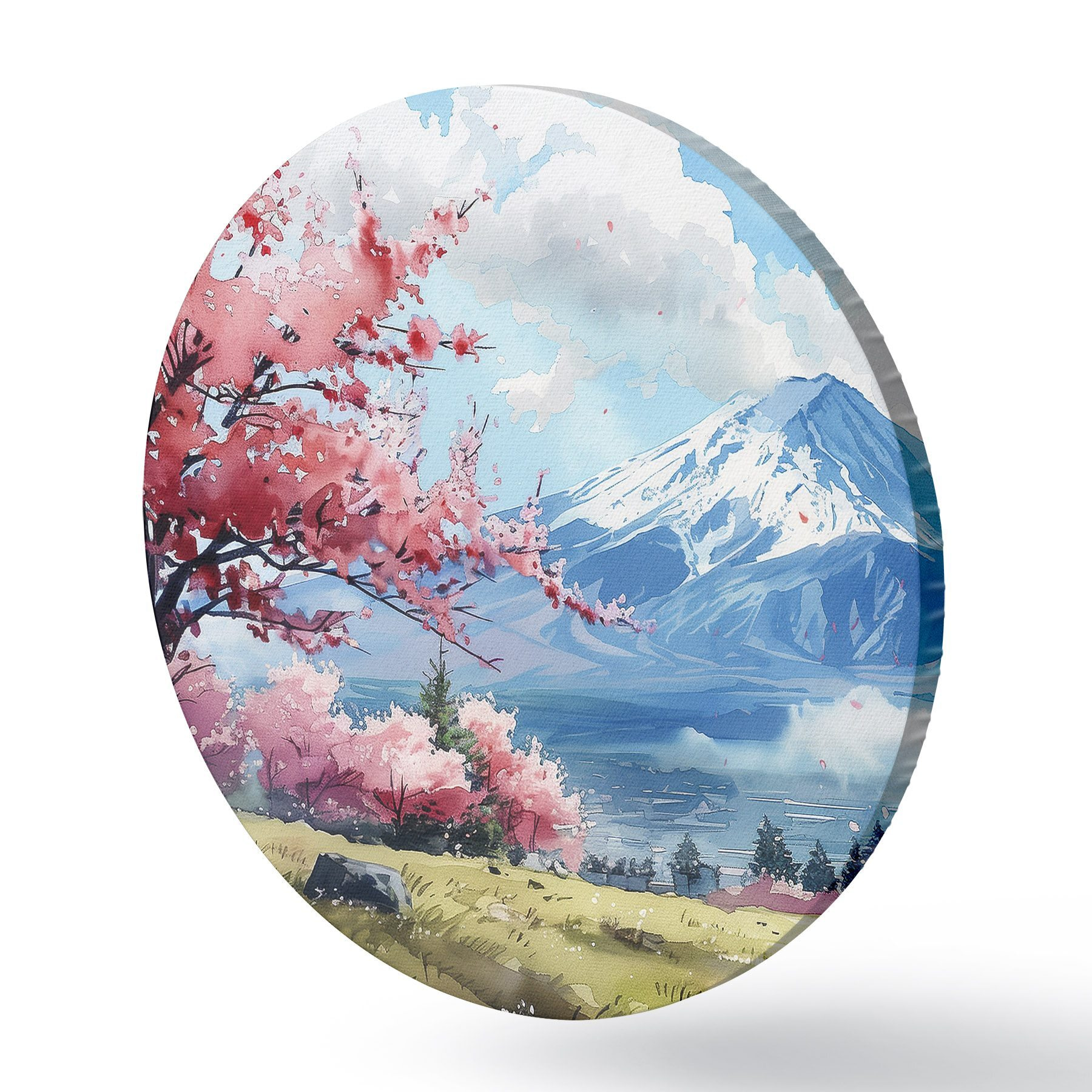 Runde Gemälde Berg Fuji Landschaft, Frühling blühende Natur, Kirschbäume, japanisch r39777