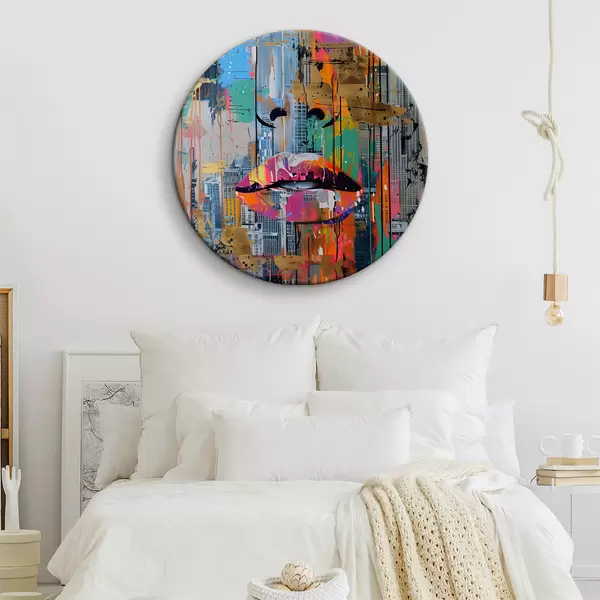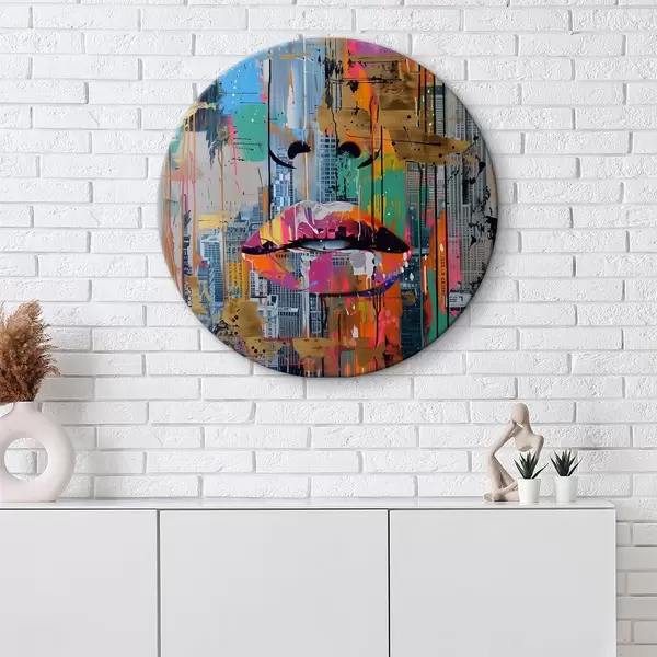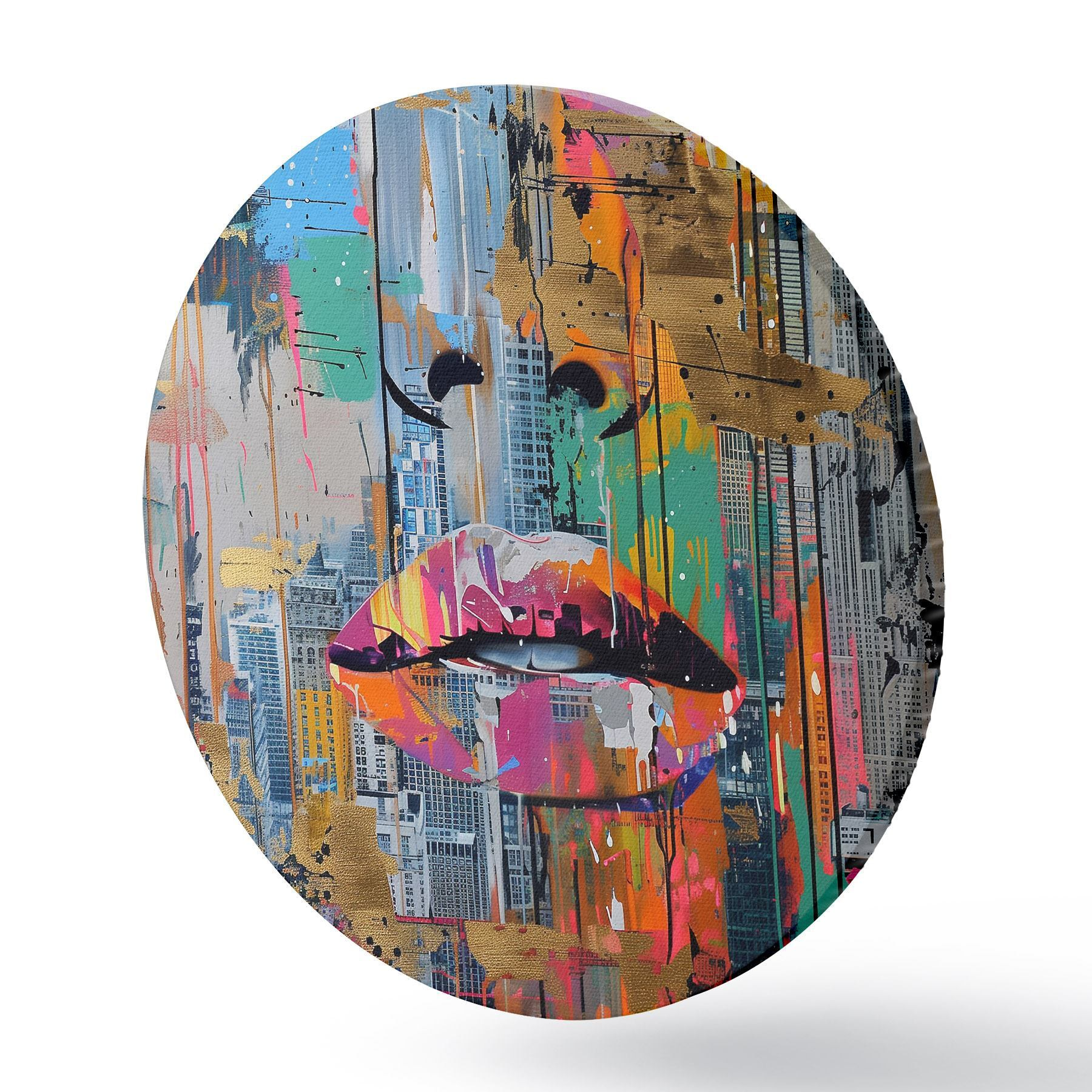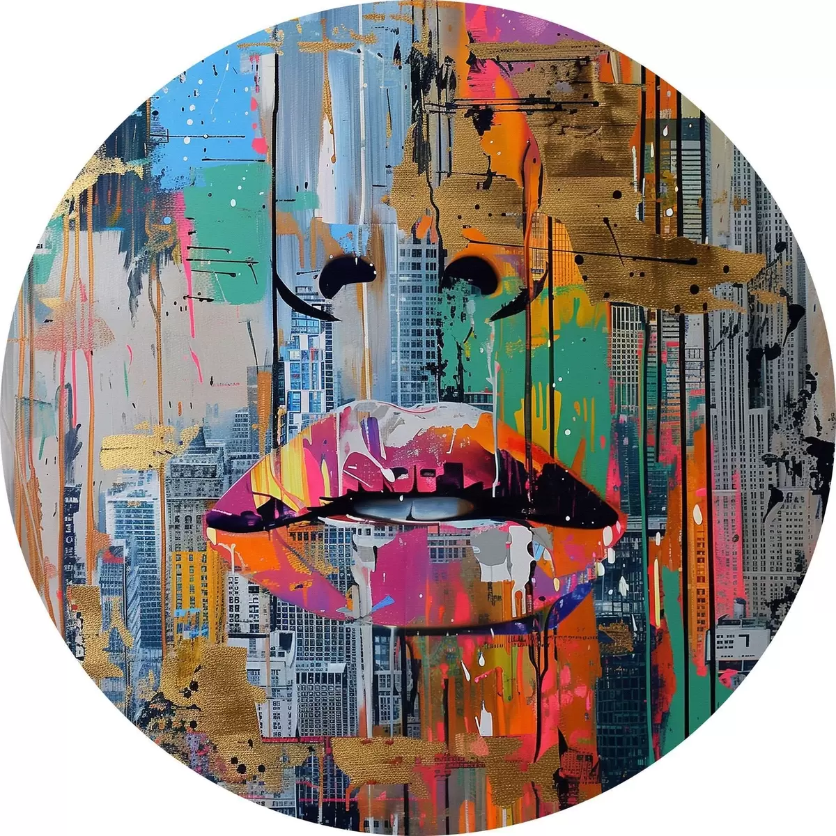 Runde Gemälde Blaue Augen und Blick auf die Stadt r39800