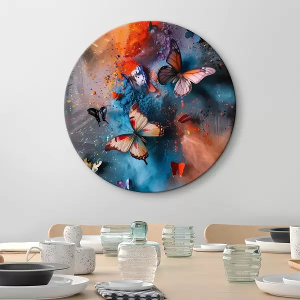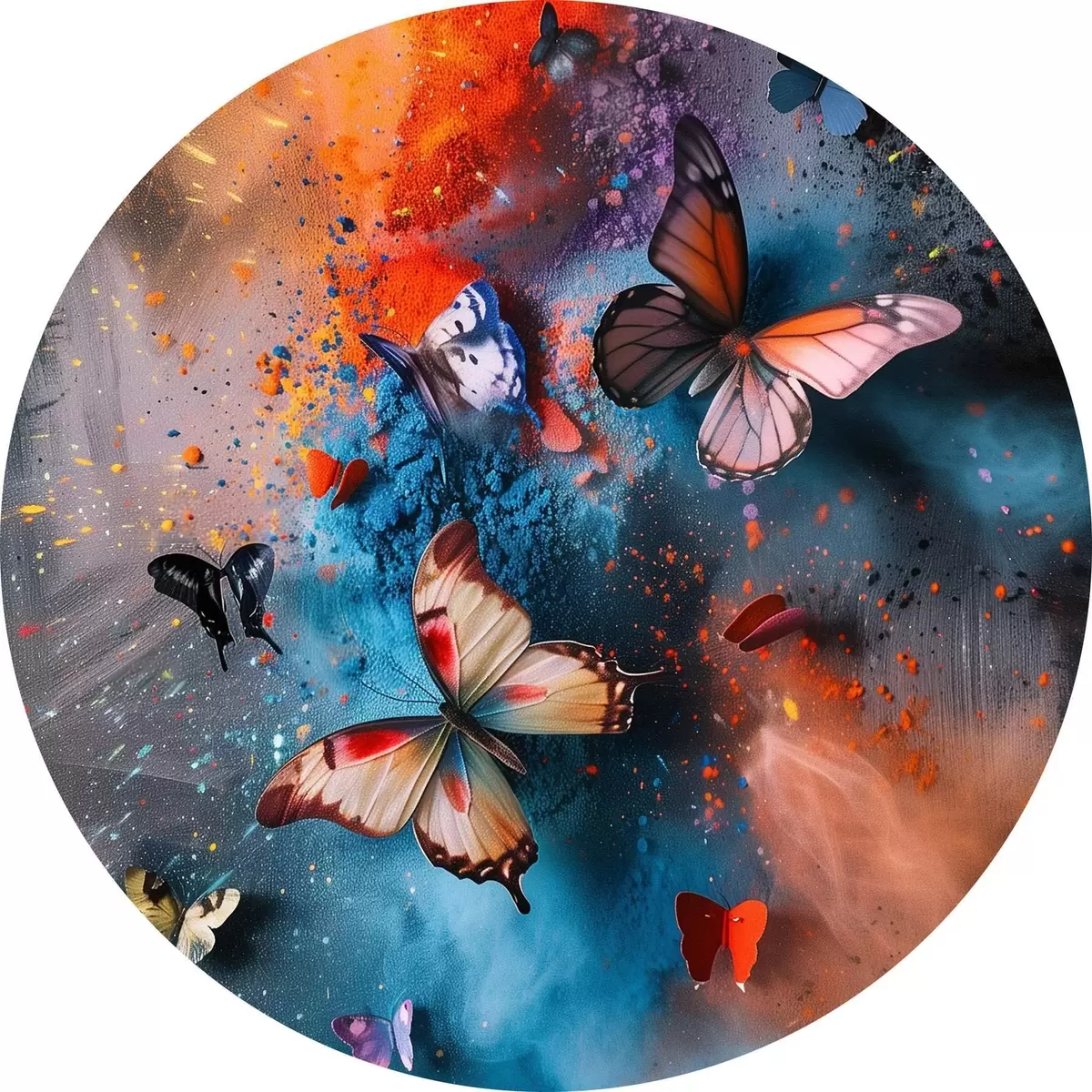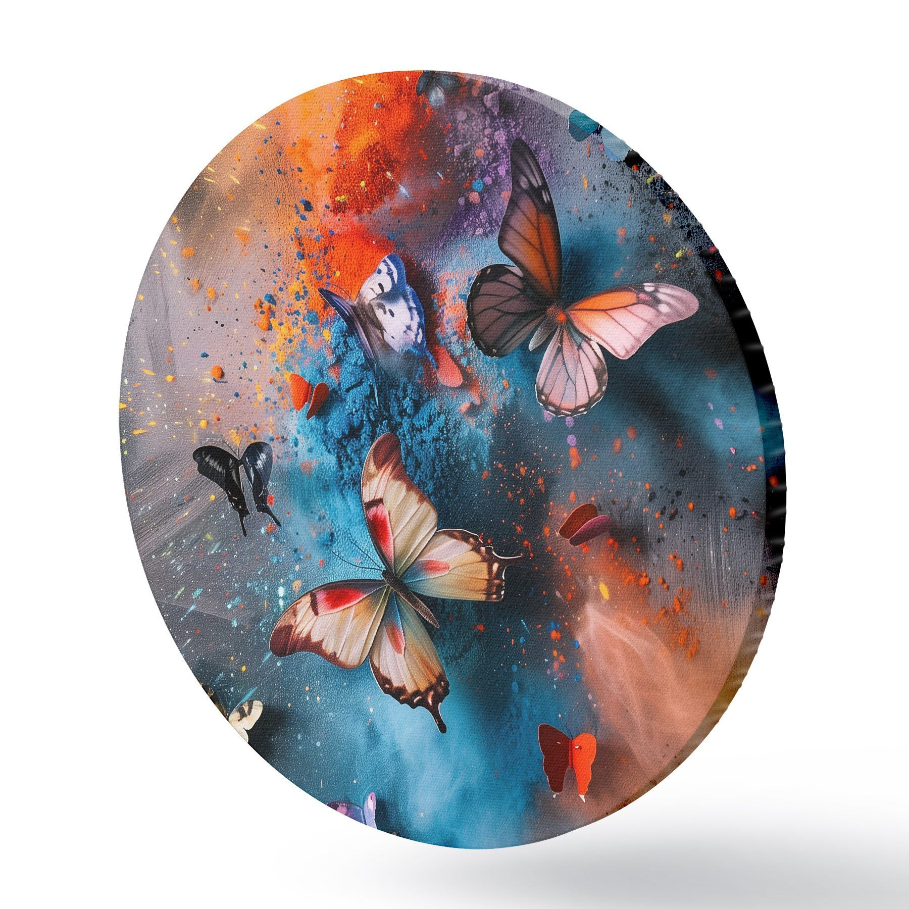 Runde Gemälde Schmetterlinge auf einem Hintergrund aus Farbspritzern r39803