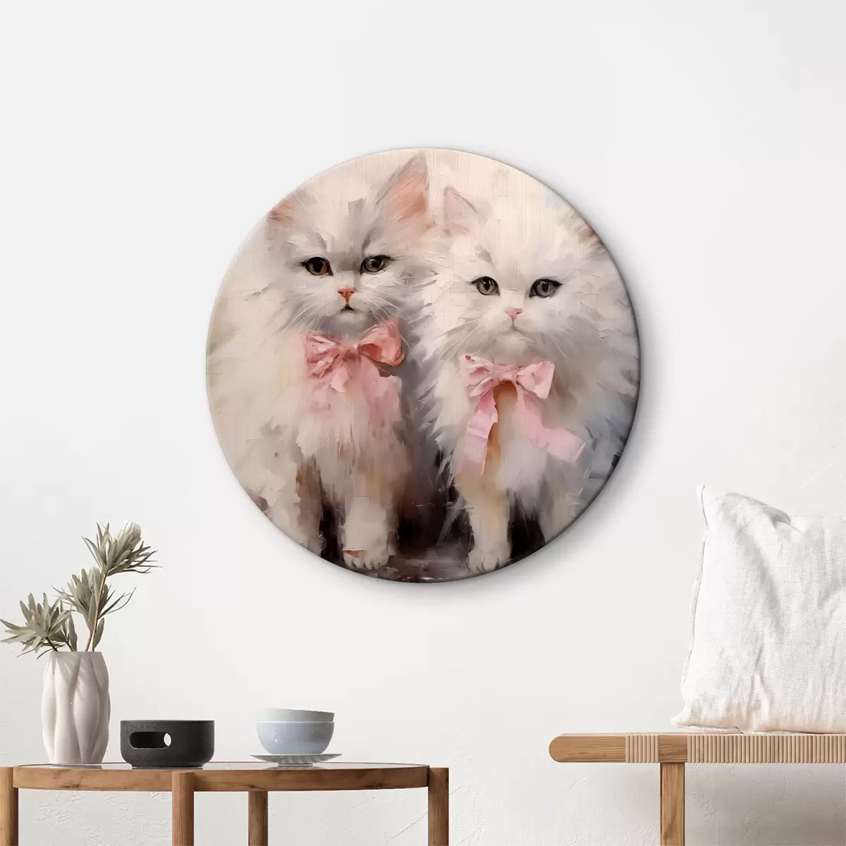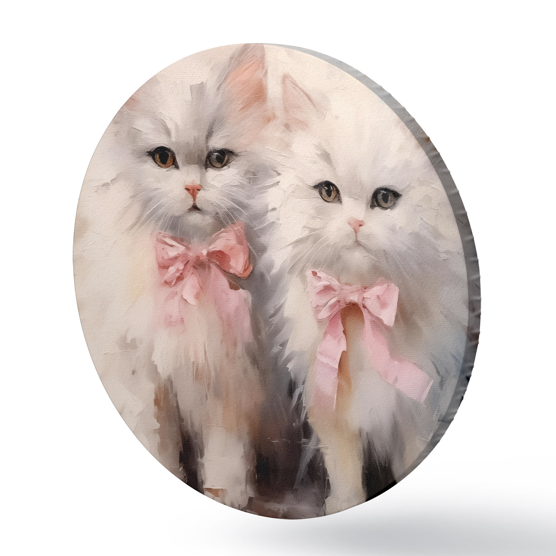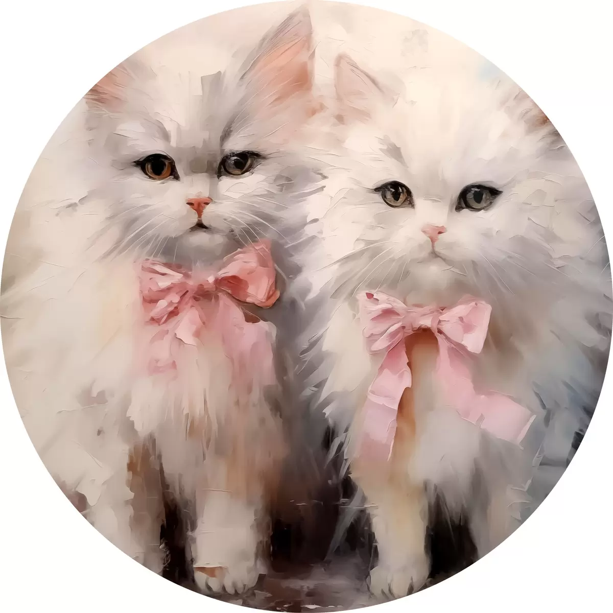 Runde Gemälde Weiße Katzen mit rosa Schleifen Ölgemälde r39826