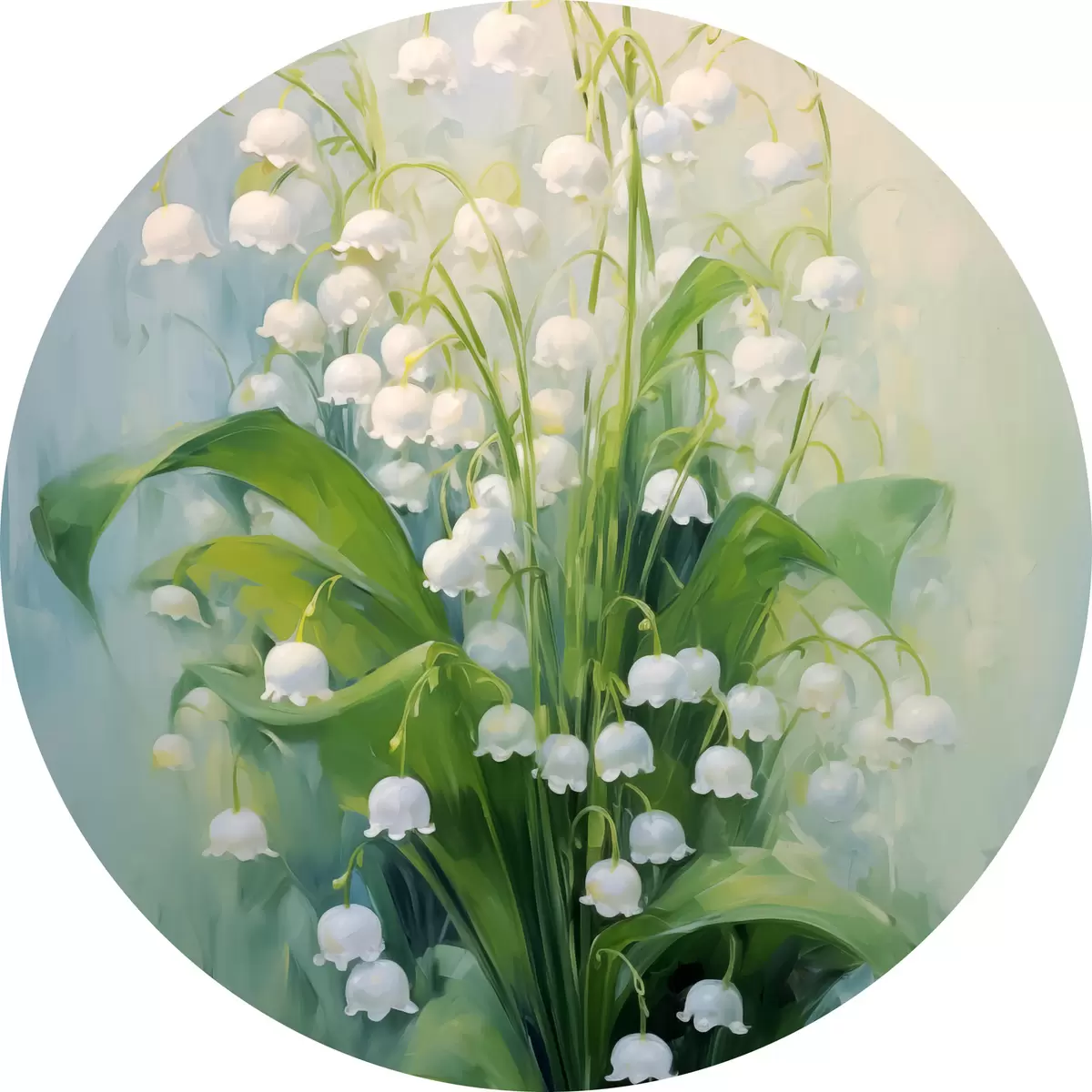 Runde Gemälde Ölgemälde „Weiße Maiglöckchen“ r39827