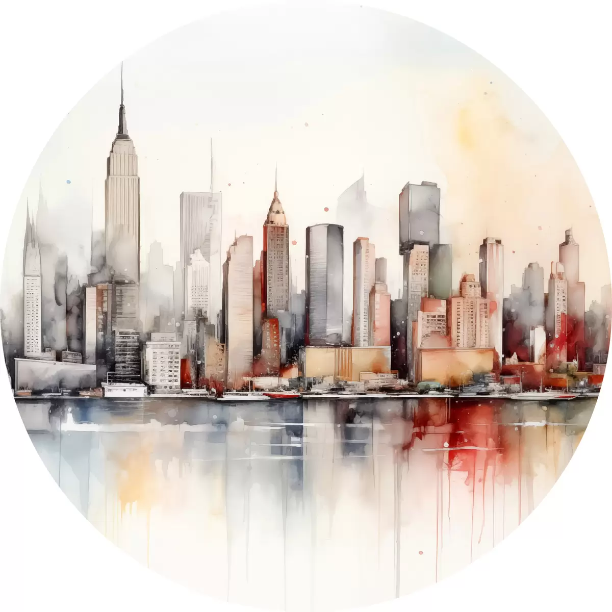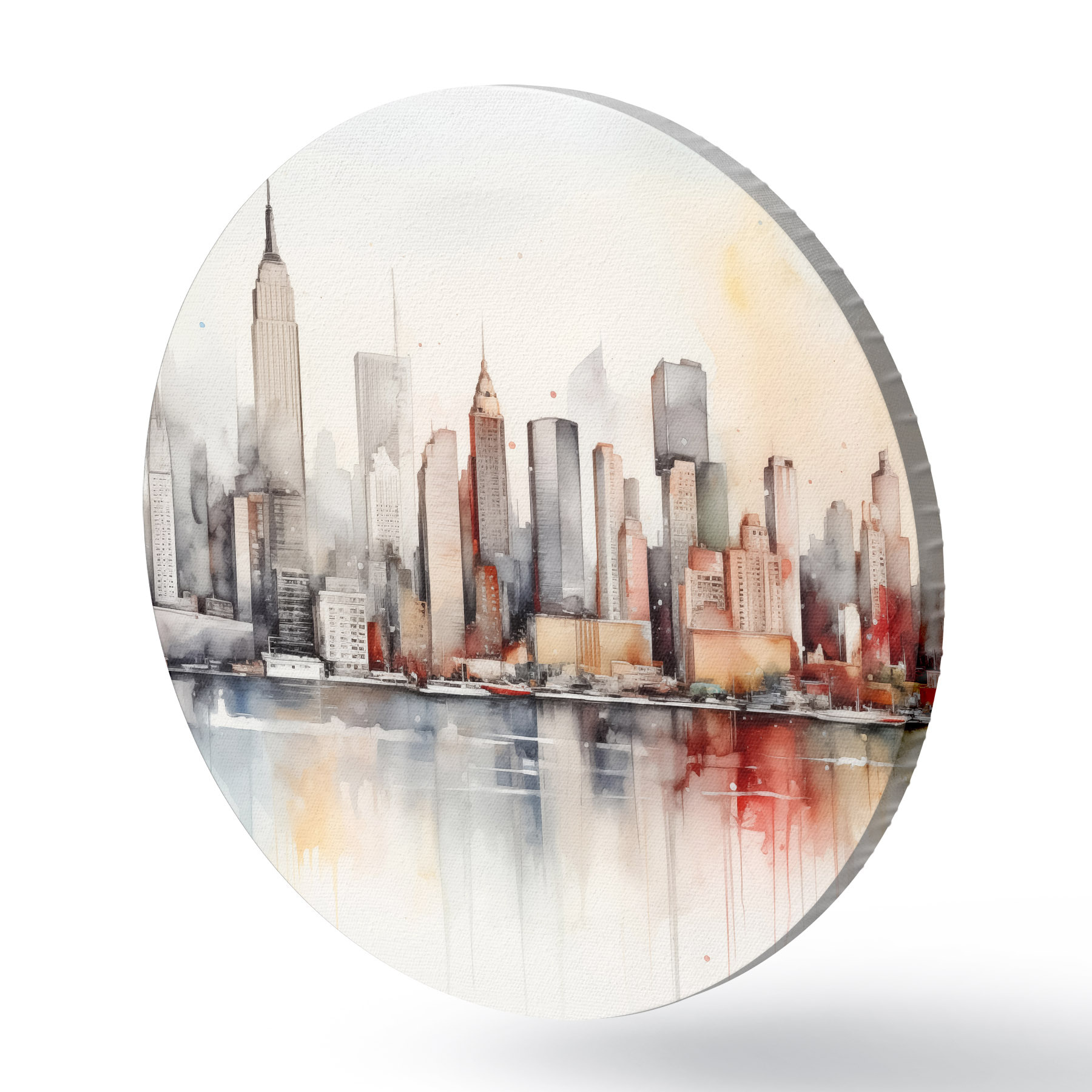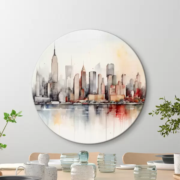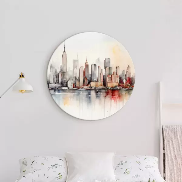 Runde Gemälde Blick auf New York City, Gebäudesilhouetten, Aquarell r39828