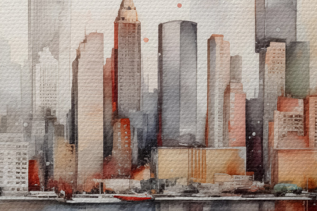 Bild Blick auf New York City, Gebäudesilhouetten, Aquarell Nr r39828