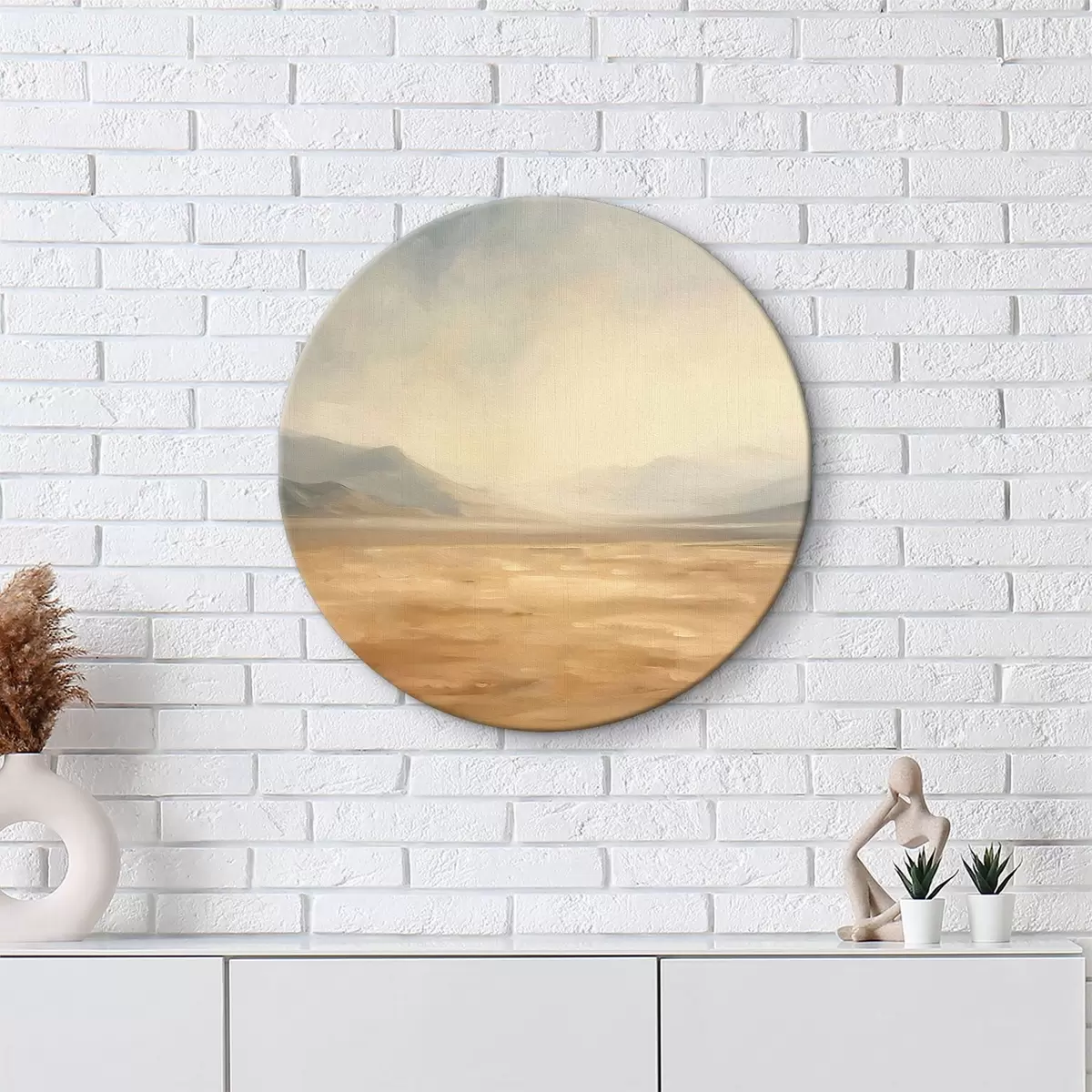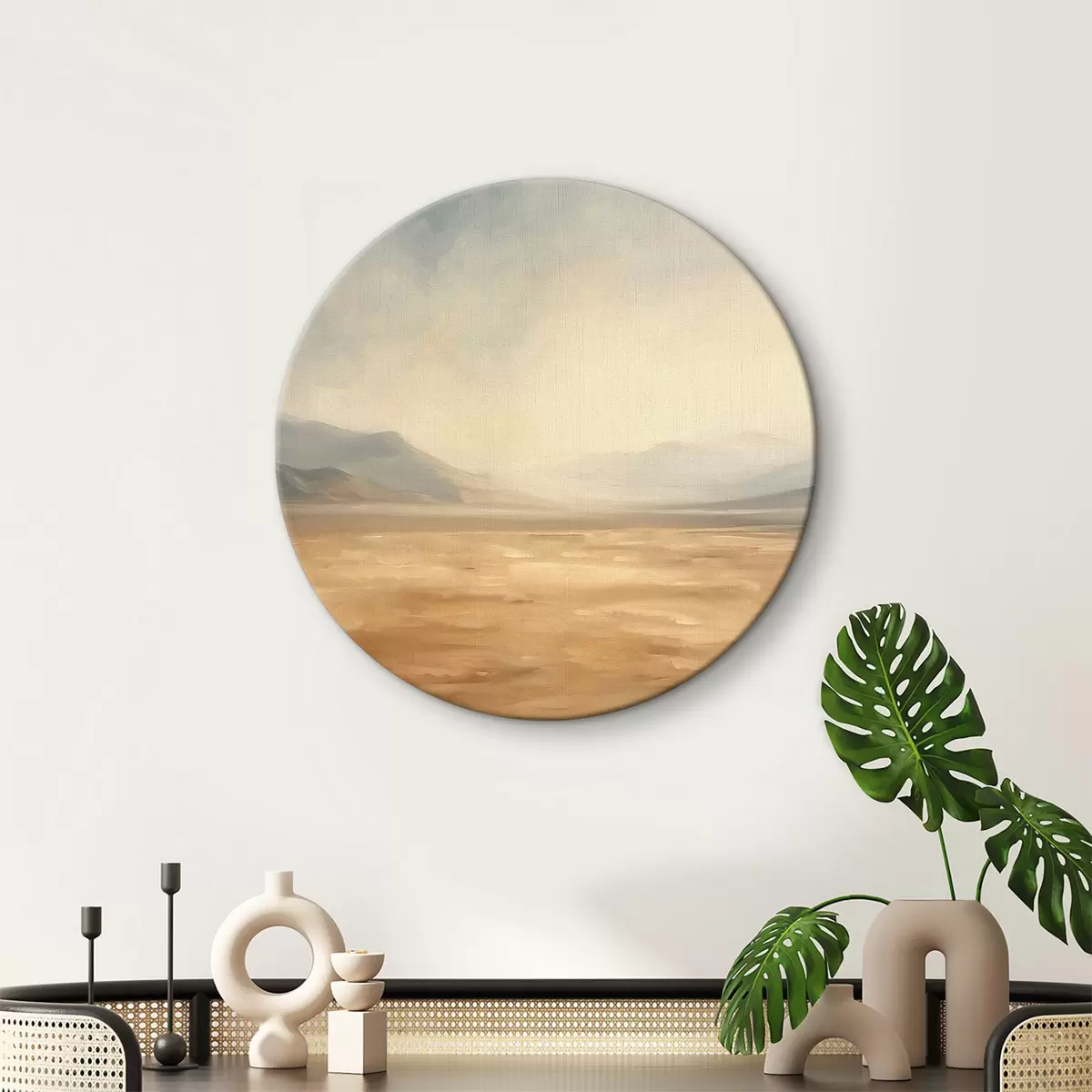 Runde Gemälde Wüste mit Bergen im Hintergrund eine ruhige Landschaft r39835