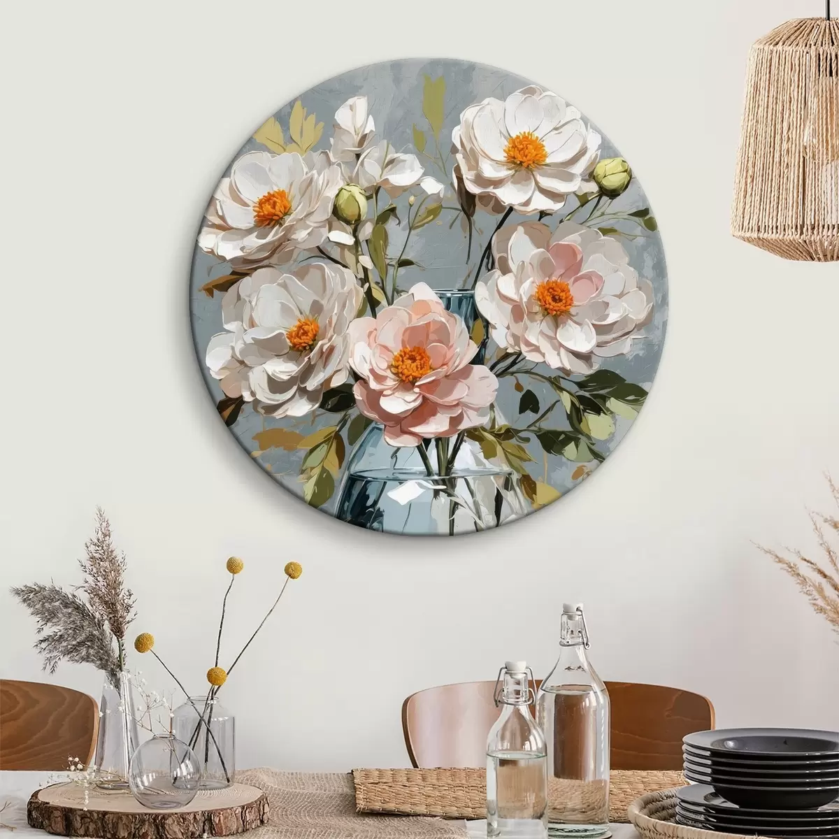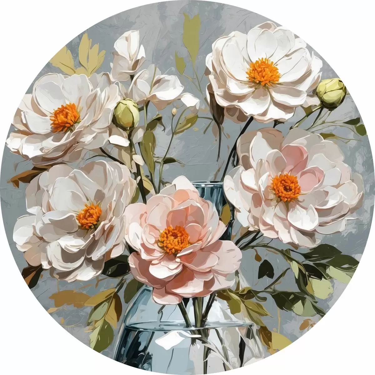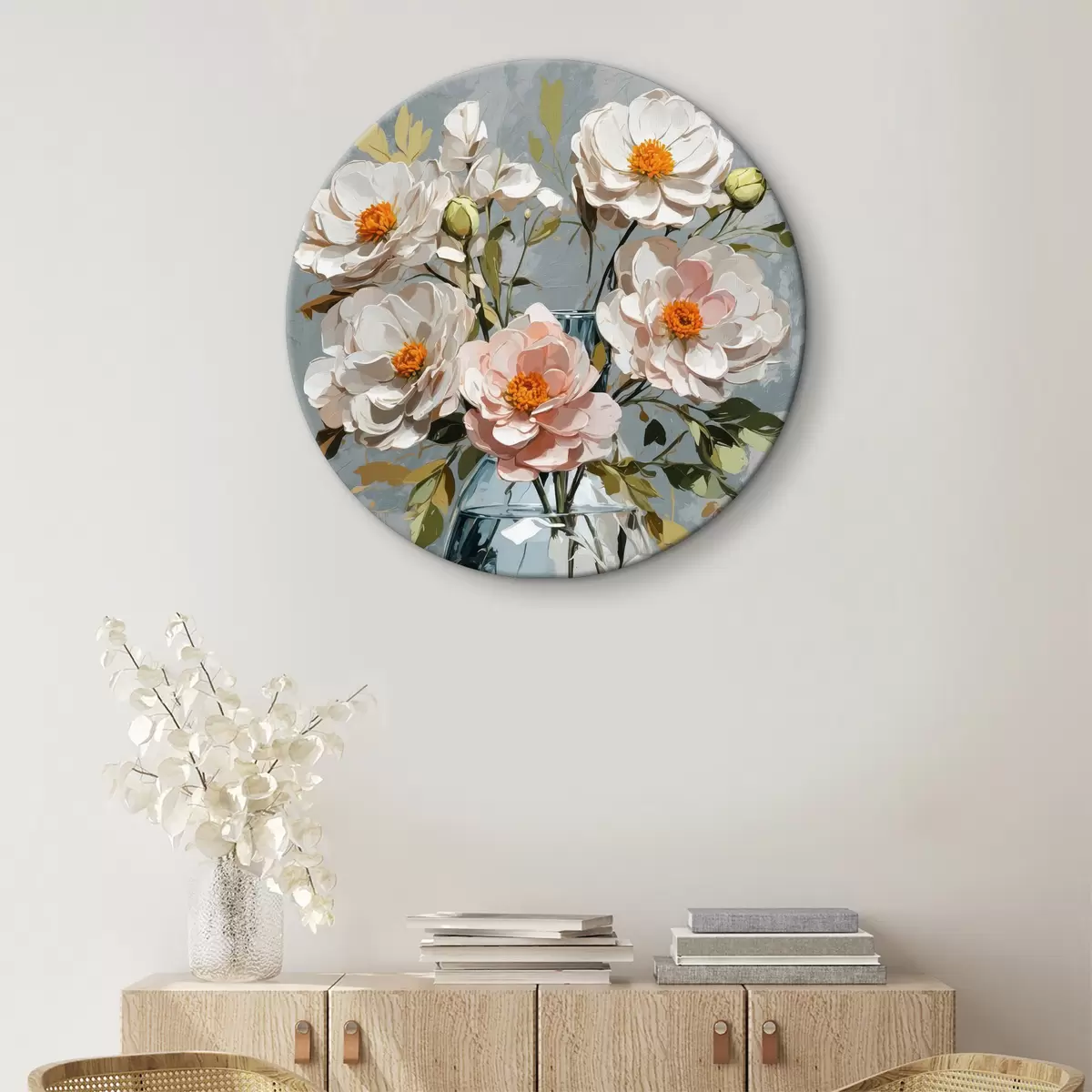 Runde Gemälde Weiße Blumen in einer transparenten Vase r39850