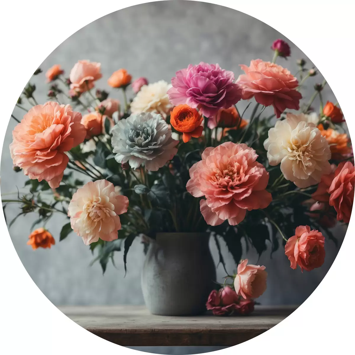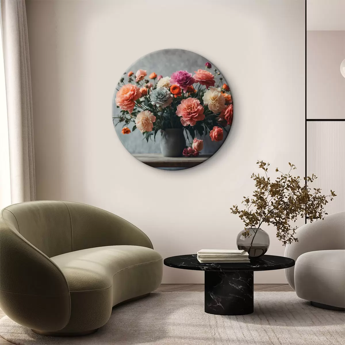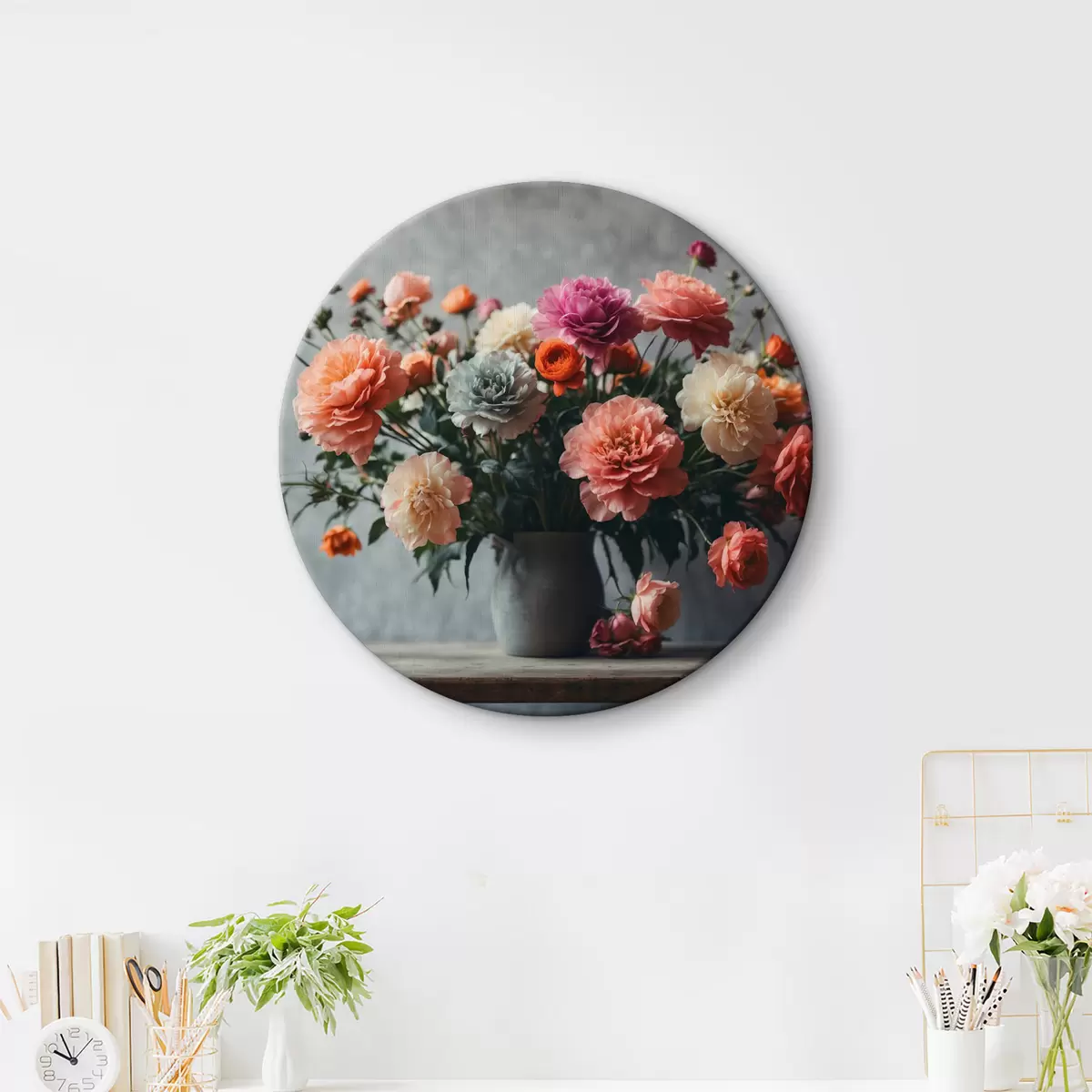 Runde Gemälde Blumenstrauß in einer Vase auf einem Tisch r39859
