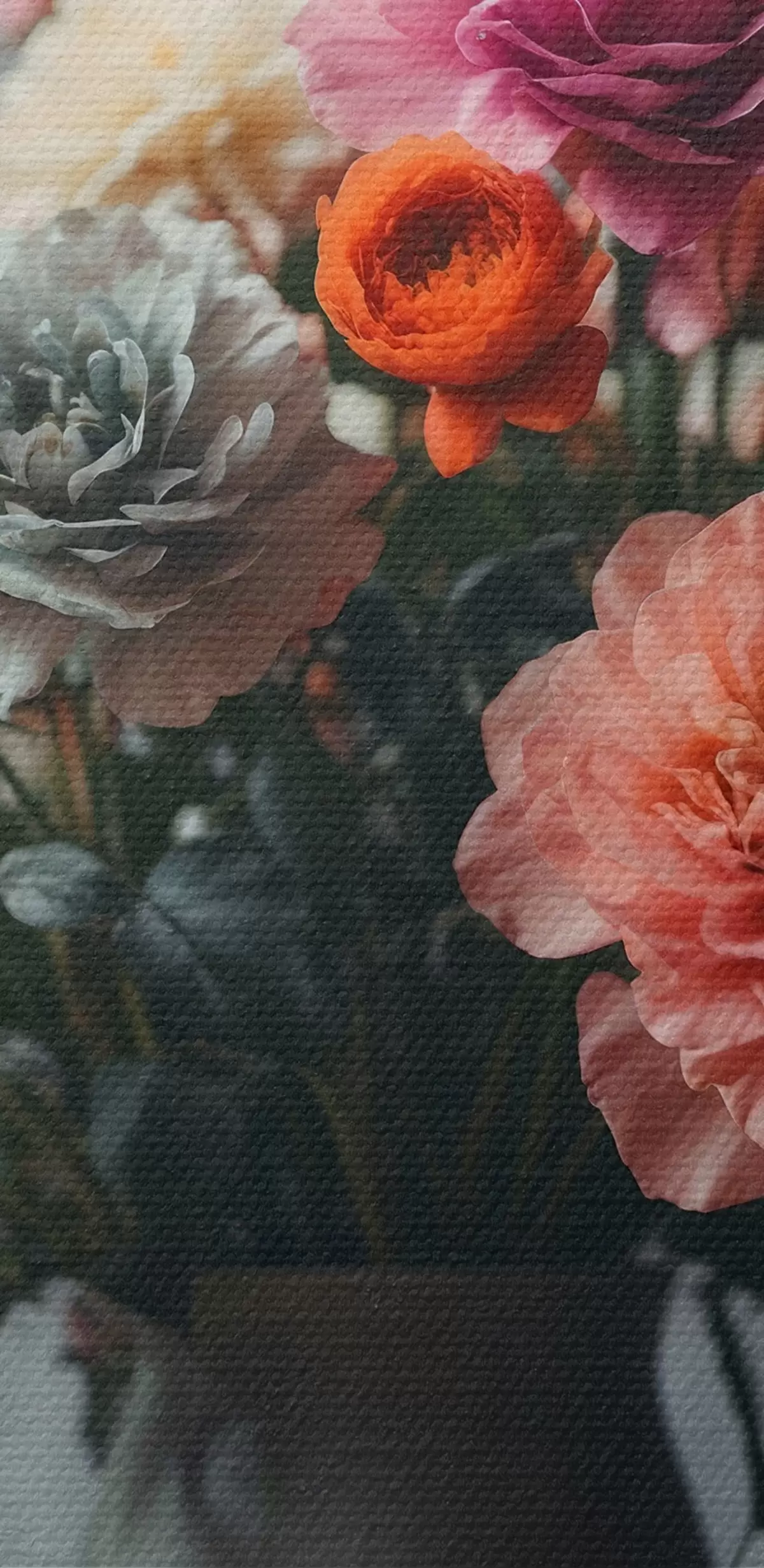 Drei Materialtypen stehen zur Verfügung: Economic Canvas - ein dichtes und haltbares Material für den Digitaldruck, identisch mit Malerleinwand, wasserfeste Oberfläche, realistische Wiedergabe von Details, mittelkörniges Material. Premium Canvas - die Textur ähnelt der einer Malerleinwand (verwobene kleine Fäden). Weiche, detaillierte Wiedergabe des Bildes auf einer matten Oberfläche. Eco-Premium - hochwertiges Gewebe aus 100% Baumwolle. Dank der natürlichen Baumwollfasern ist das Material langlebig und verschleißfest. Hervorragende Farbwiedergabe und Detailtreue.