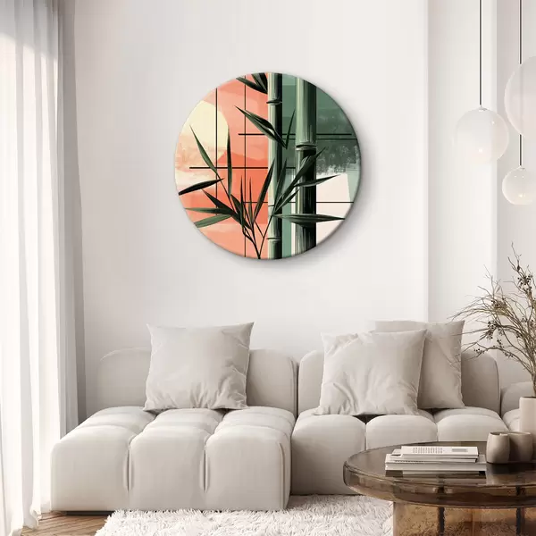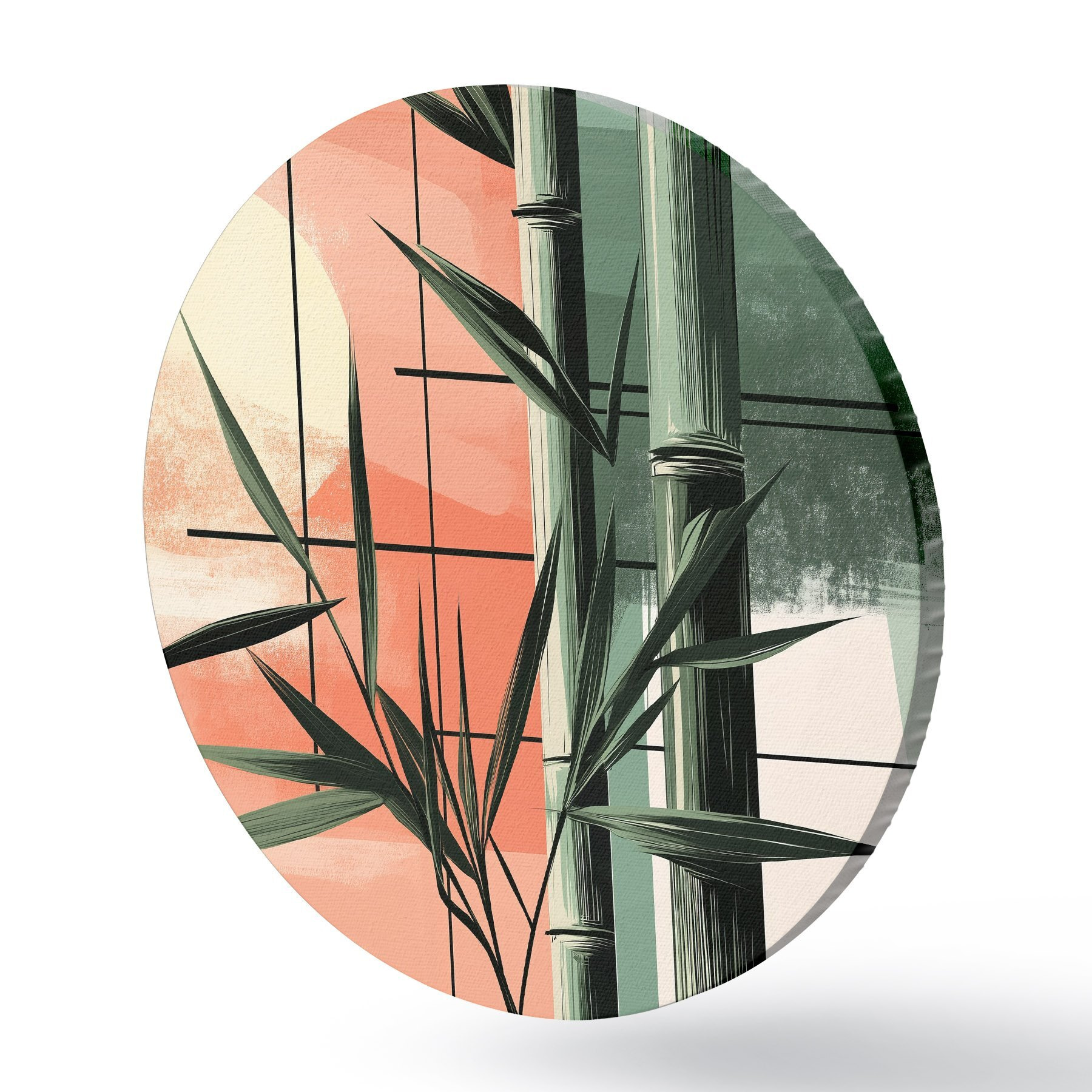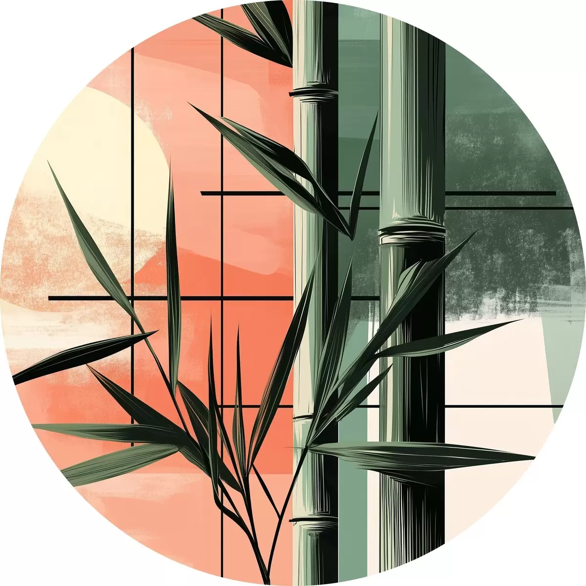 Runde Gemälde Abstrakt mit Bambus und Sonne r39898